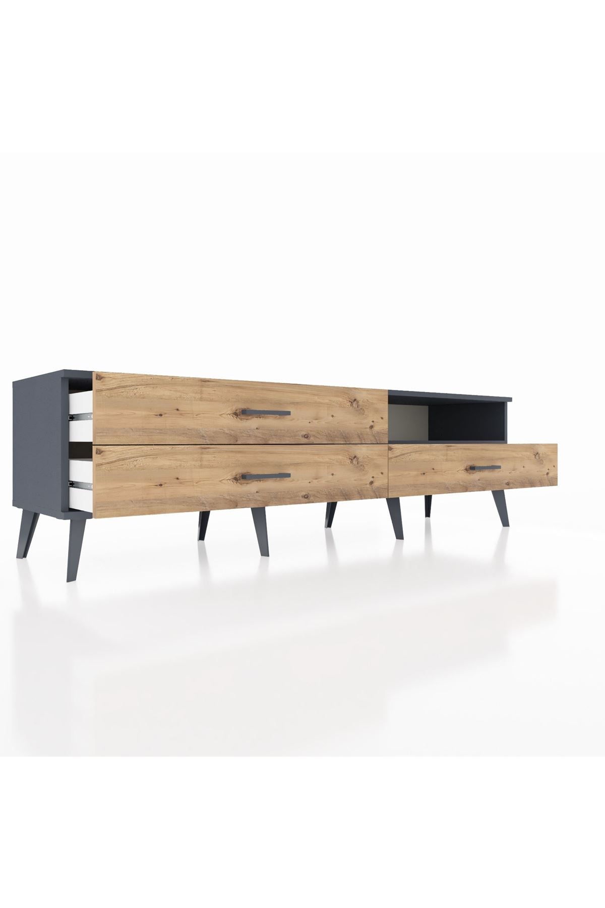 Hyperion TV Ünitesi Tek Raflı 3 Çekmeceli 176x44x51 Antrasit-Antrasit/Çam