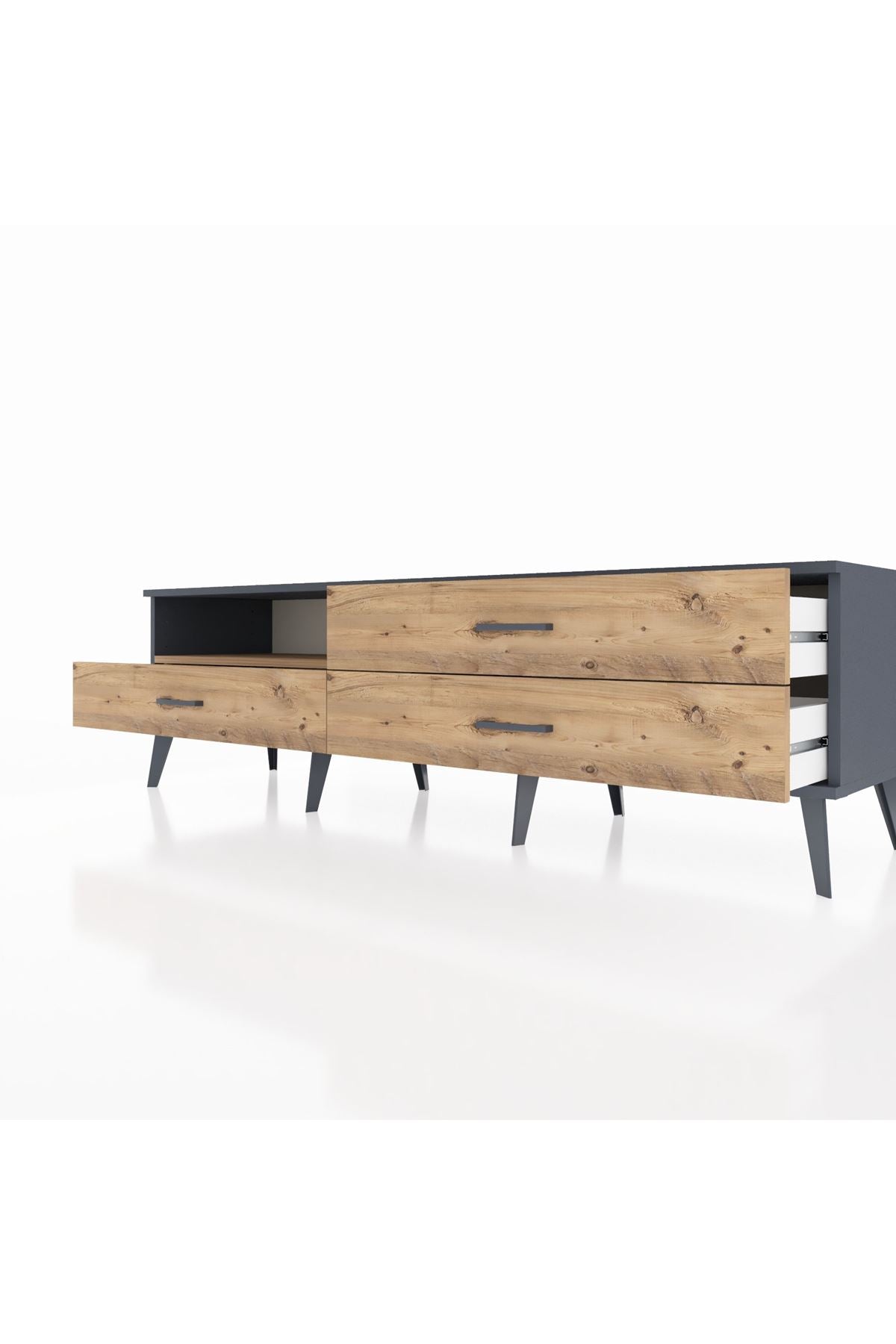 Hyperion TV Ünitesi Tek Raflı 3 Çekmeceli 176x44x51 Antrasit-Çam/Çam