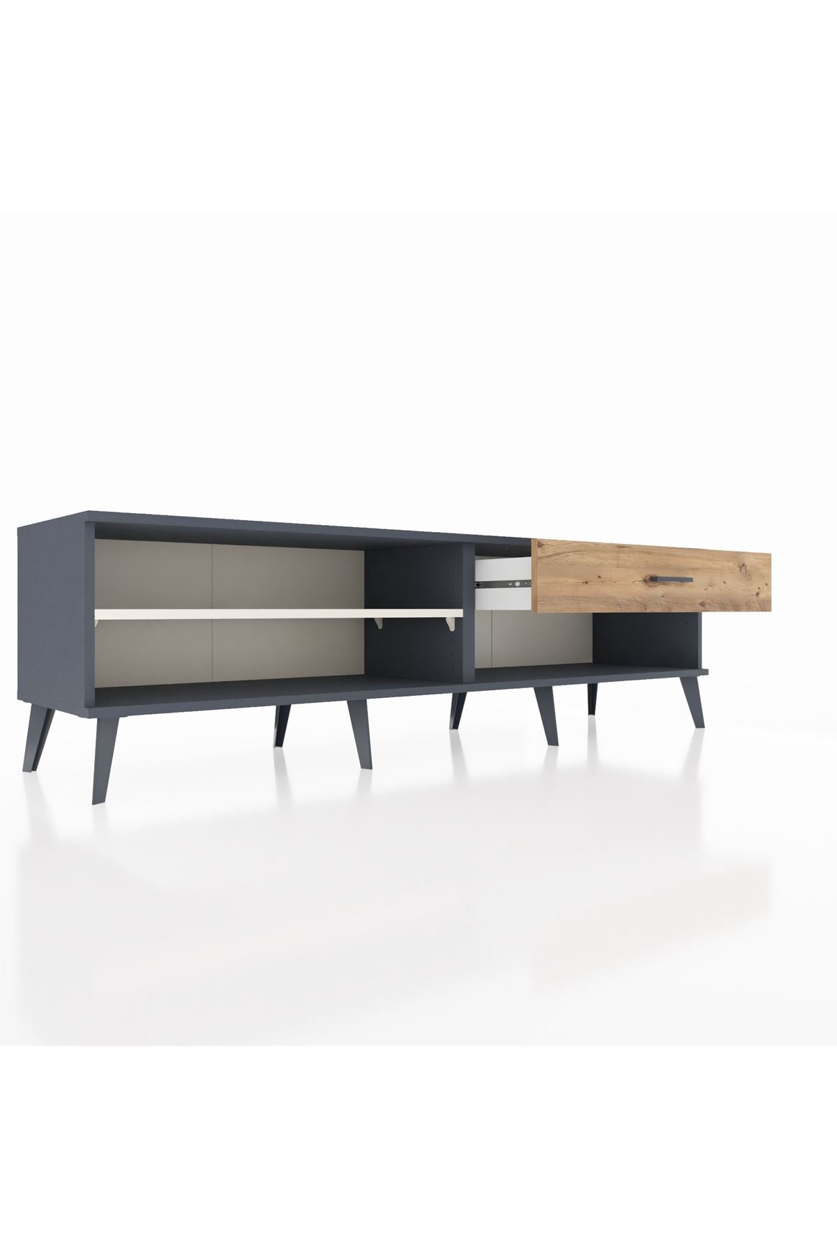 Hyperion TV Ünitesi Tek Raflı Tek Çekmeceli 176x44x51 Antrasit-Aytaşı/Çam