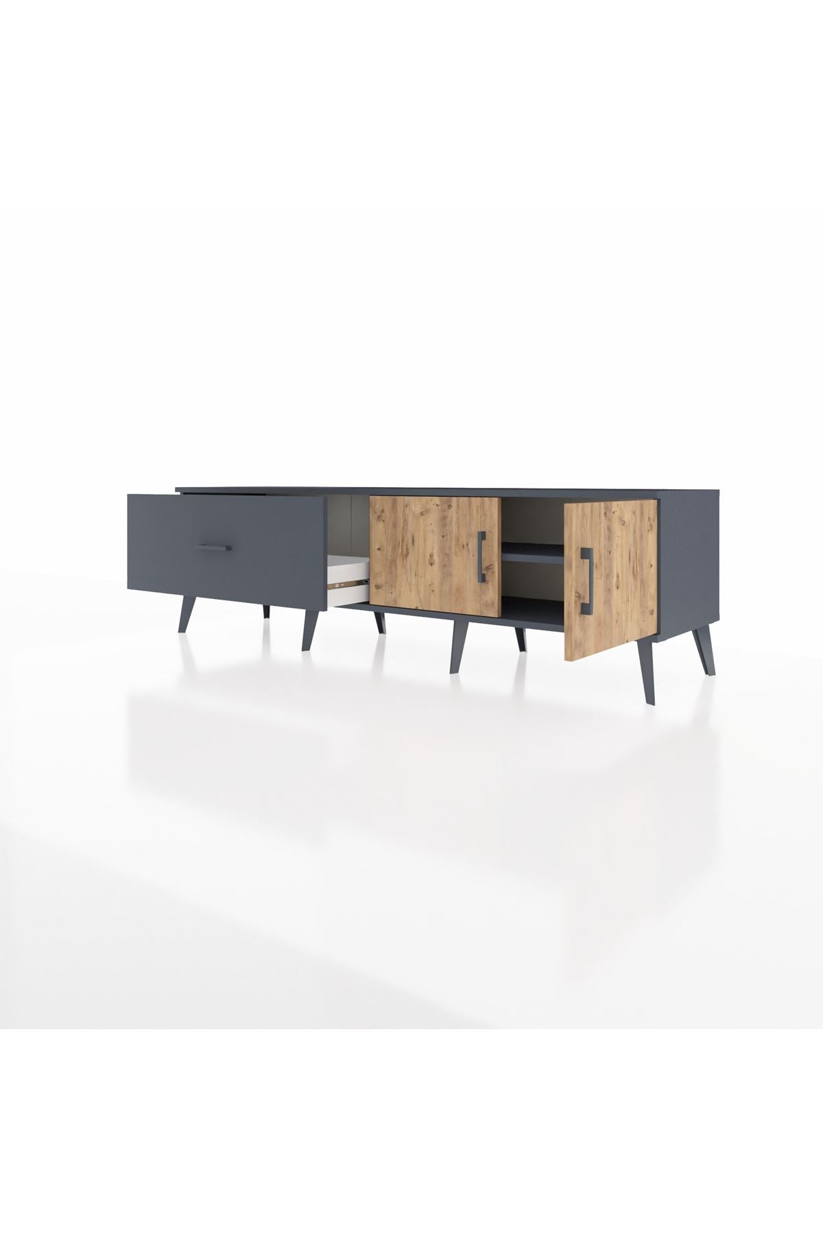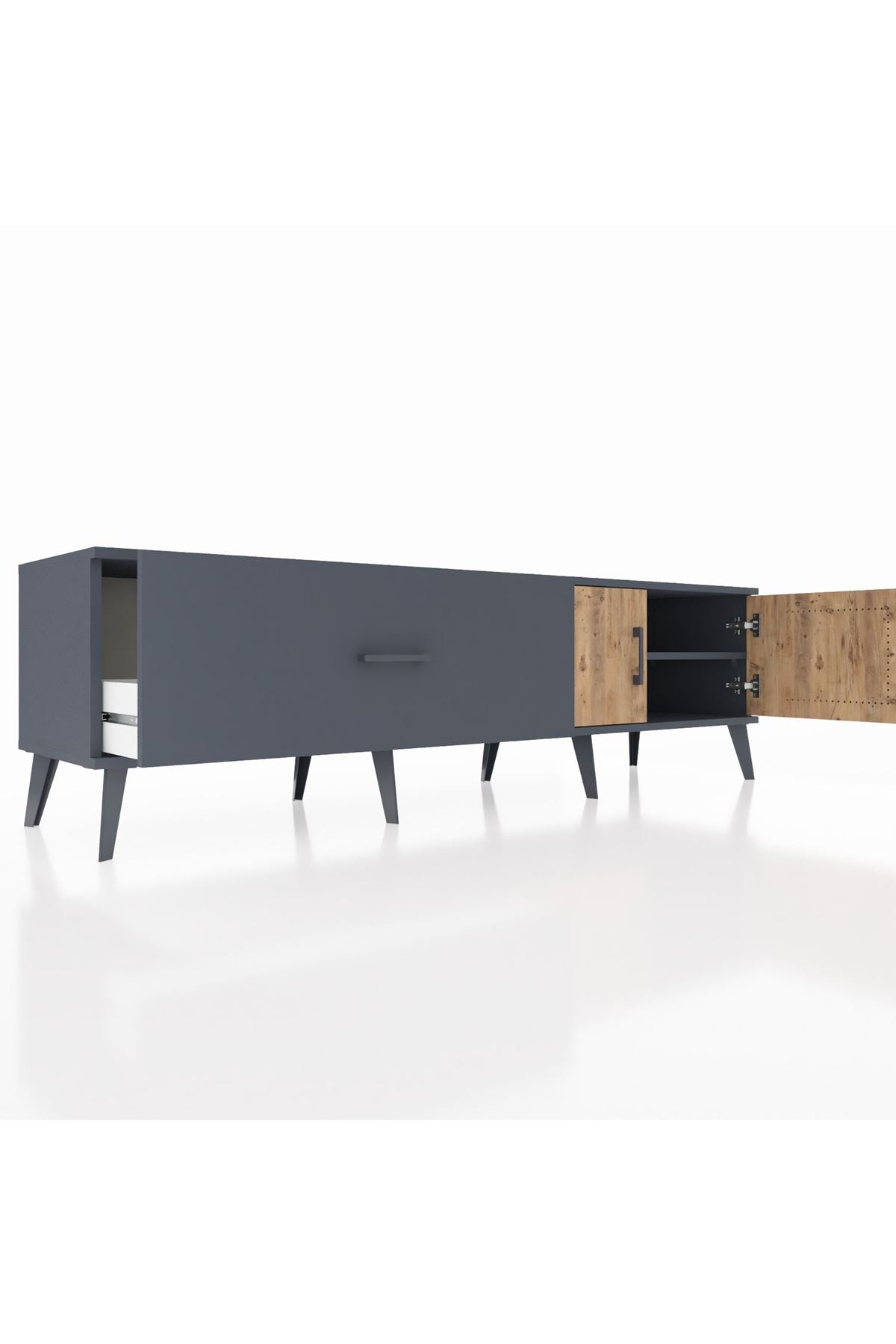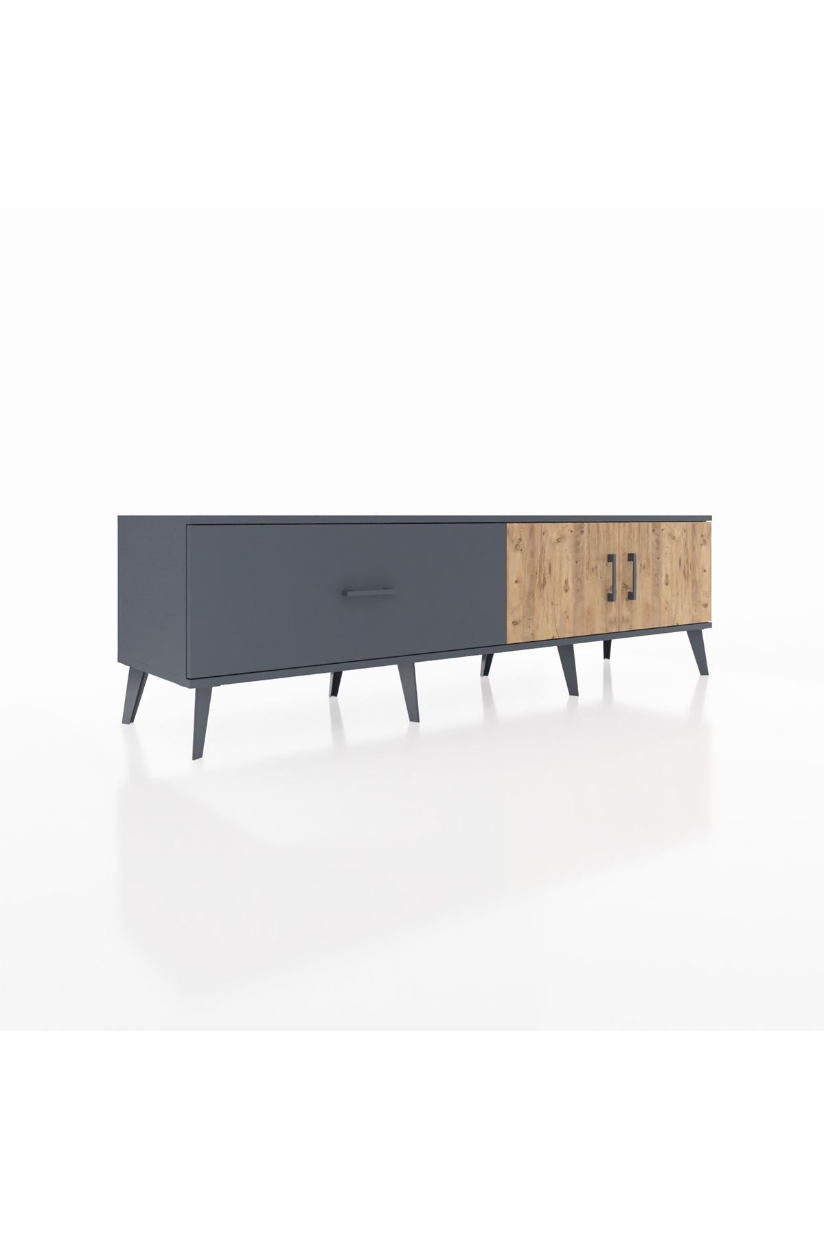 Hyperion TV Ünitesi Tek Raflı Tek Çekmeceli 2 Kapaklı 176x44x51 Antrasit-Çam/Antrasit