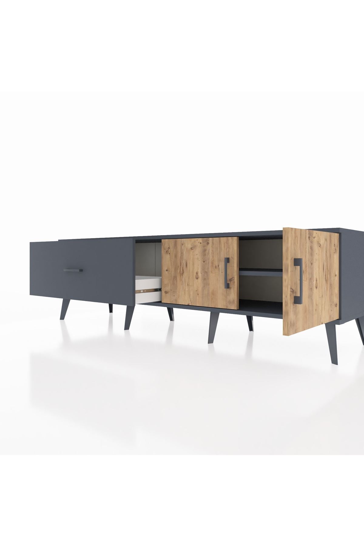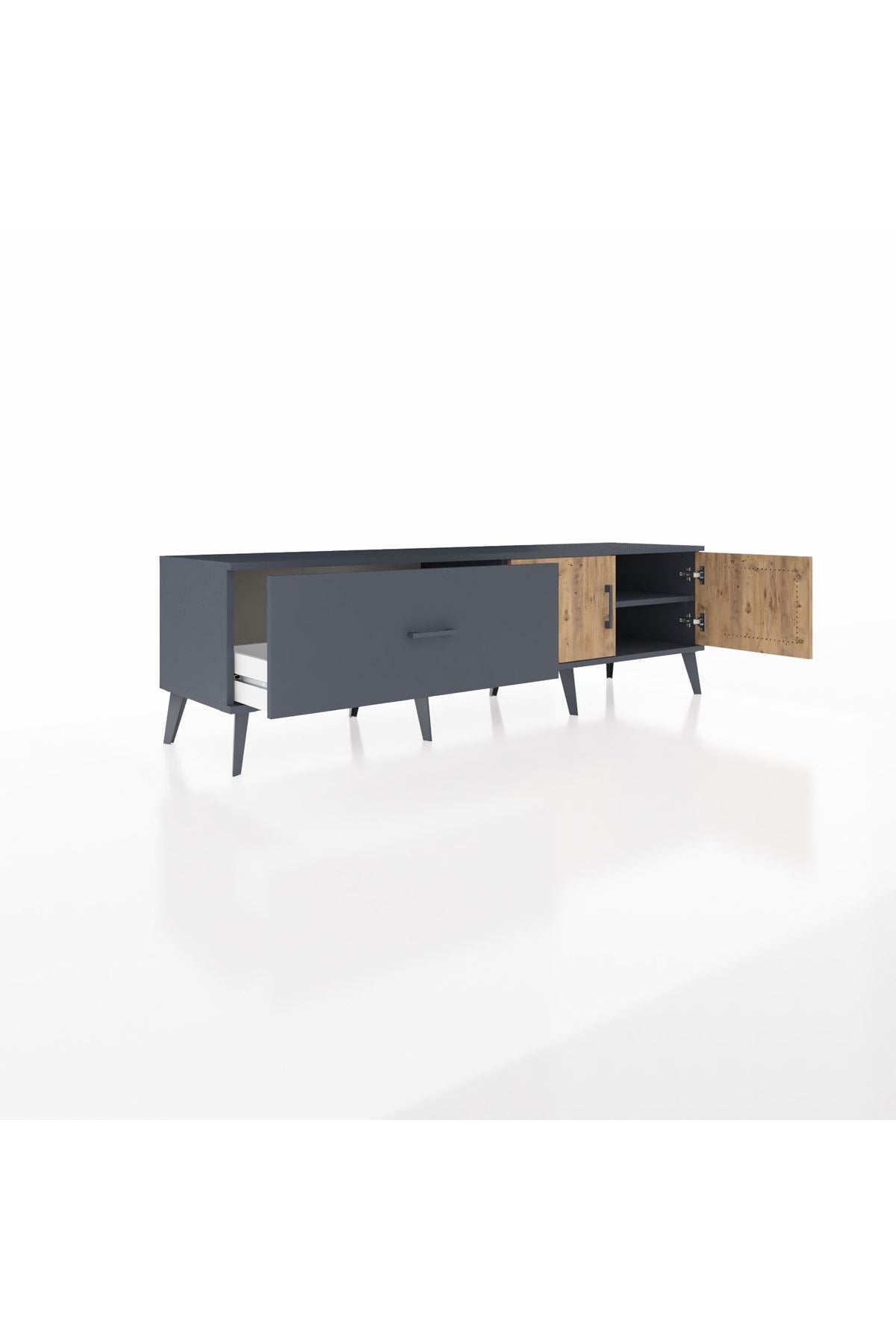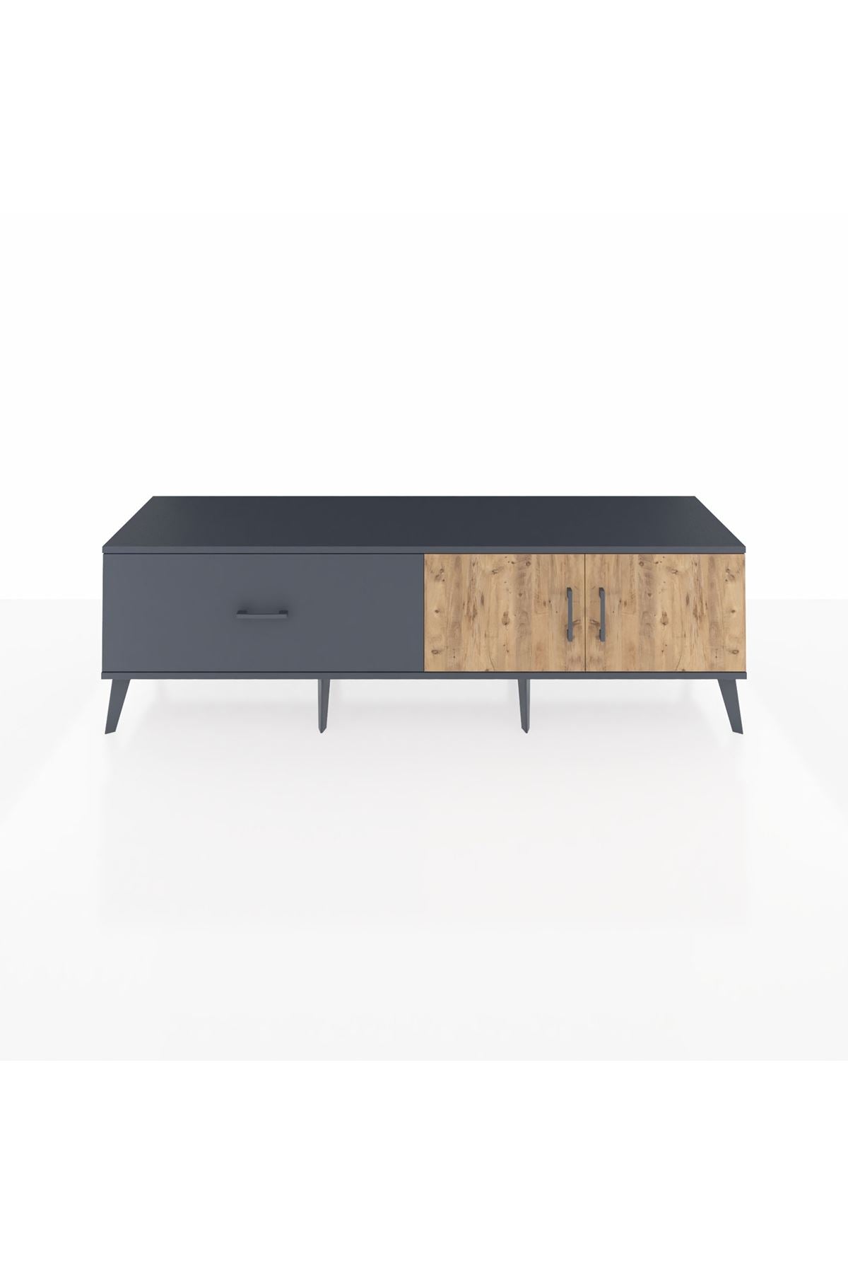 Hyperion TV Ünitesi Tek Raflı Tek Çekmeceli 2 Kapaklı 176x44x51 Antrasit-Çam/Antrasit
