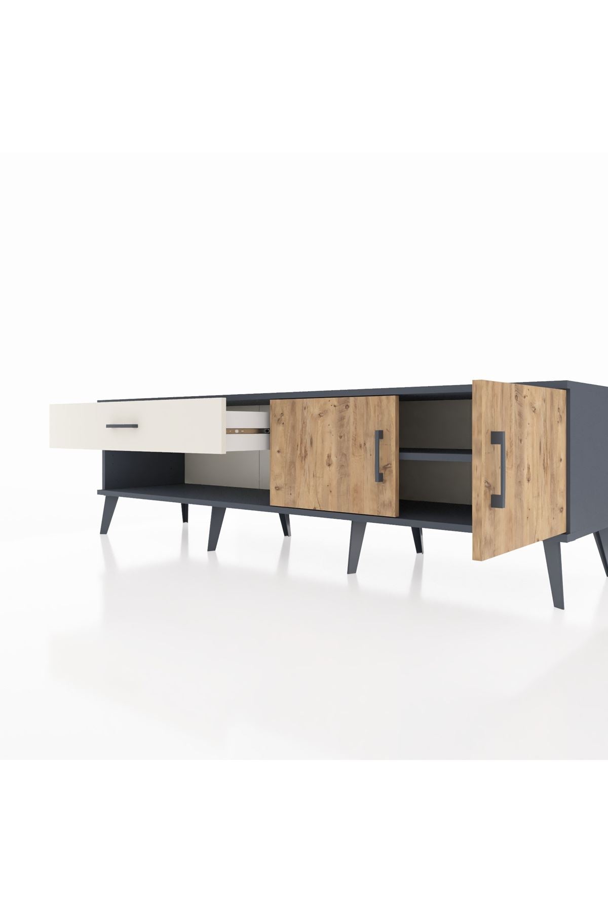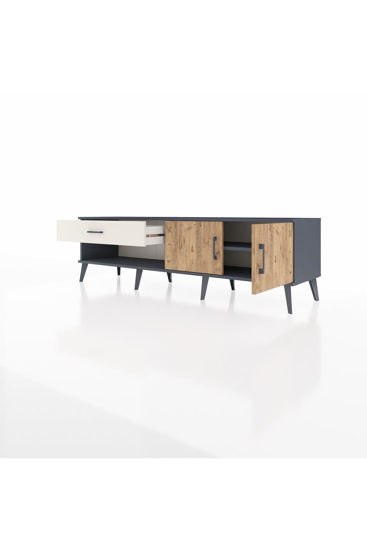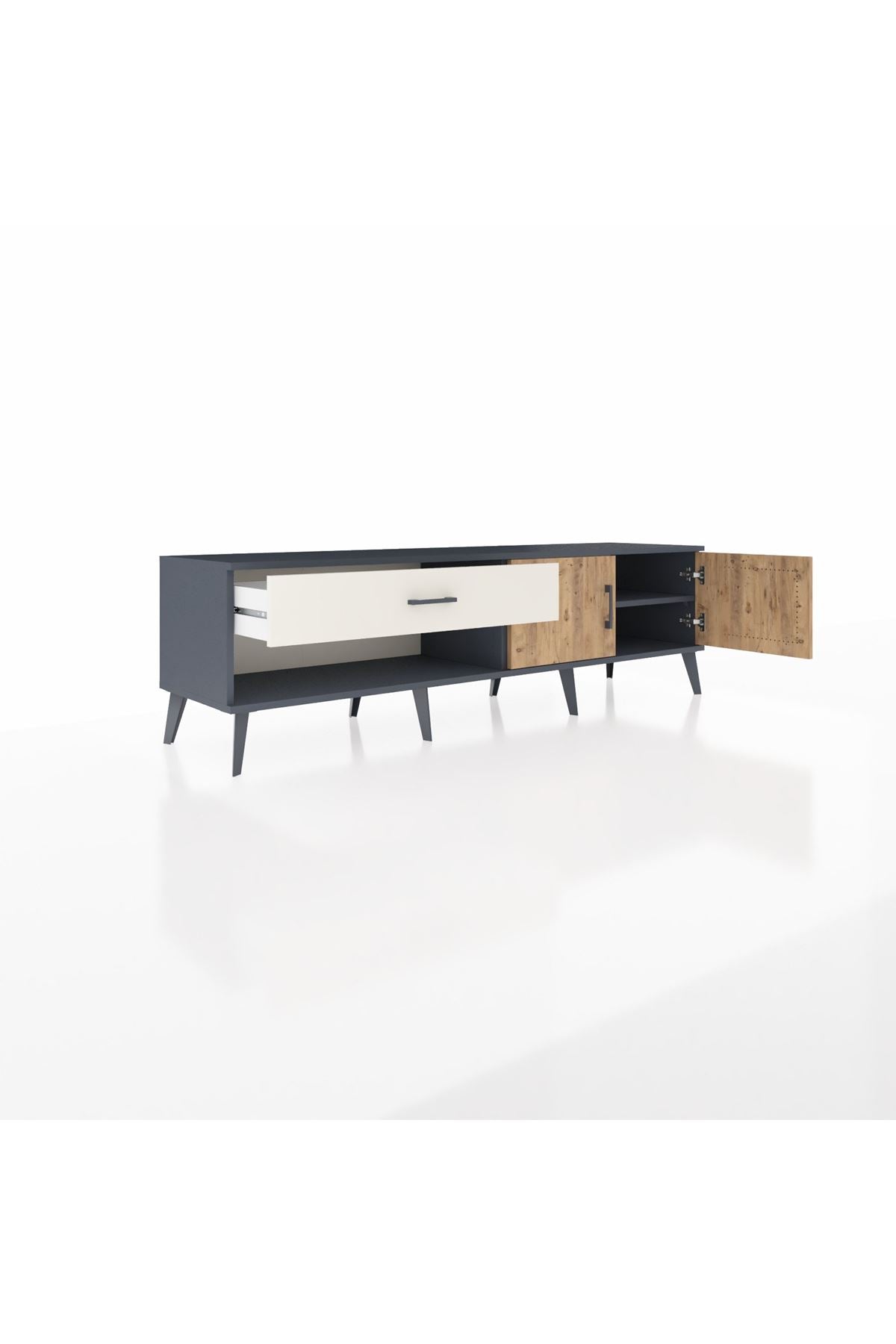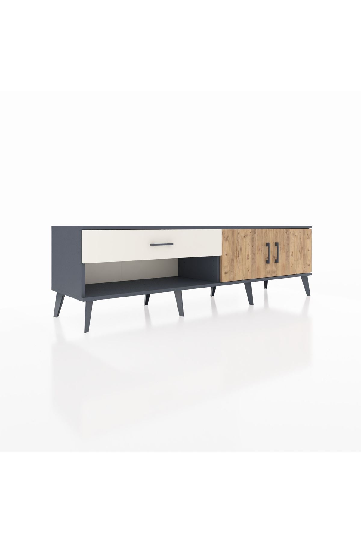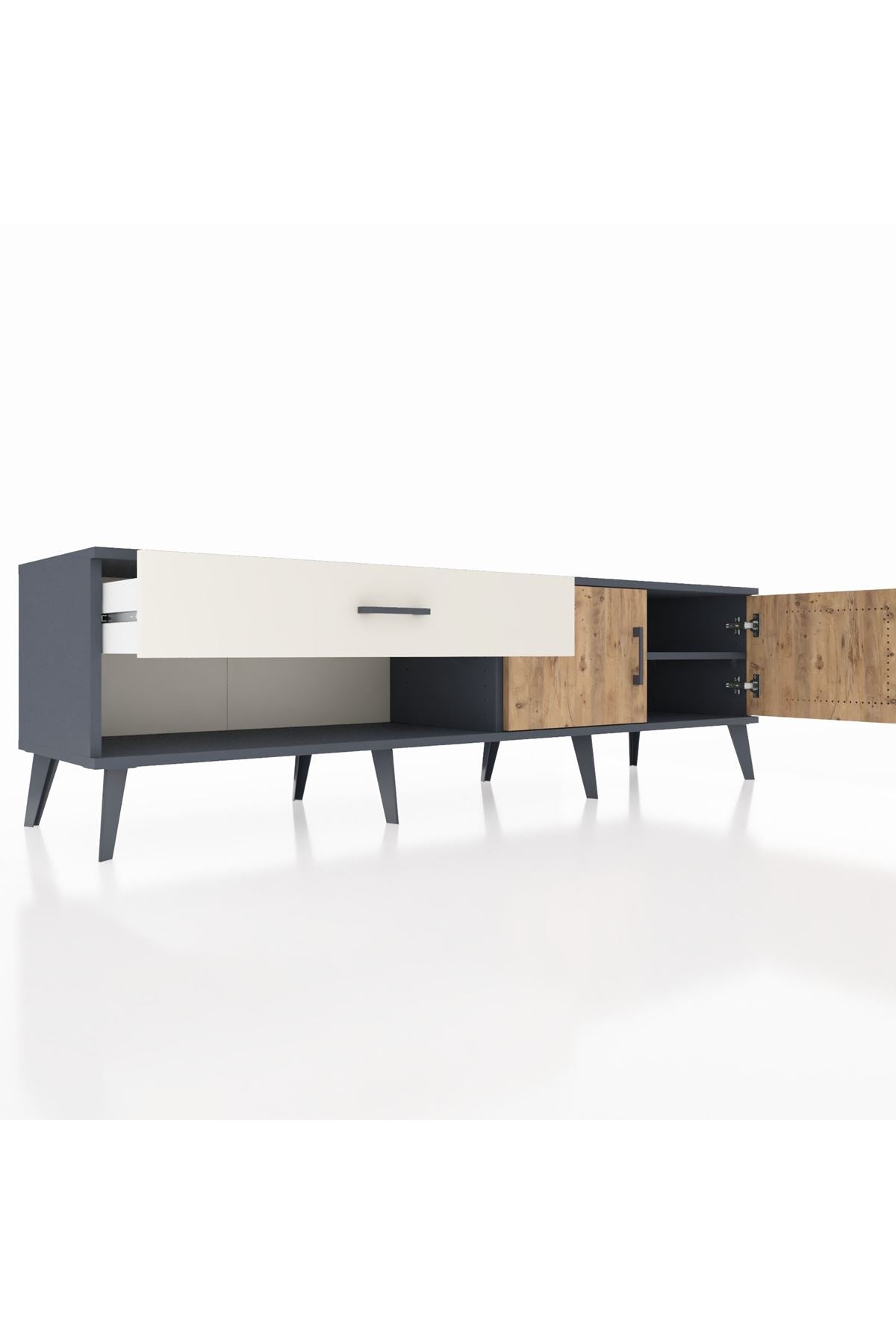 Hyperion TV Ünitesi Tek Raflı Tek Çekmeceli 2 Kapaklı 176x44x51 Antrasit-Çam/Aytaşı