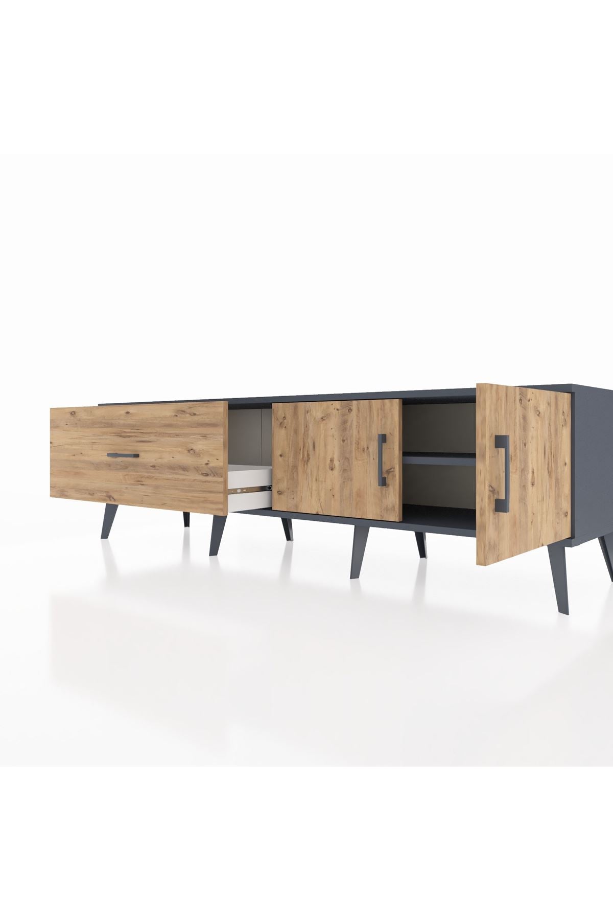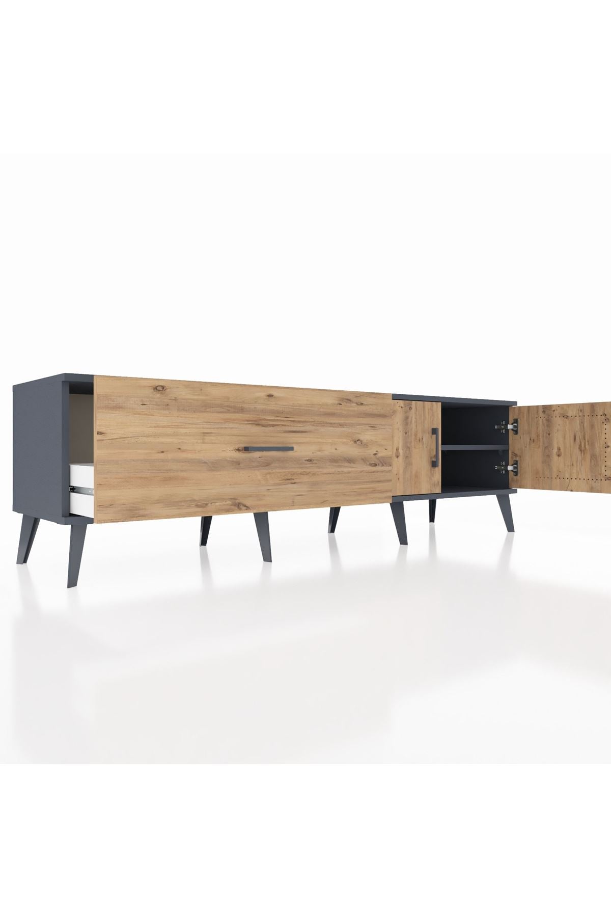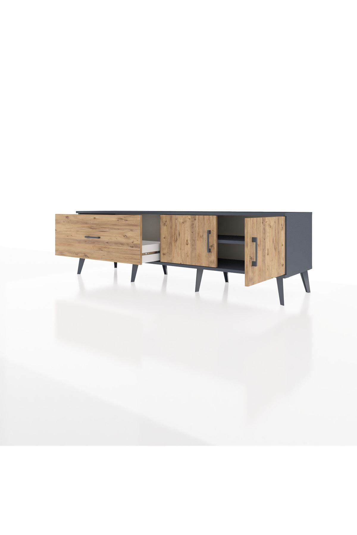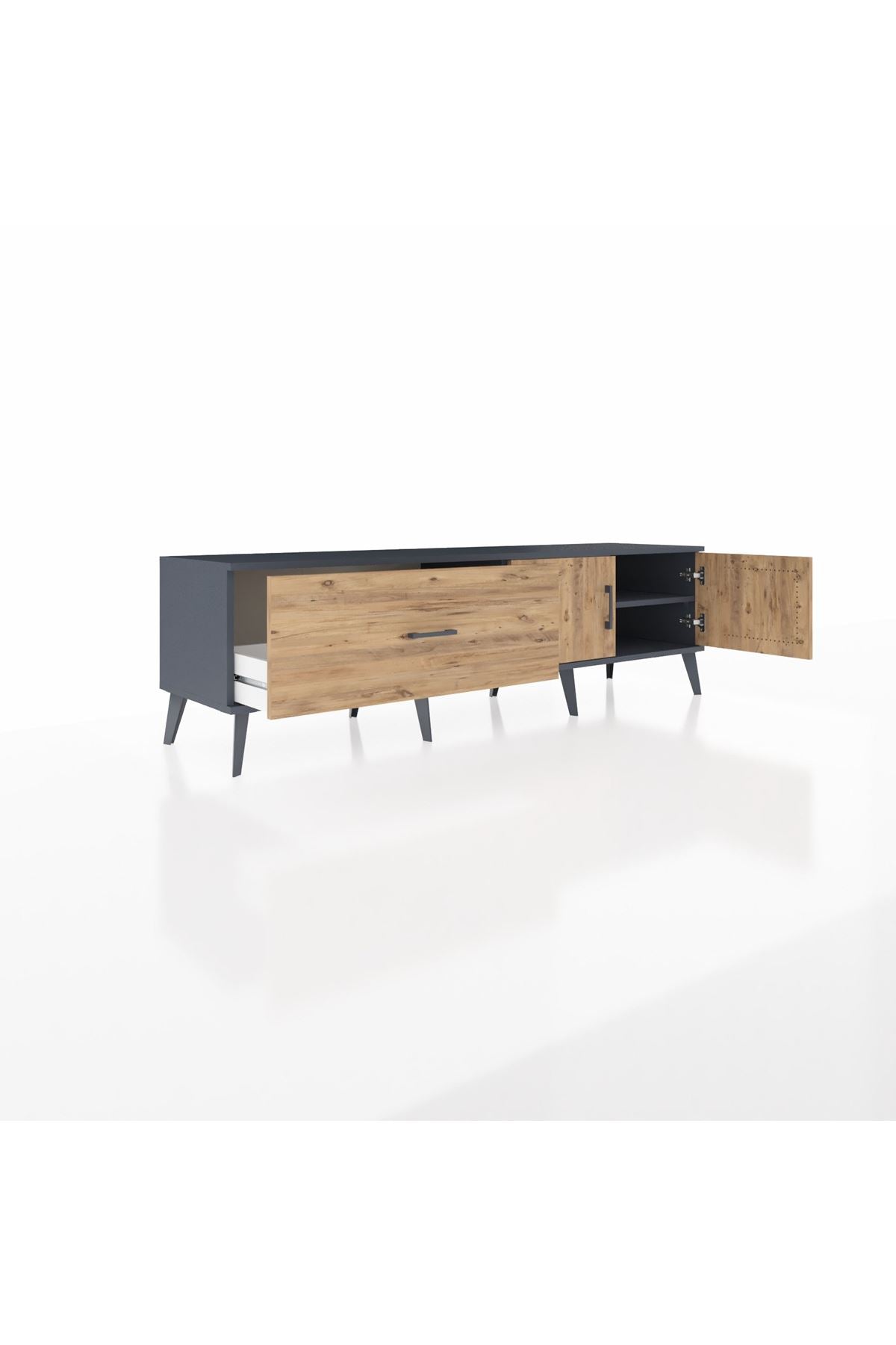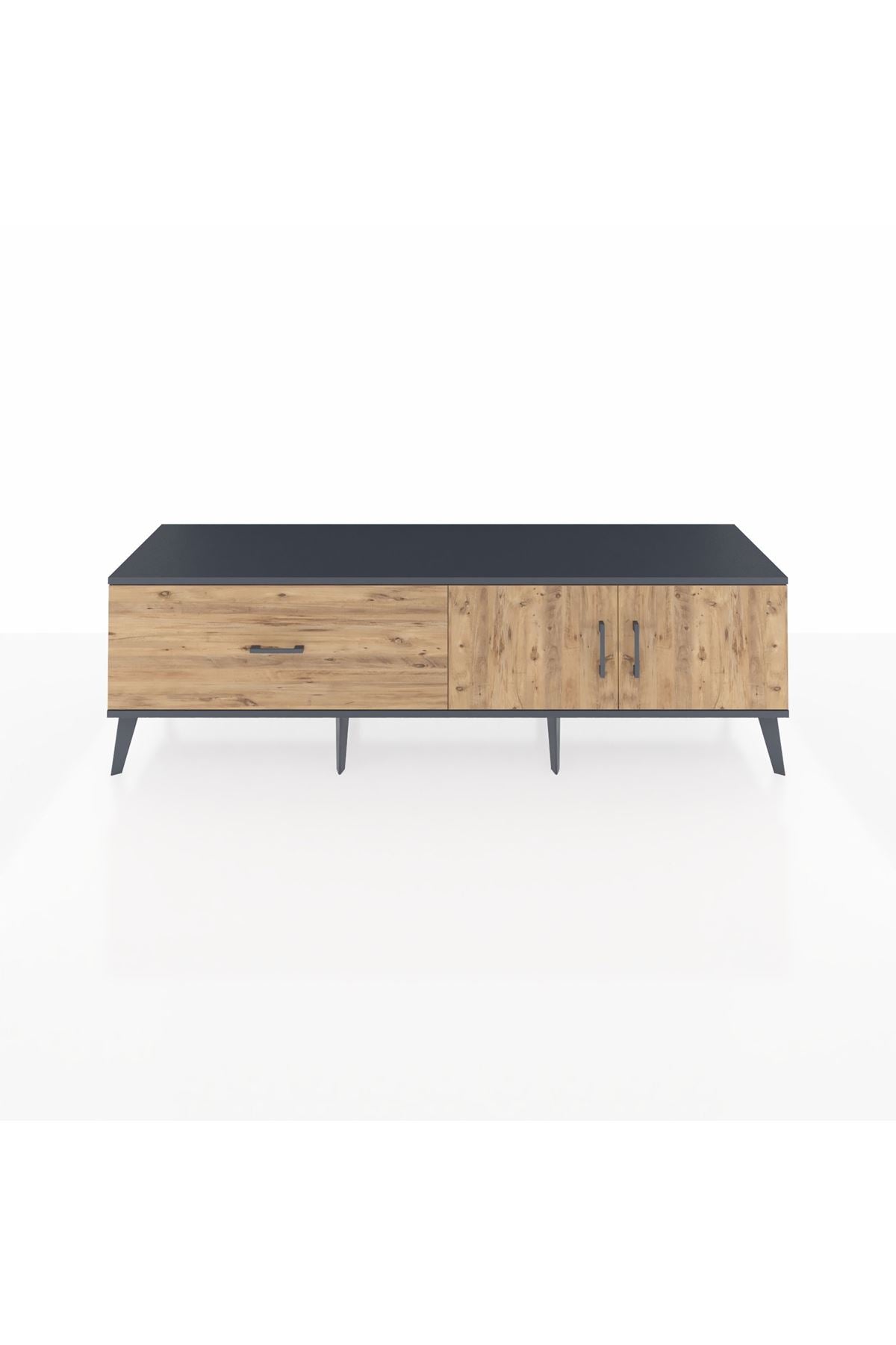 Hyperion TV Ünitesi Tek Raflı Tek Çekmeceli 2 Kapaklı 176x44x51 Antrasit-Çam/Çam
