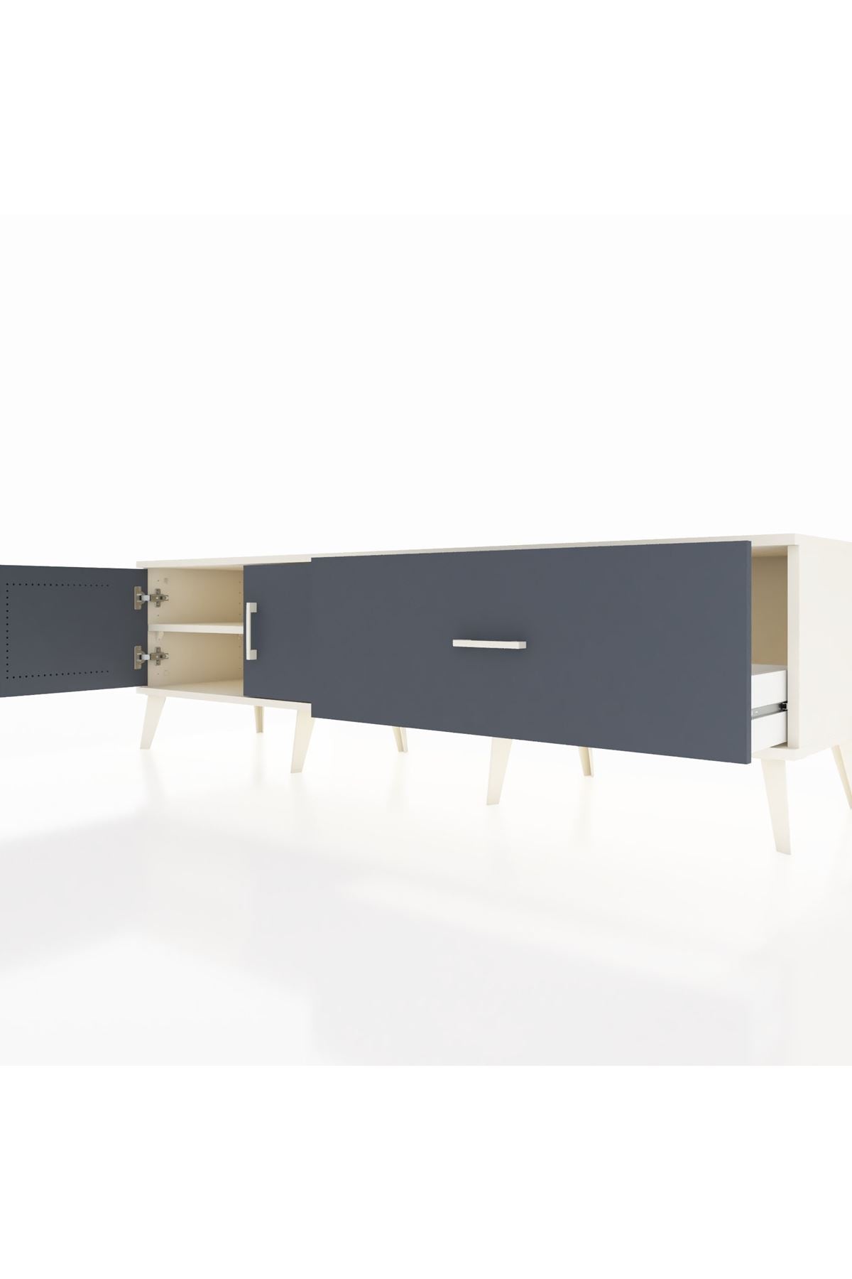 🌟 Eğer oturma odanıza modern bir dokunuş katmak istiyorsanız, Hyperion TV Ünitesi tam size göre! Aytaşı ve antrasit renk kombinasyonu, mekana zarif bir uyum ve şıklık getiriyor. Bu özel tasarım, Artemis Koleksiyonu'nun "Helios – Işık" serisinden esinlenerek yaratıldı.