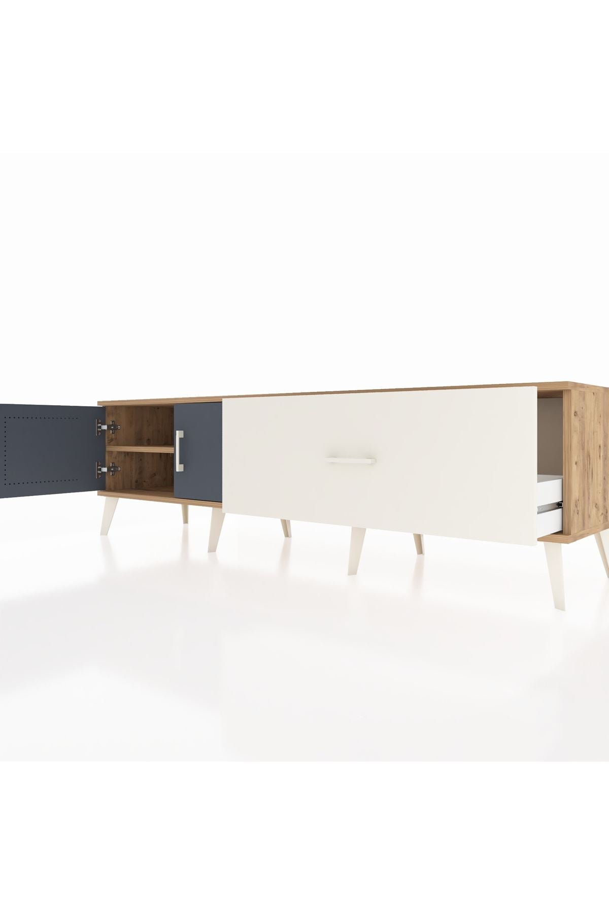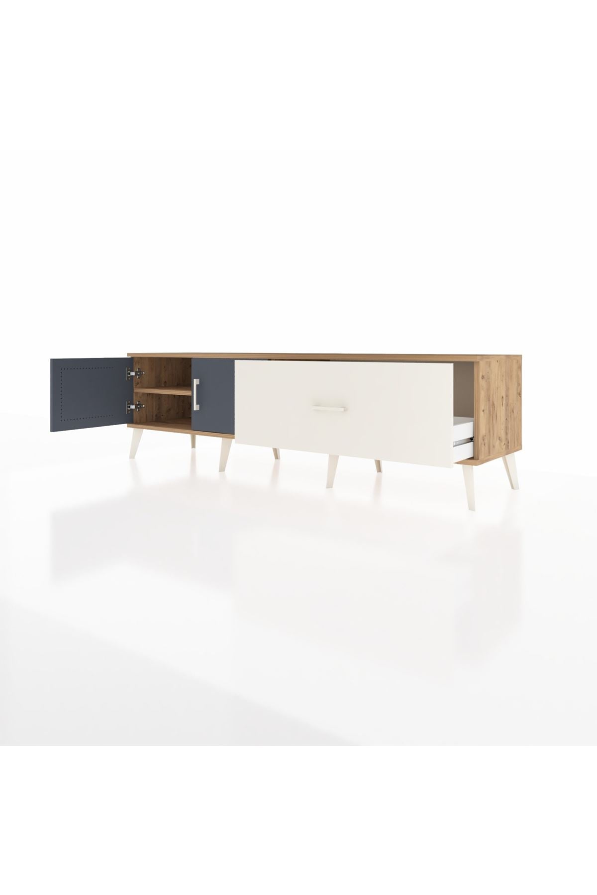 Hyperion TV Ünitesi Tek Raflı Tek Çekmeceli 2 Kapaklı 176x44x51 Çam-Antrasit/Aytaşı