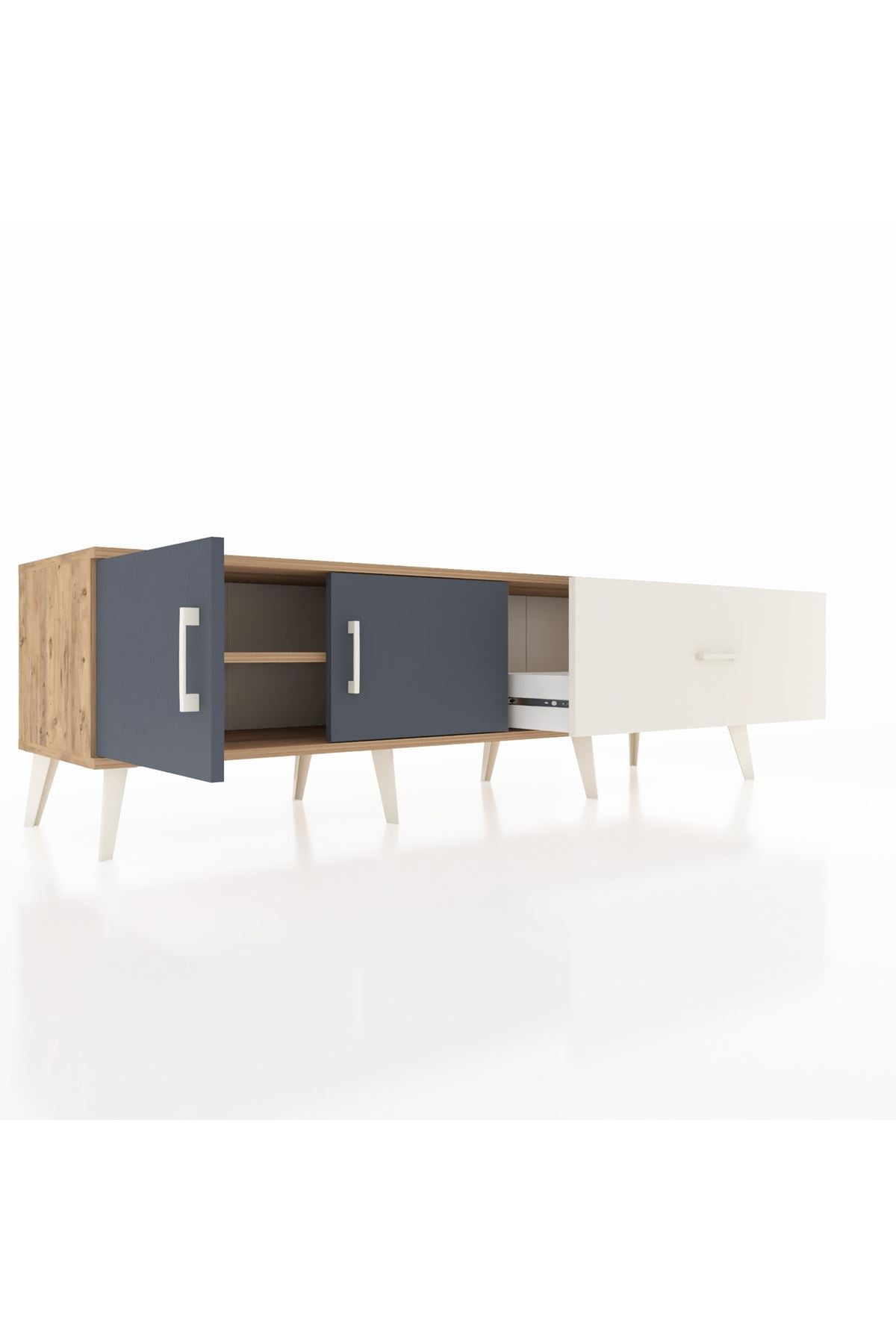 🛠️ Metal ayaklar ve kulplar, ünitenin sağlamlığını vurgularken Kastamonu Entegre 1. sınıf suntalam gövde ve kapaklar, uzun ömürlü bir kullanım sunar. 1.2 mm kenar bandı, ürünün dayanıklılığını artırarak estetik bir görünüm sağlar. Çekmeceler 23 cm açılma mesafesi sunar.