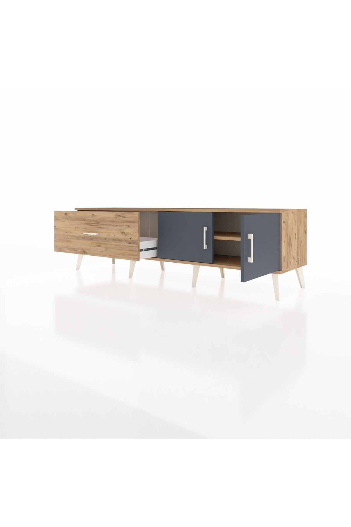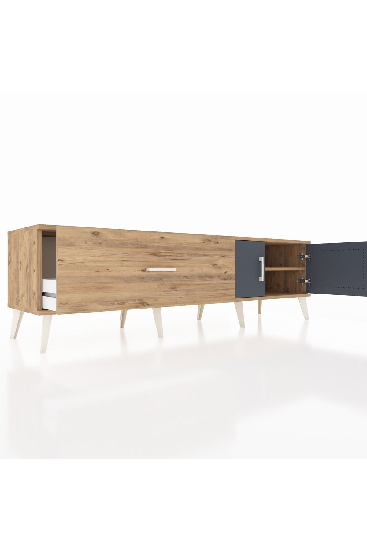 🖥️ Şıklık ve fonksiyonelliği bir arada sunan Hyperion TV Ünitesi, çam ve antrasit renklerinin mükemmel uyumuyla evinize modern bir dokunuş katacak. Zarif çizgileri ve etkileyici tasarımıyla Artemis Koleksiyonu’nun Kronos serisi, zamanı durduran estetiği sunuyor.