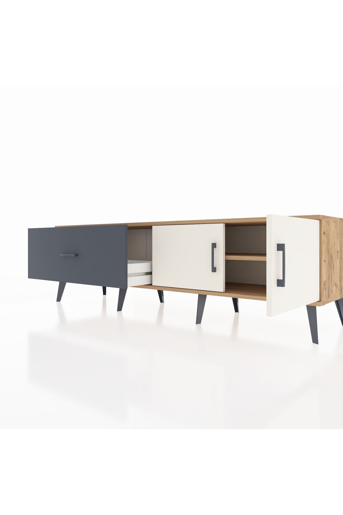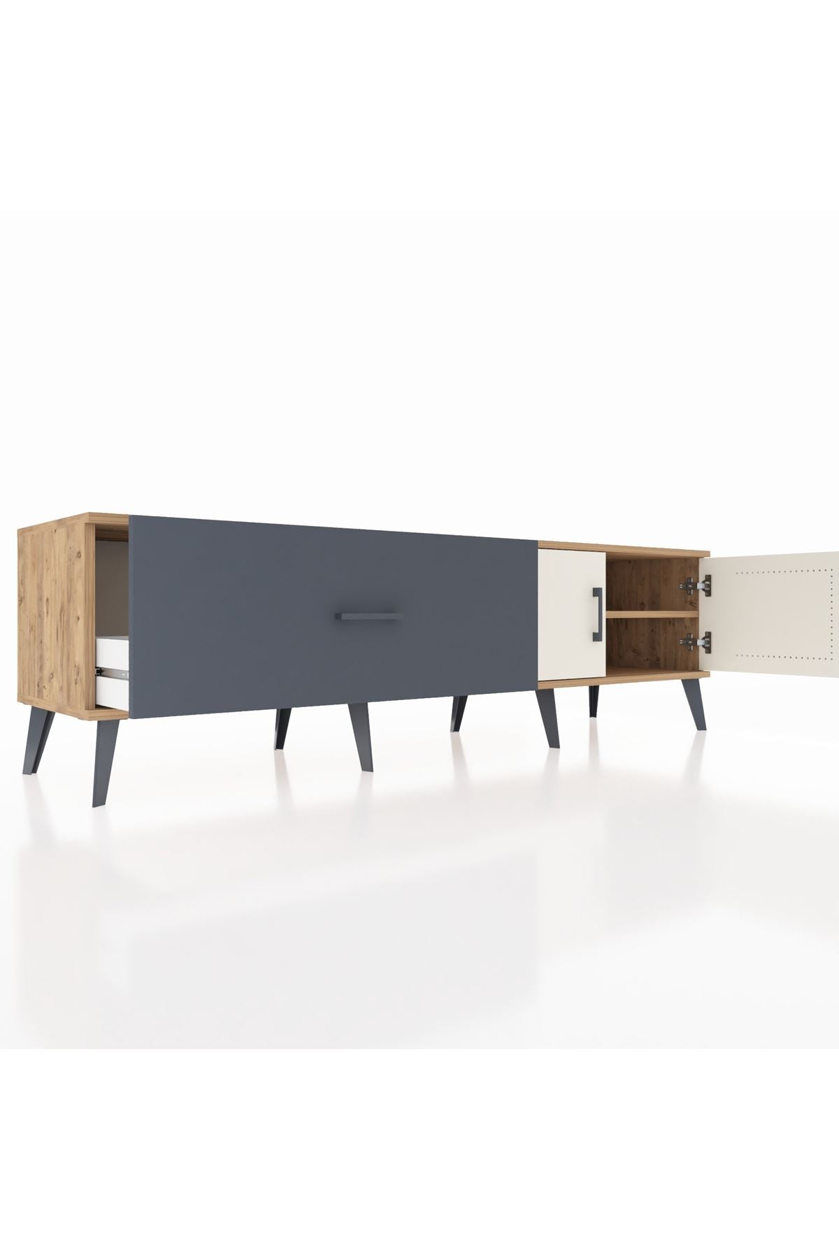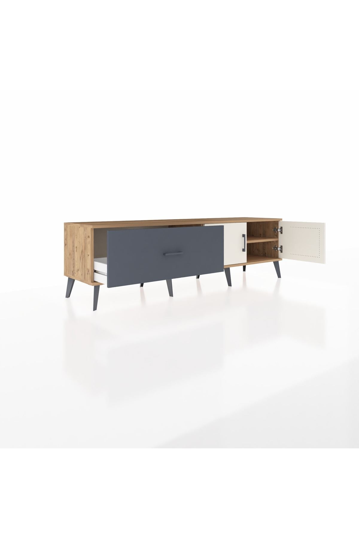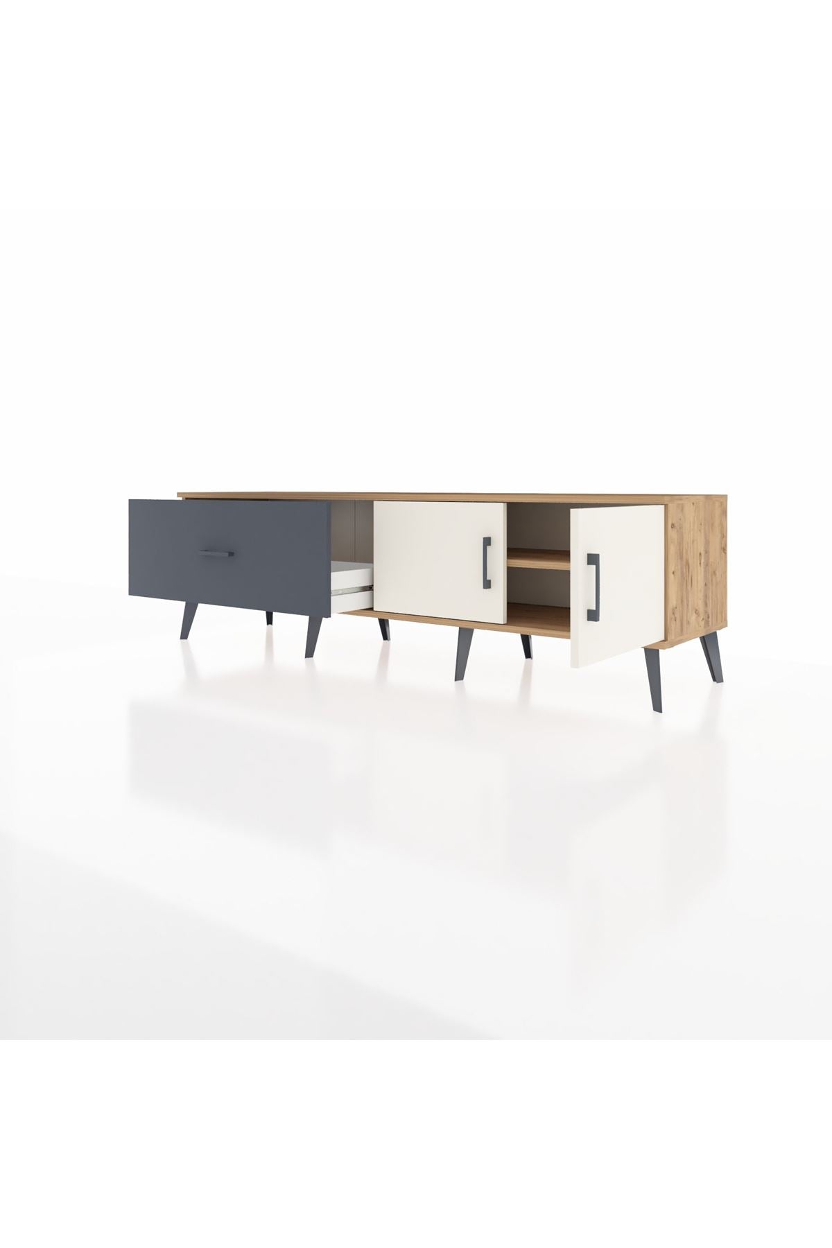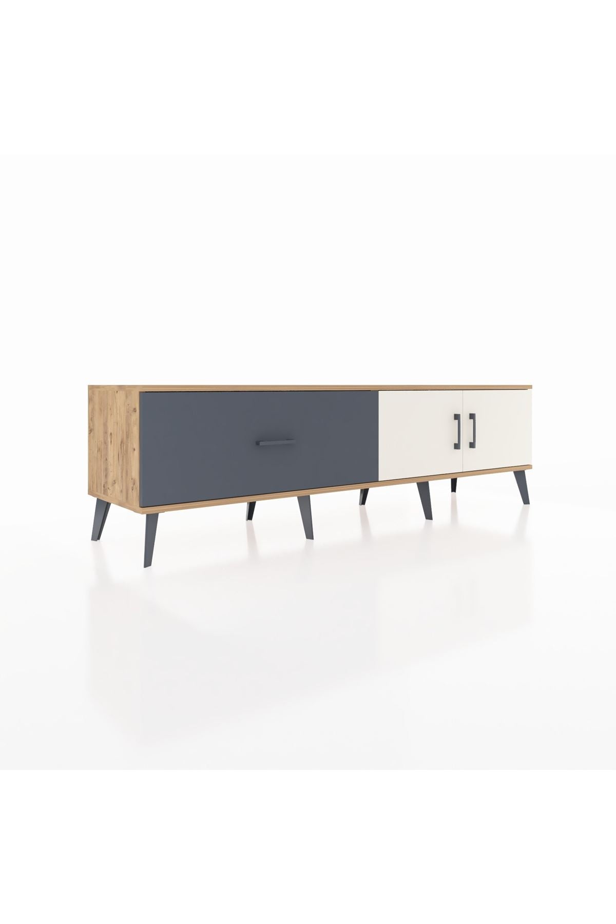 Hyperion TV Ünitesi Tek Raflı Tek Çekmeceli 2 Kapaklı 176x44x51 Çam-Aytaşı/Antrasit