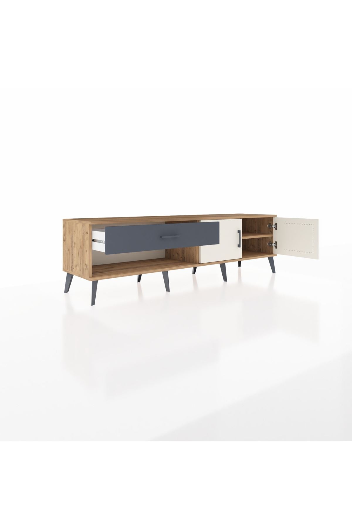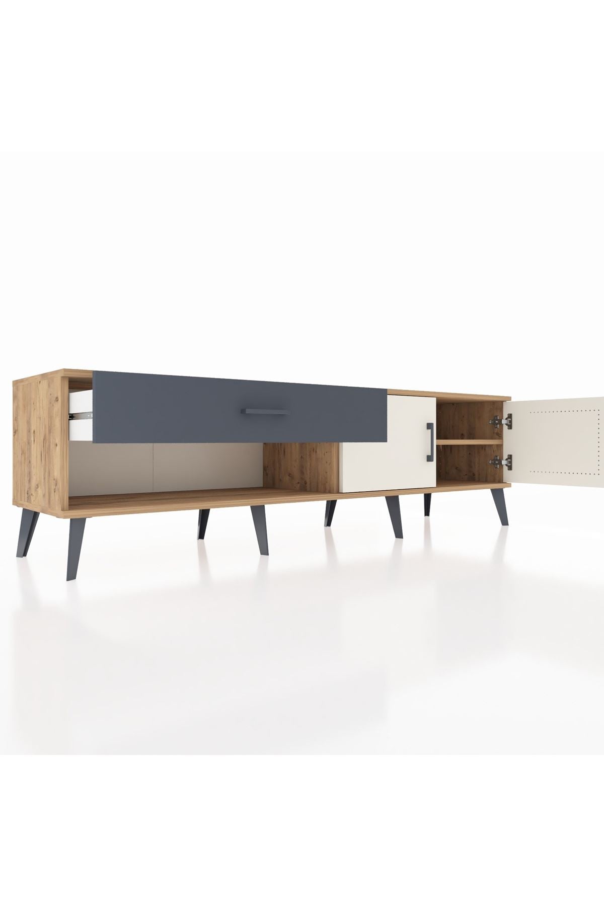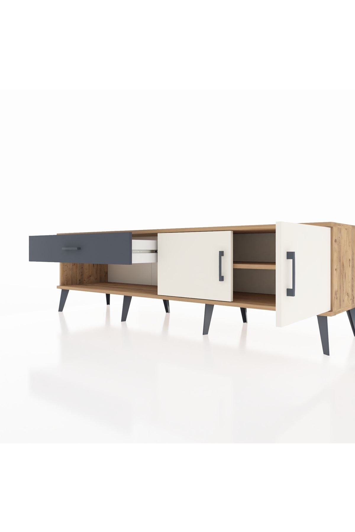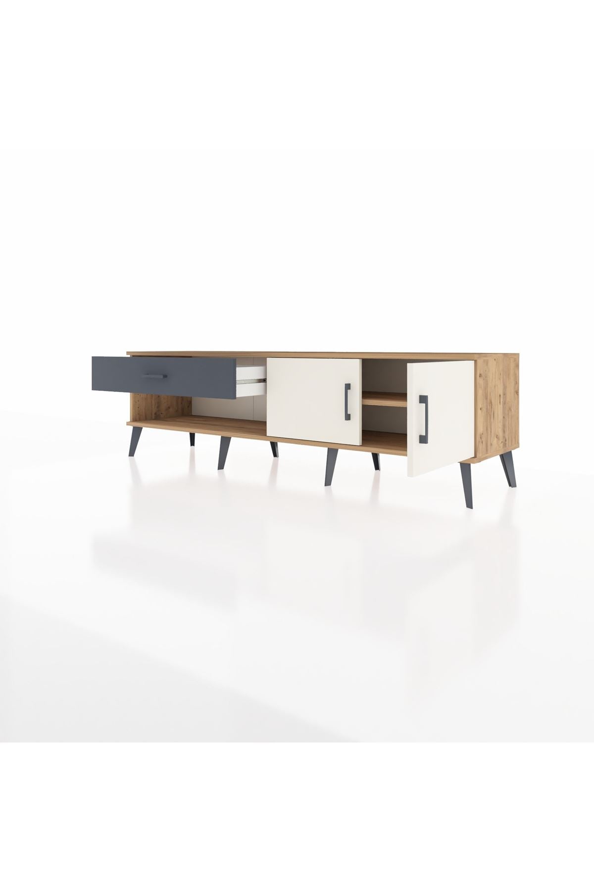 Hyperion TV Ünitesi Tek Raflı Tek Çekmeceli 2 Kapaklı 176x44x51 Çam-Aytaşı/Antrasit