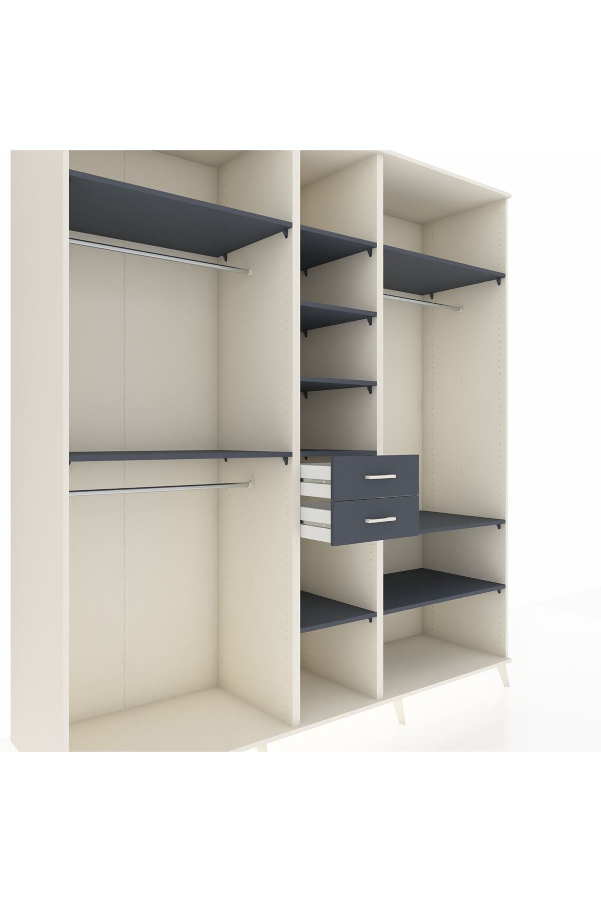 Kronos Dolap 10 Raflı 2 Çekmeceli 3 Askılı 220x59x243 Çam-Antrasit/Antrasit