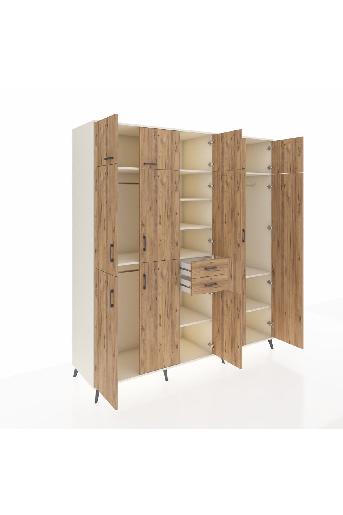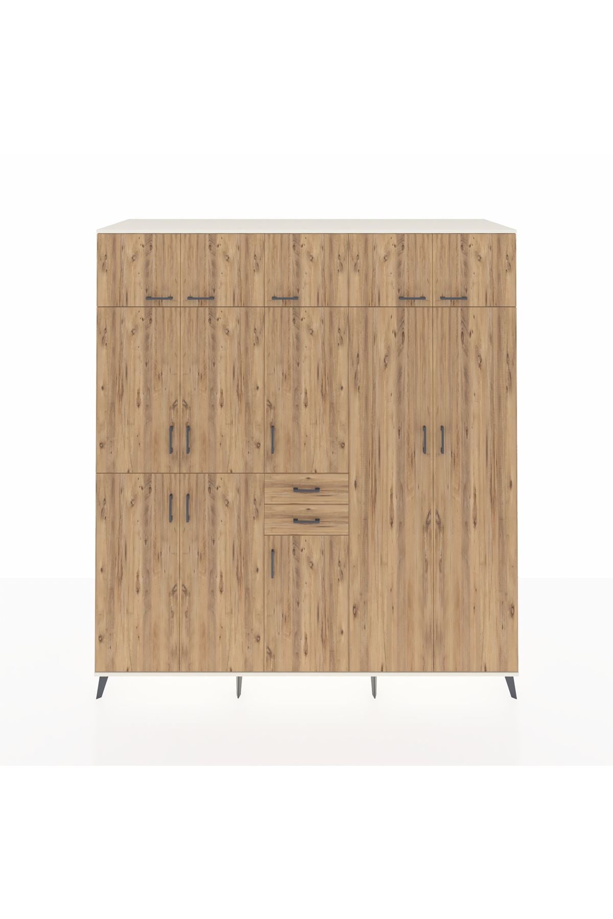 Kronos Dolap 10 Raflı 2 Çekmeceli 3 Askılı 220x59x243 Aytaşı-Çam/Çam