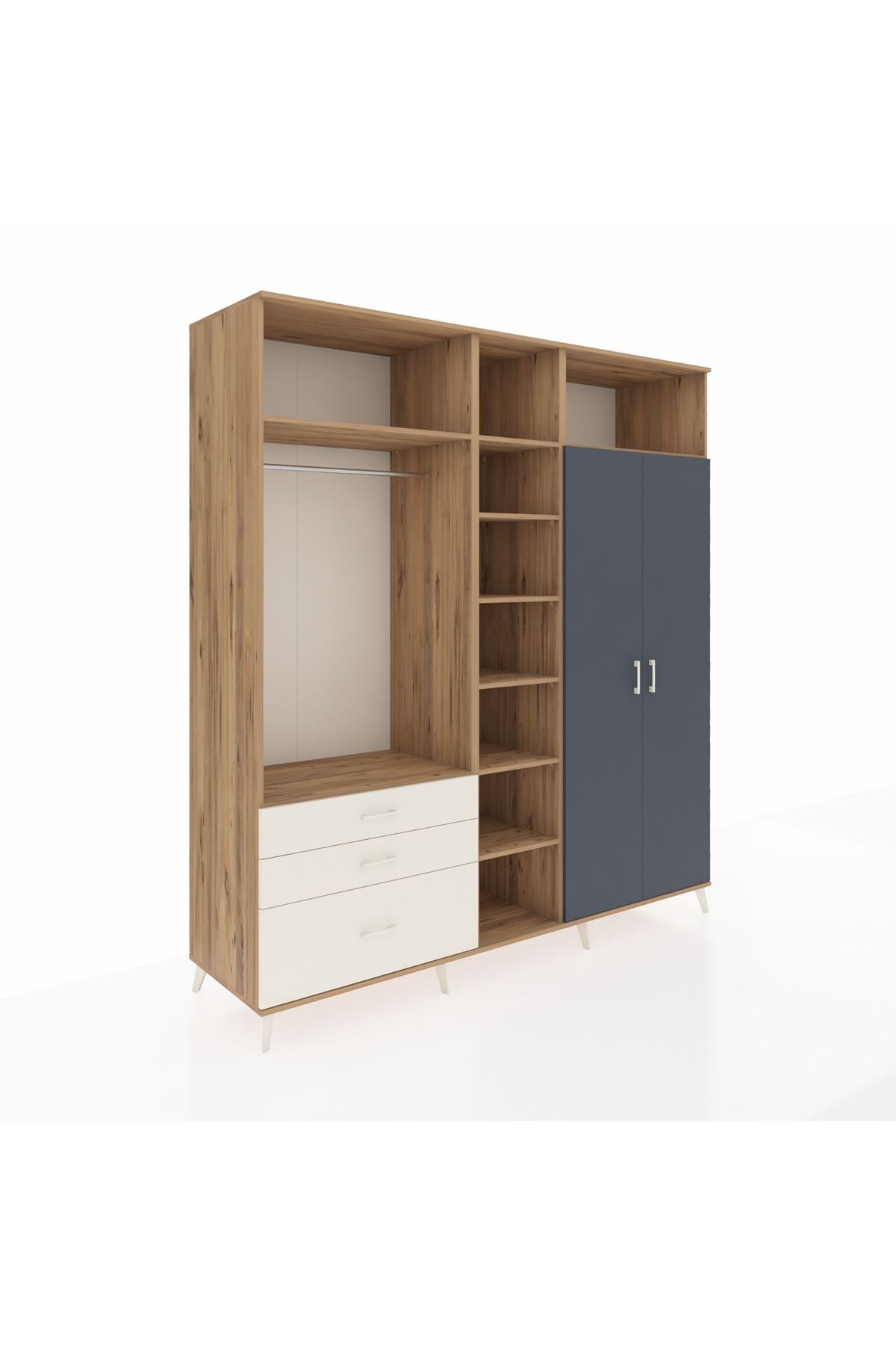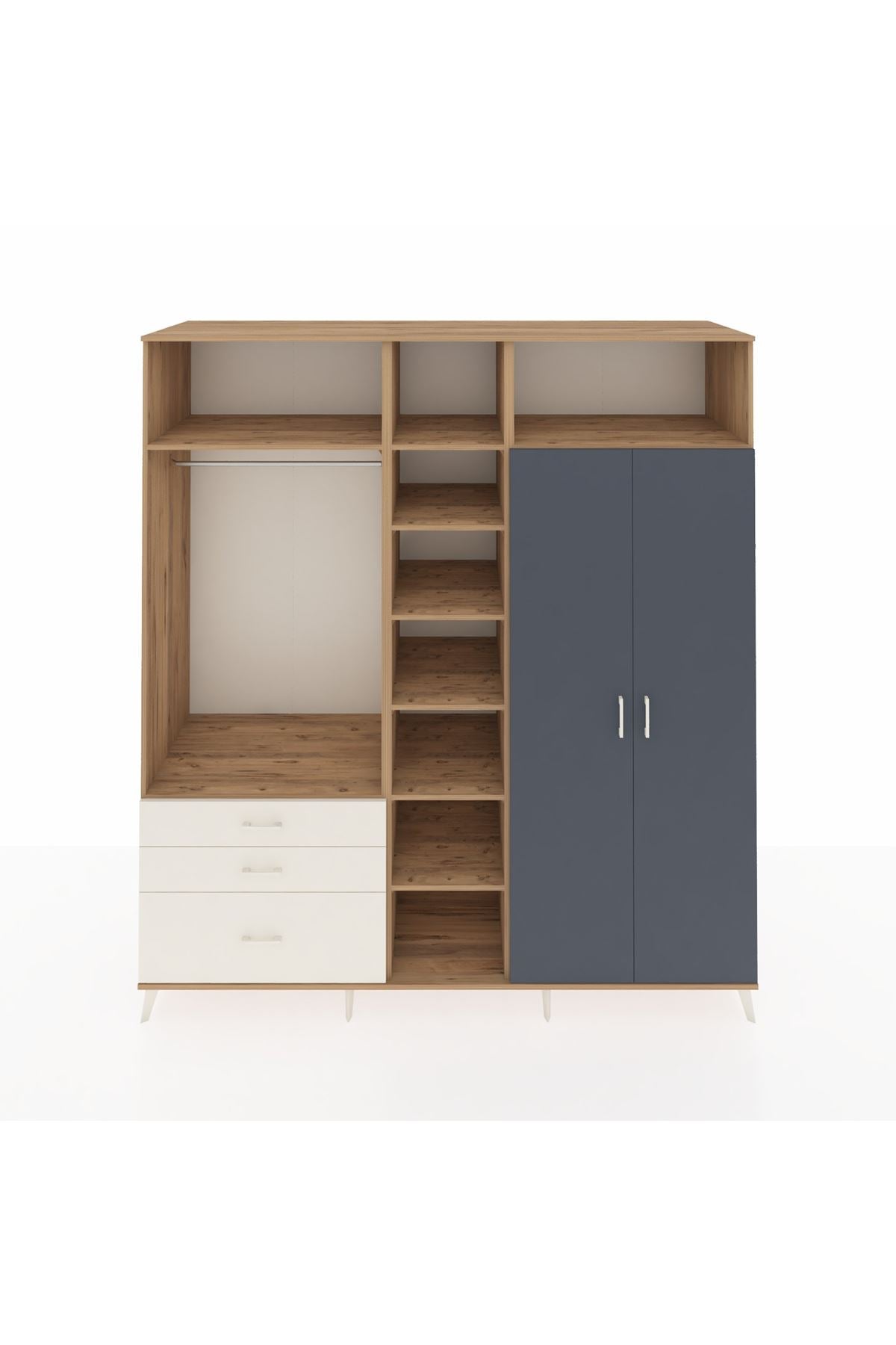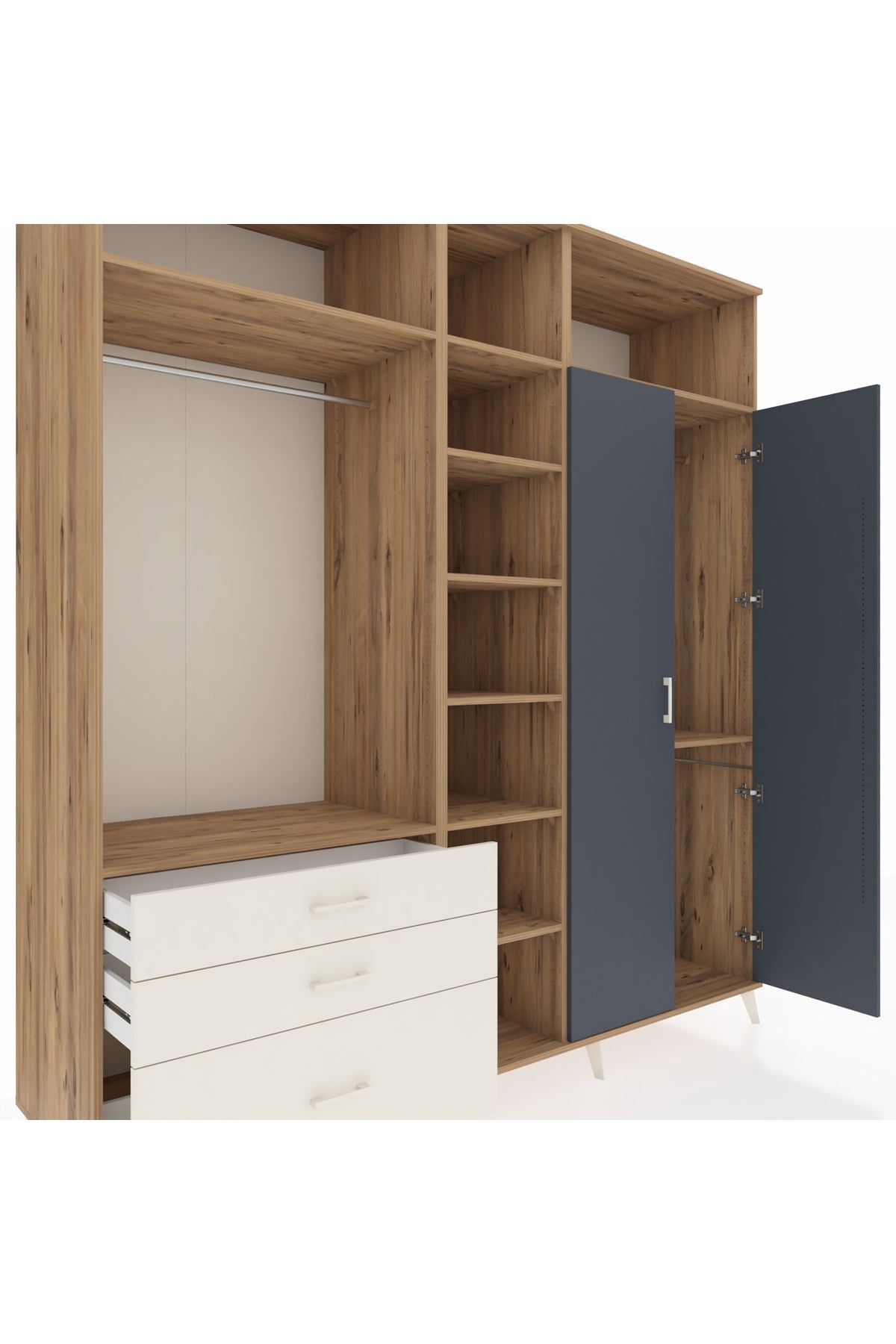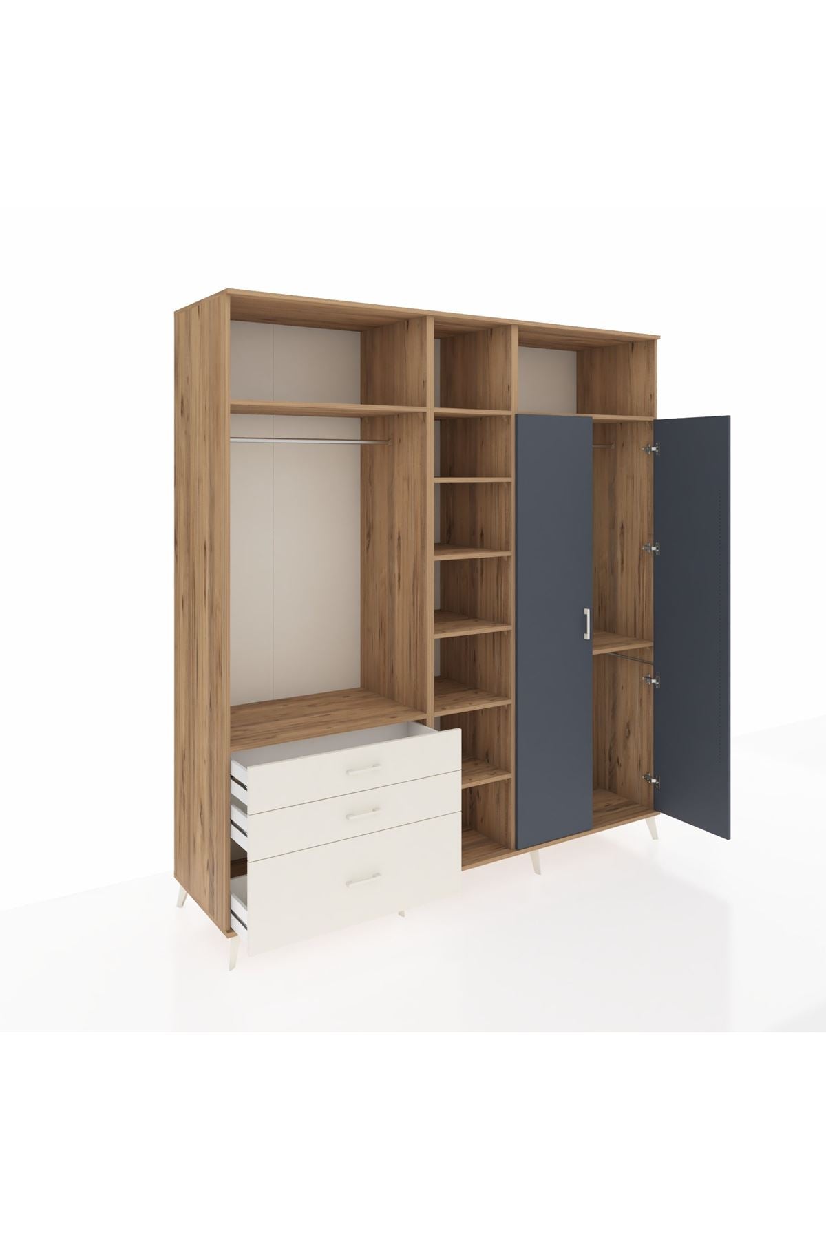 Kronos Dolap 10 Raflı 3 Çekmeceli 2 Askılı 220x59x243 Çam-Antrasit/Aytaşı