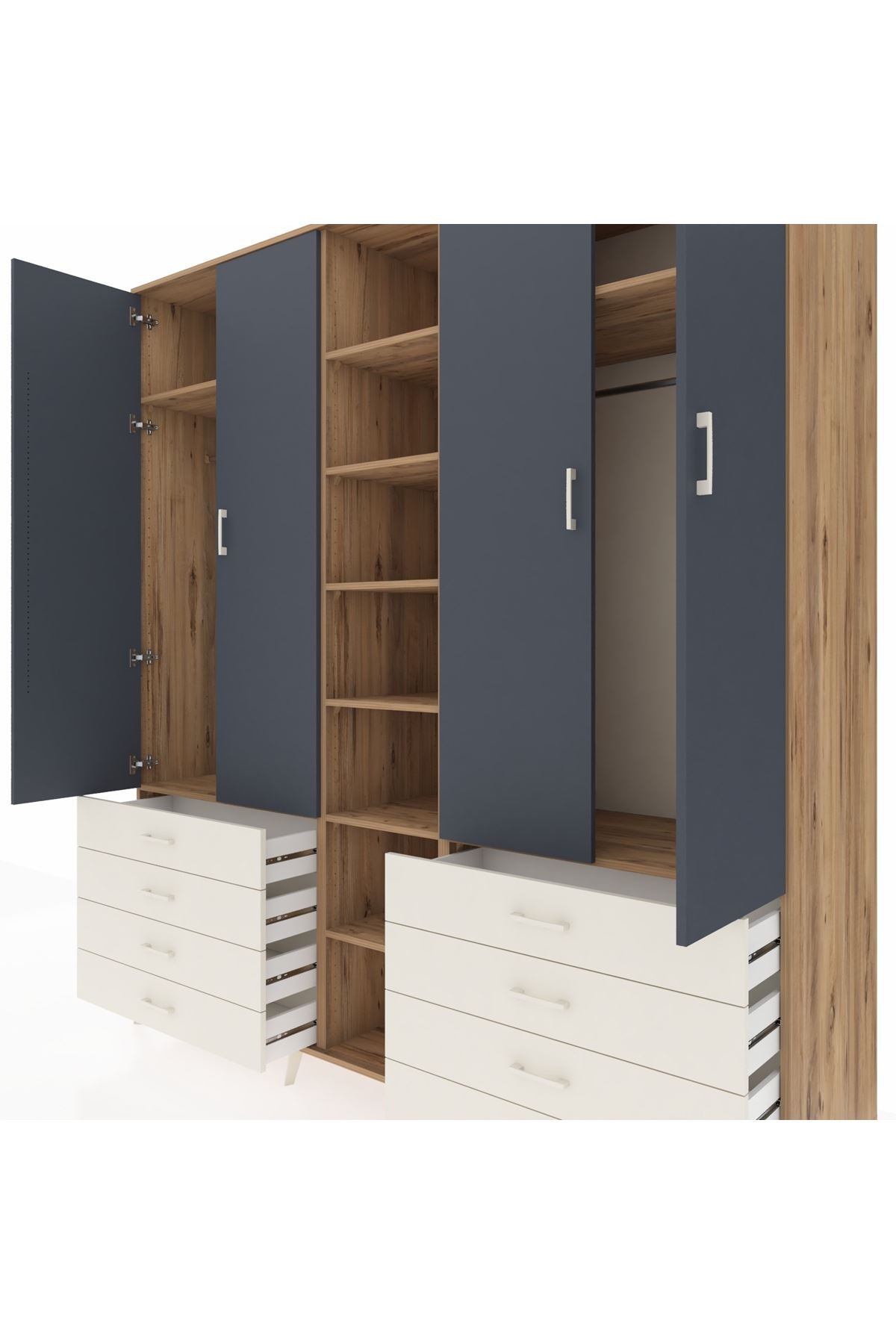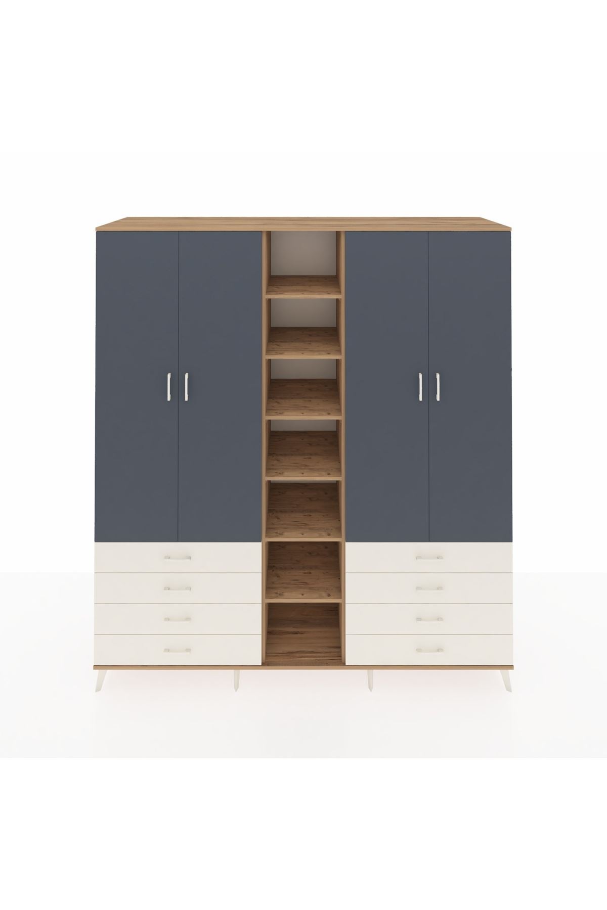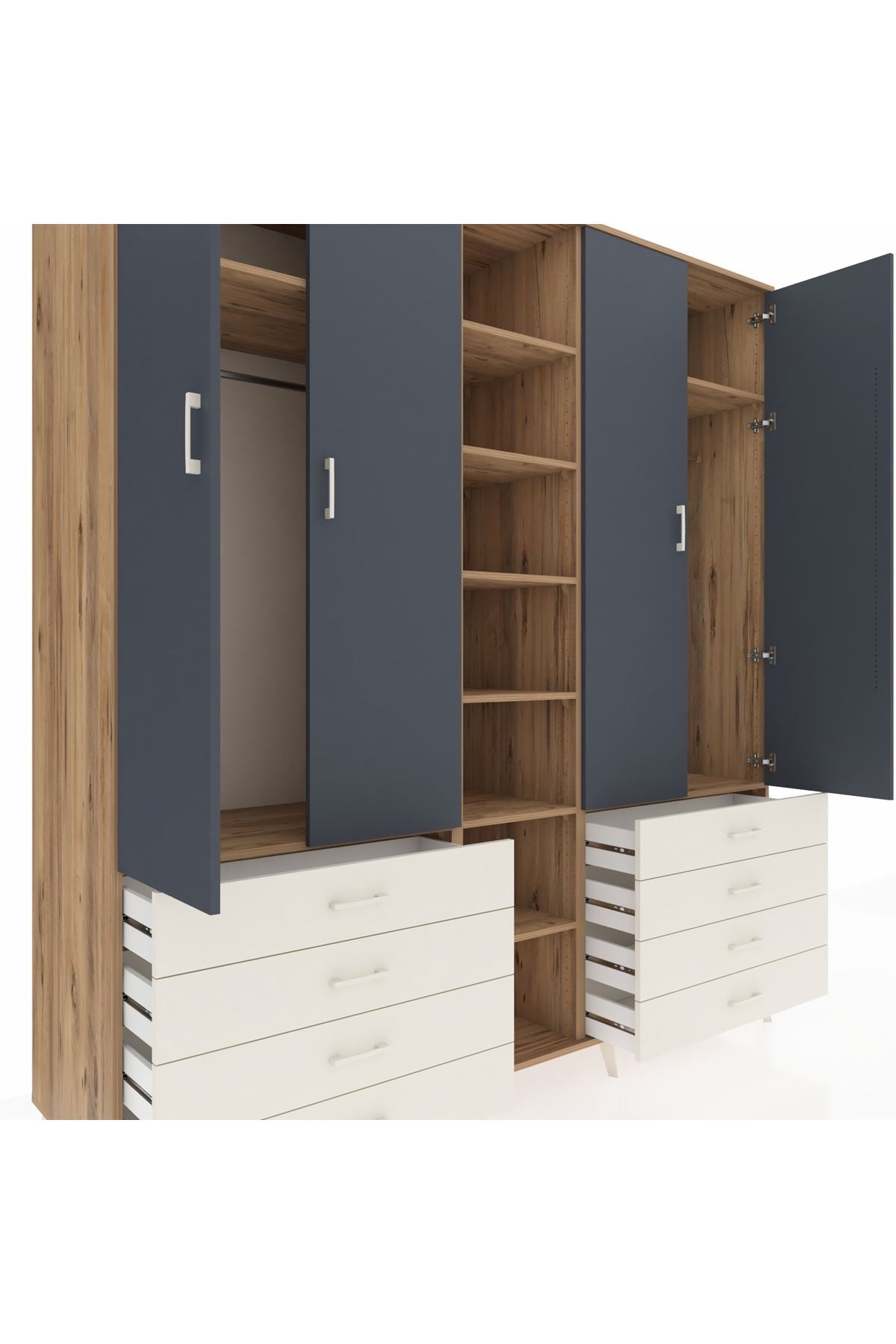 Kronos Dolap 10 Raflı 8 Çekmeceli 2 Askılı 220x59x243 Çam-Antrasit/Aytaşı
