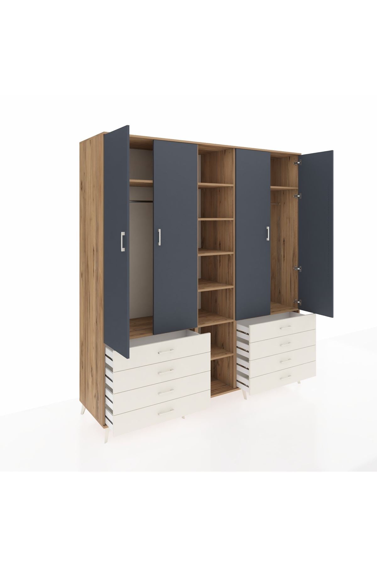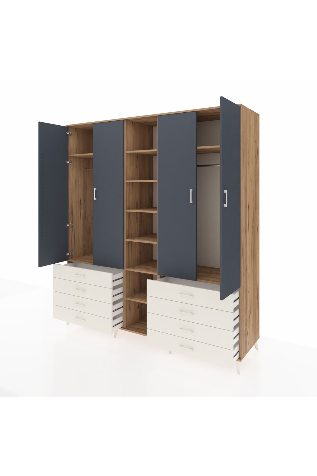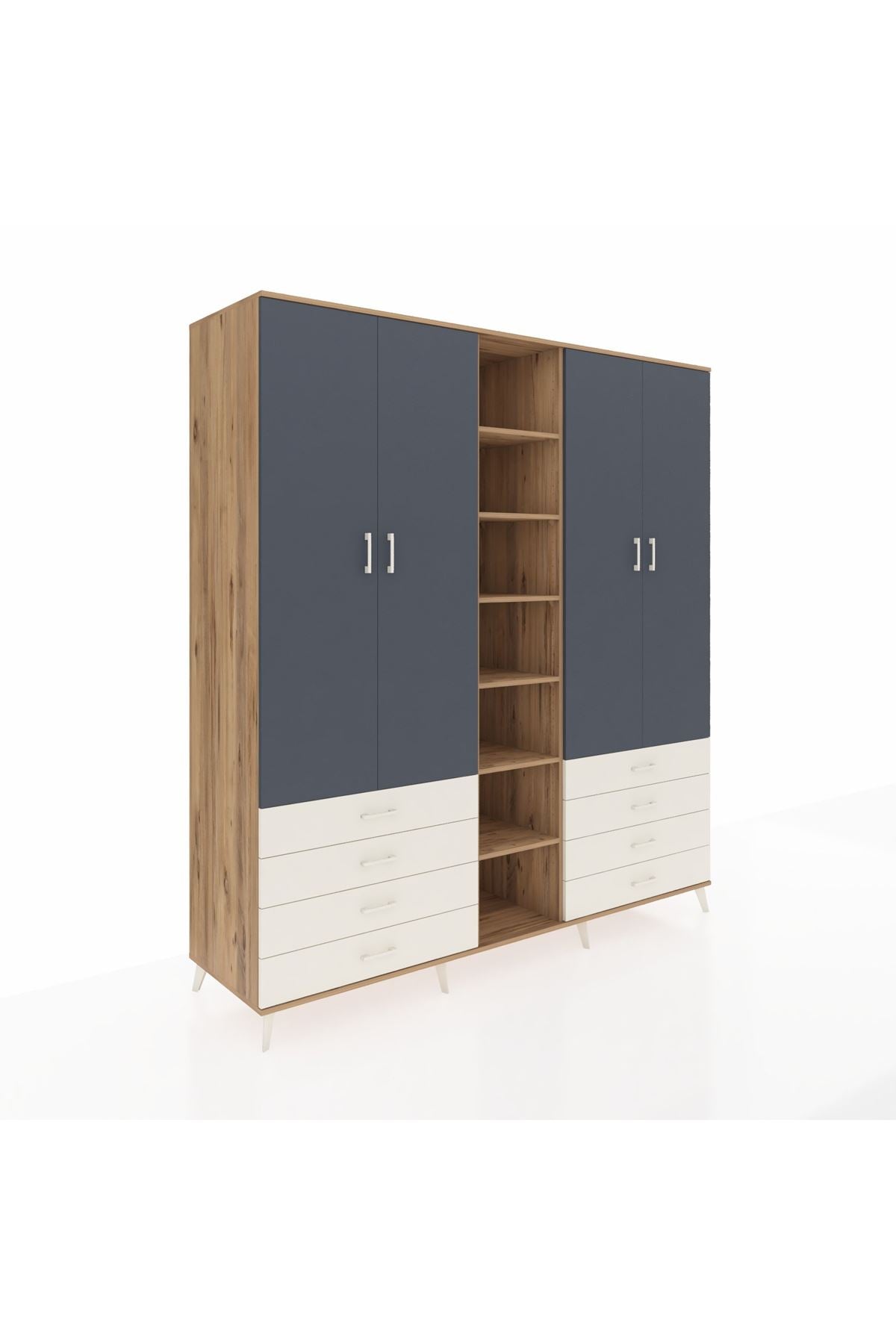 Kronos Dolap 10 Raflı 8 Çekmeceli 2 Askılı 220x59x243 Çam-Antrasit/Aytaşı