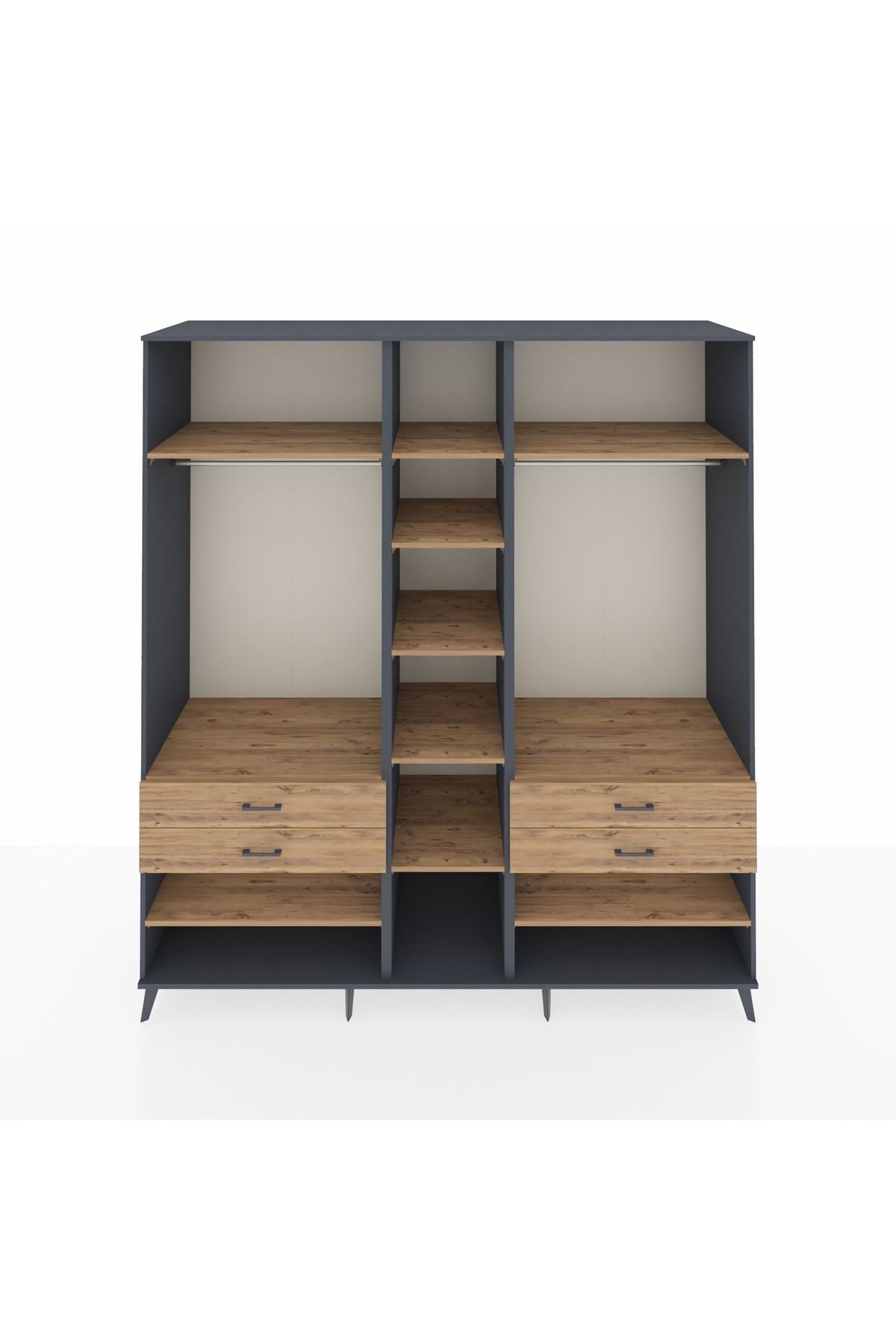 Kronos Dolap 11 Raflı 4 Çekmeceli 2 Askılı 220x59x243 Antrasit-Çam/Çam