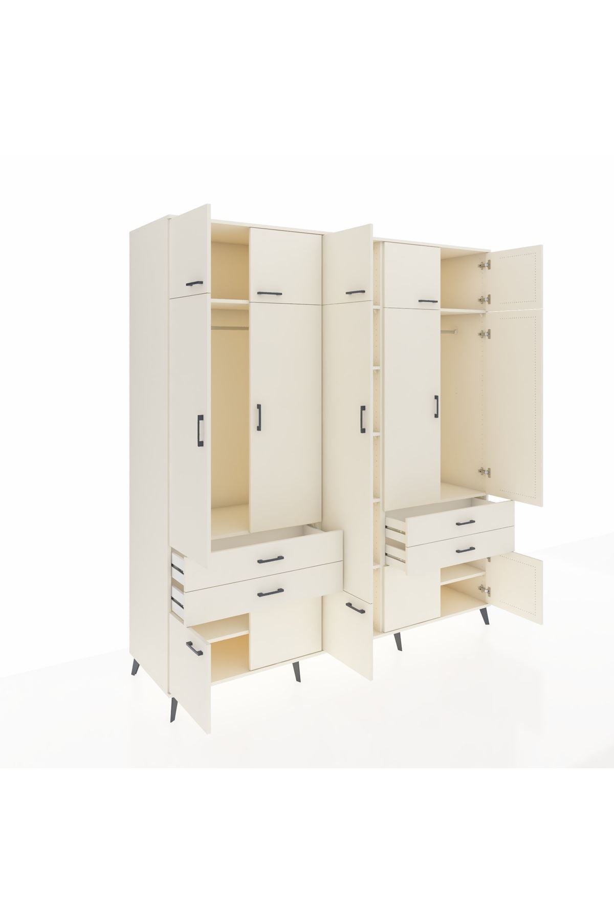 🪐 Artemis Koleksiyonu'nun bir parçası olan Kronos, Zaman temasıyla tasarlanmış olup zamansız güzellik ve işlevselliği birleştirir. İçindeki 11 raf, 4 çekmece ve 2 askılı bölme sayesinde her eşyanız için yer açar. Çekmeceler 27 cm açılma mesafesi sunar.