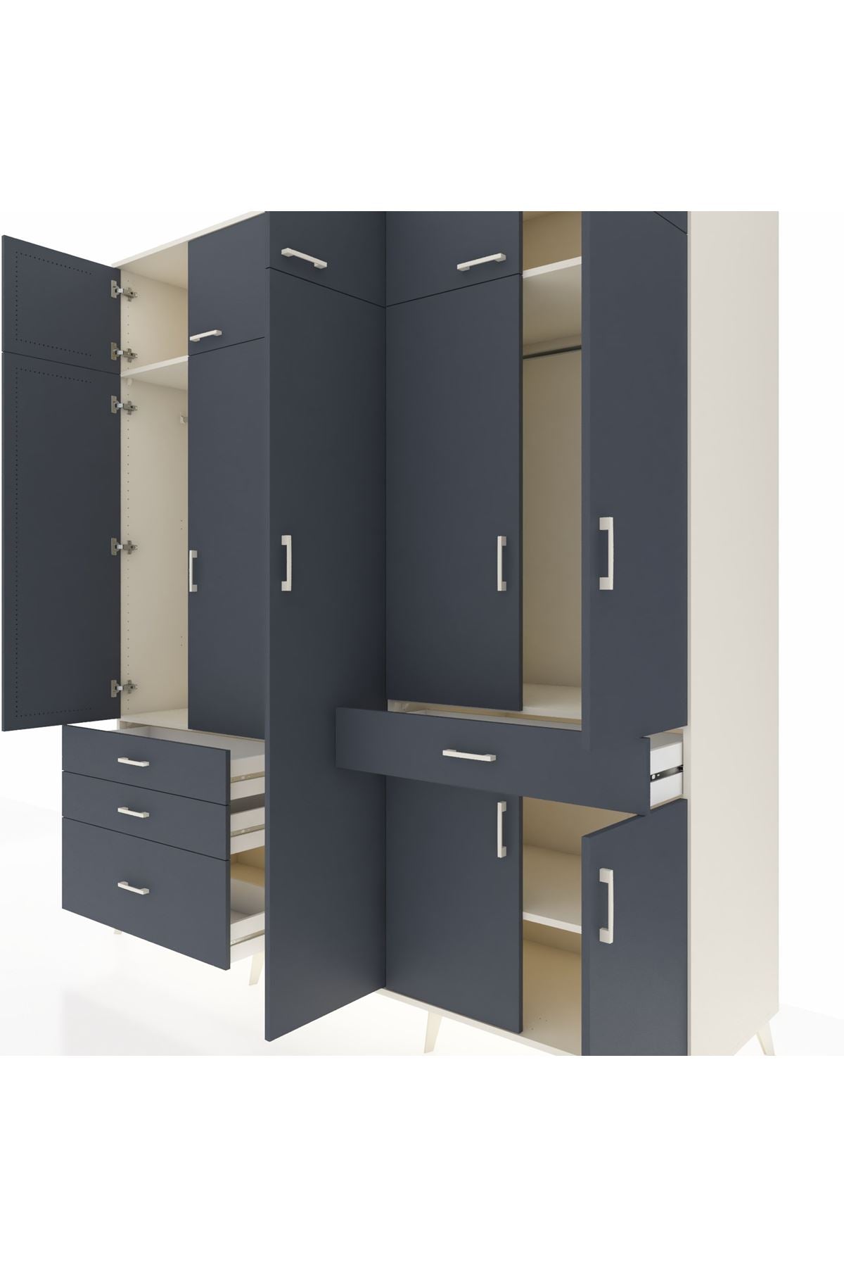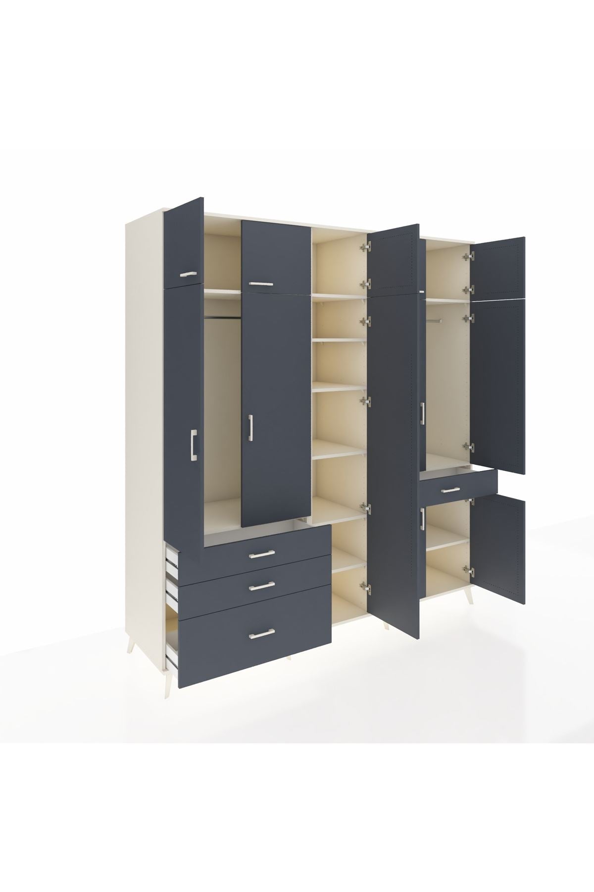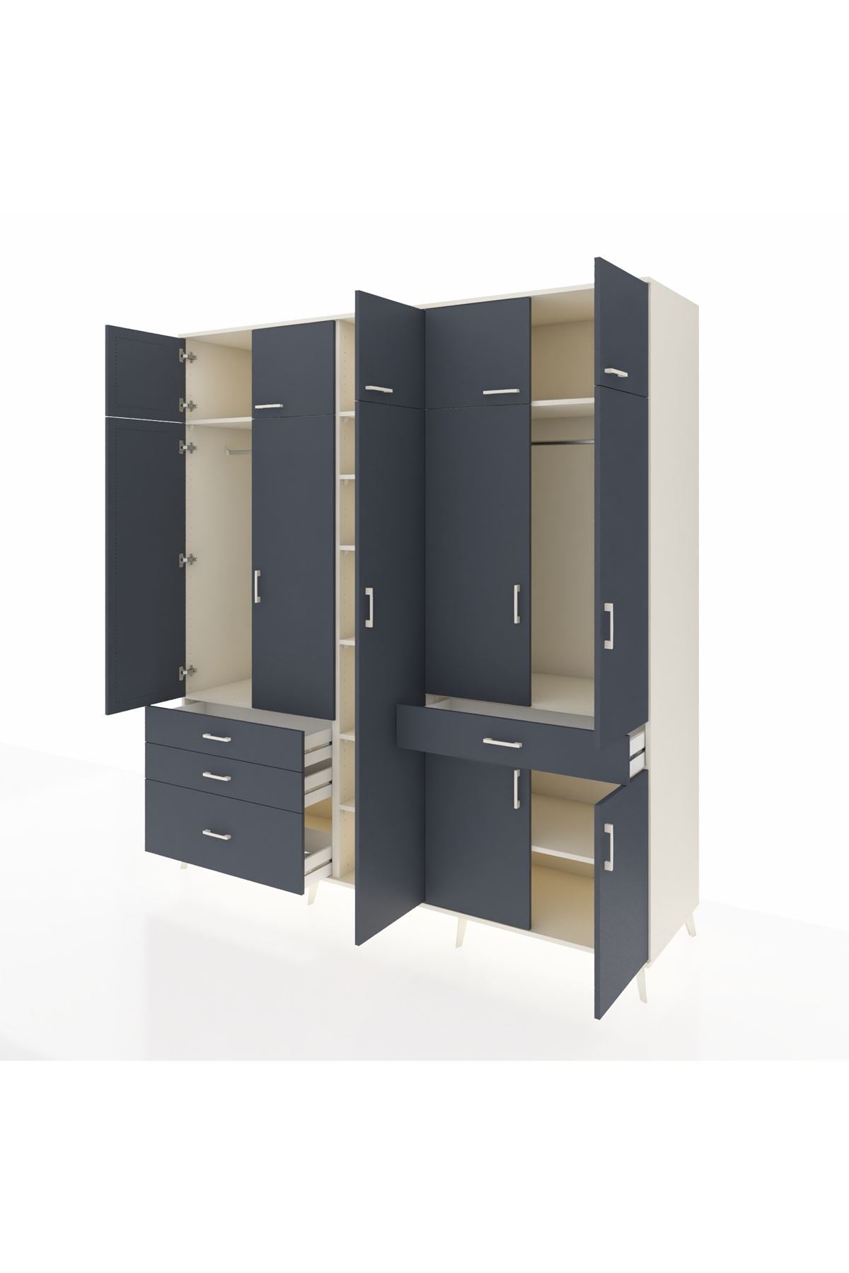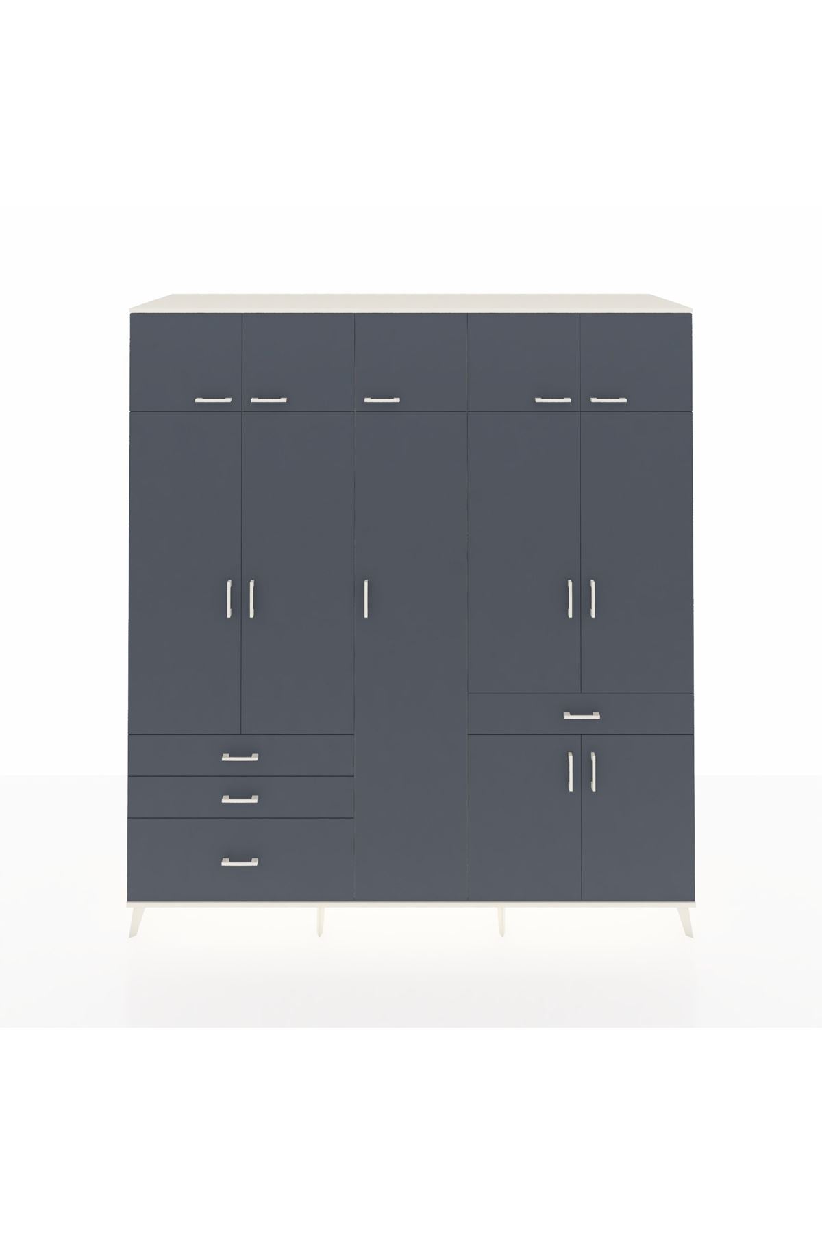 Kronos Dolap 11 Raflı 4 Çekmeceli 2 Askılı 220x59x243 Aytaşı-Antrasit/Antrasit
