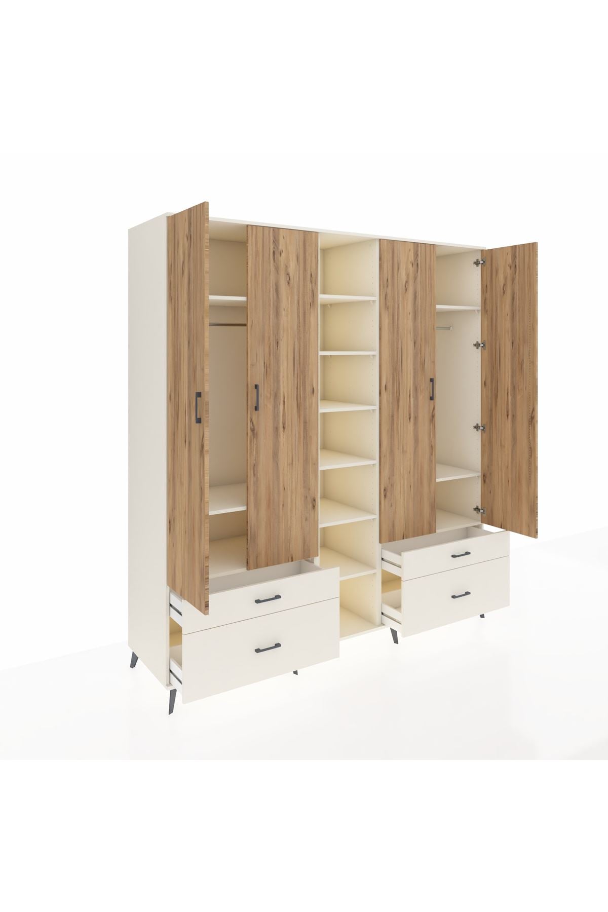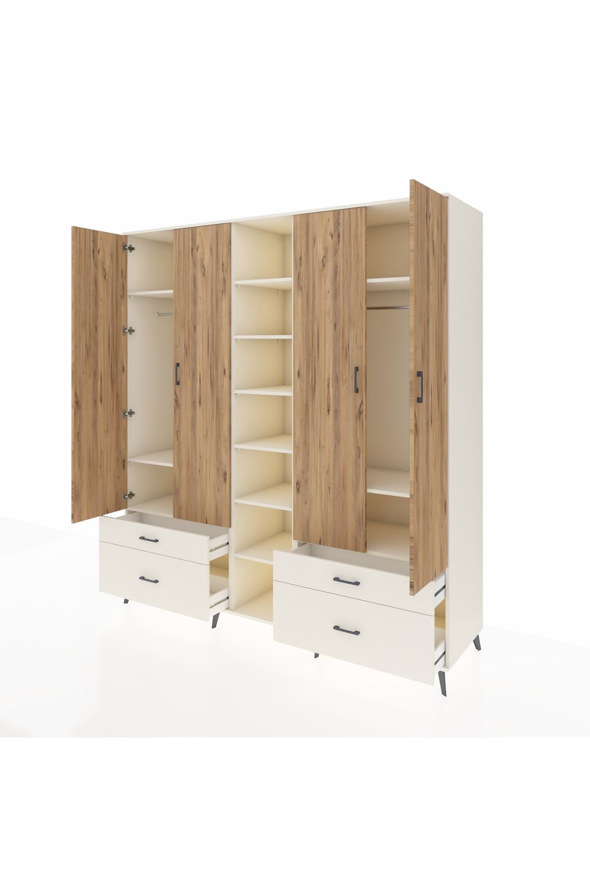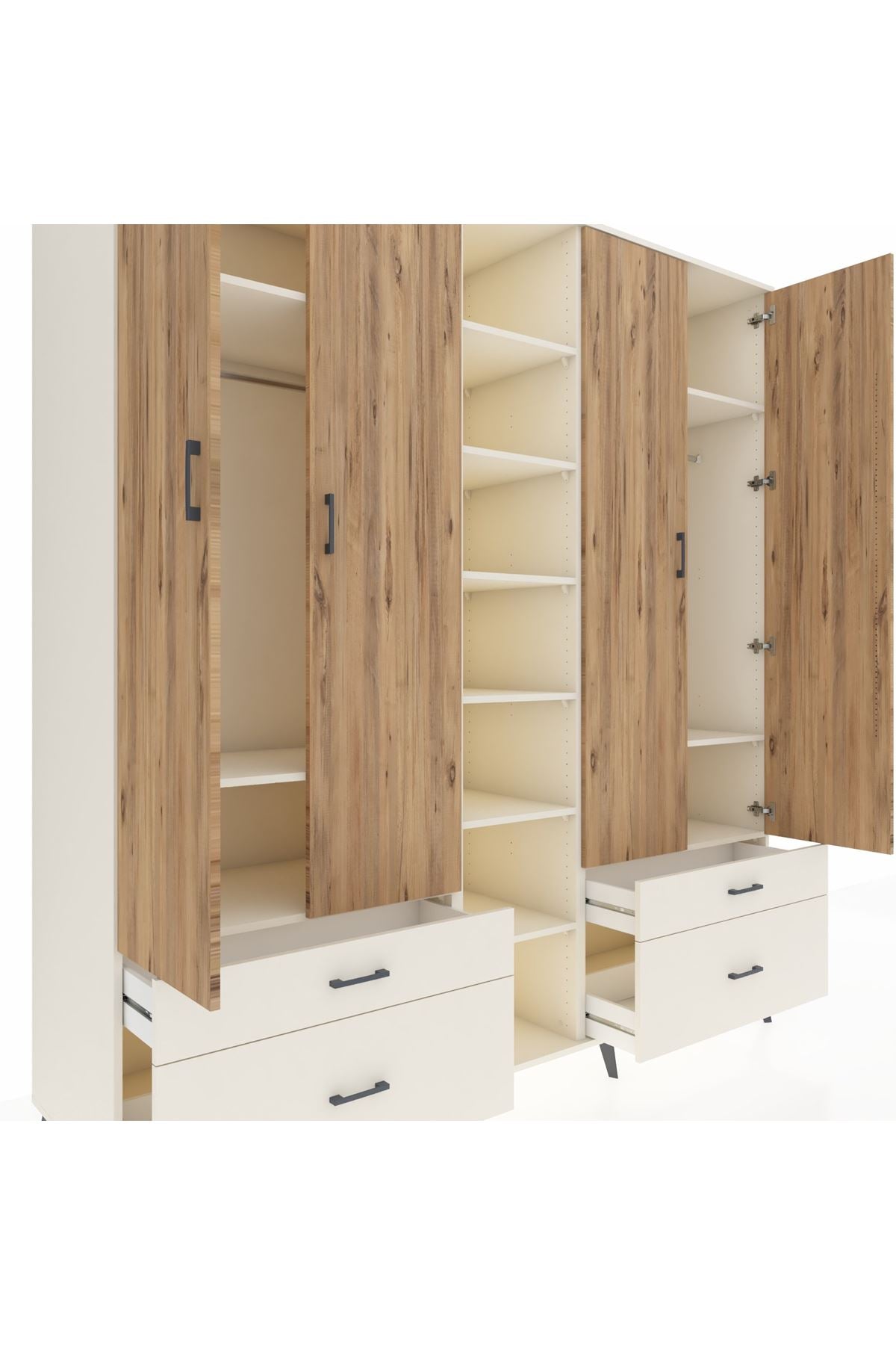 🌟 Kronos Dolap 12 Raflı 4 Çekmeceli 2 Askılı 220x59x243 Aytaşı-Çam/Aytaşı ile yaşam alanınıza zarif ve güçlü bir düzen katın; zamansız çizgileri ve doğadan ilham alan renk kombinasyonu, modern dekorunuzu zarifçe tamamlar.