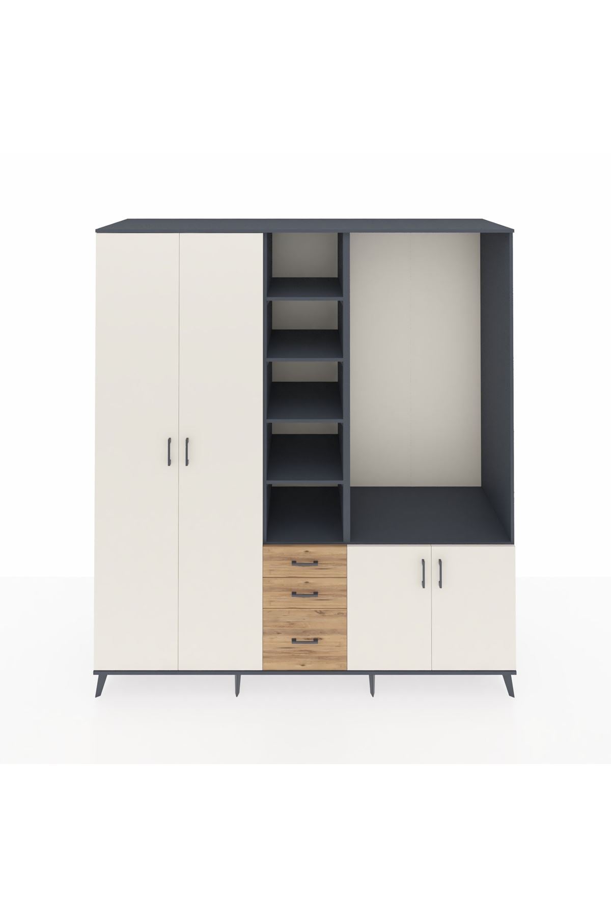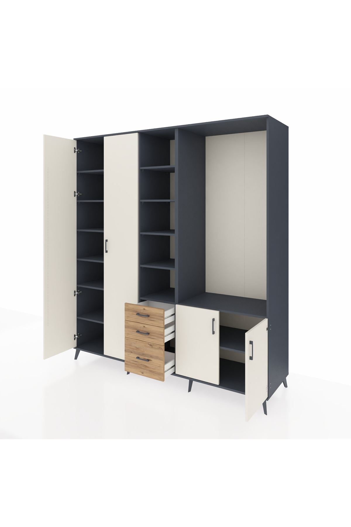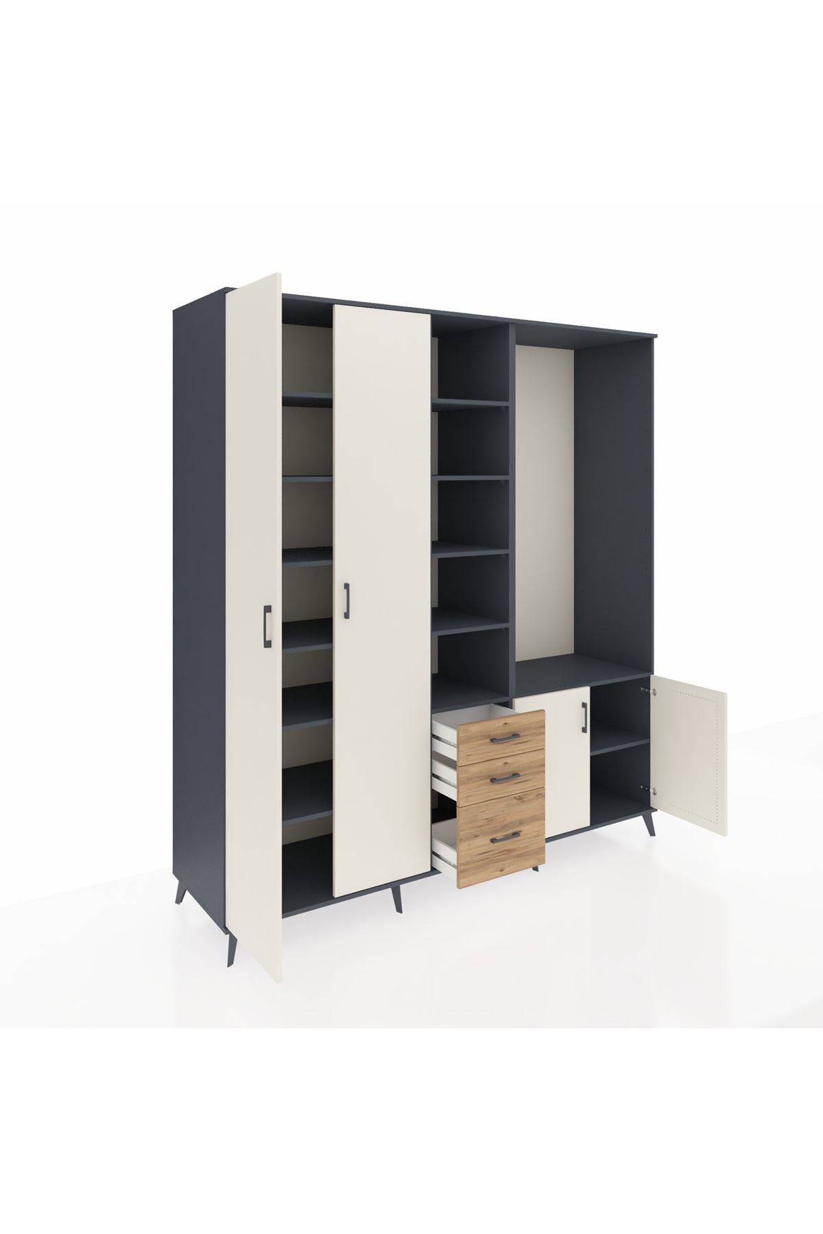 Kronos Dolap 13 Raflı 3 Çekmeceli 4 Kapaklı 220x59x243 Antrasit-Aytaşı/Çam