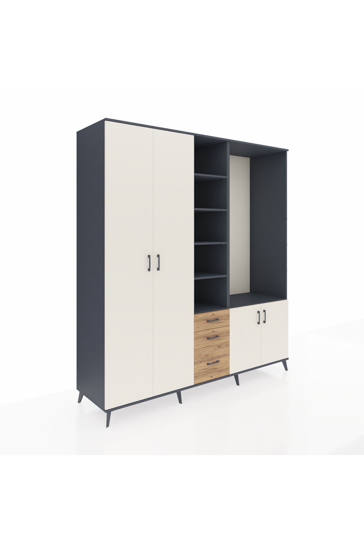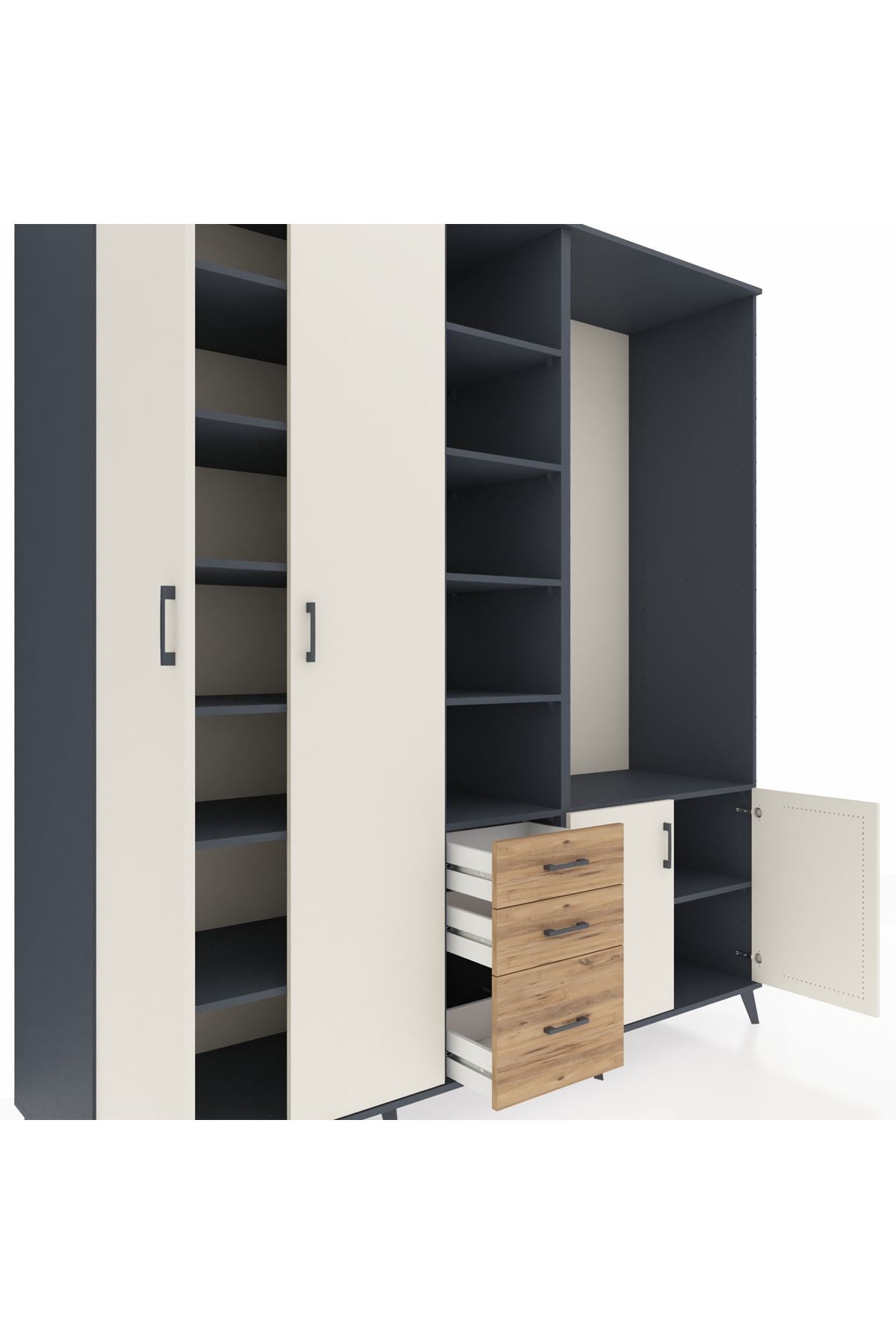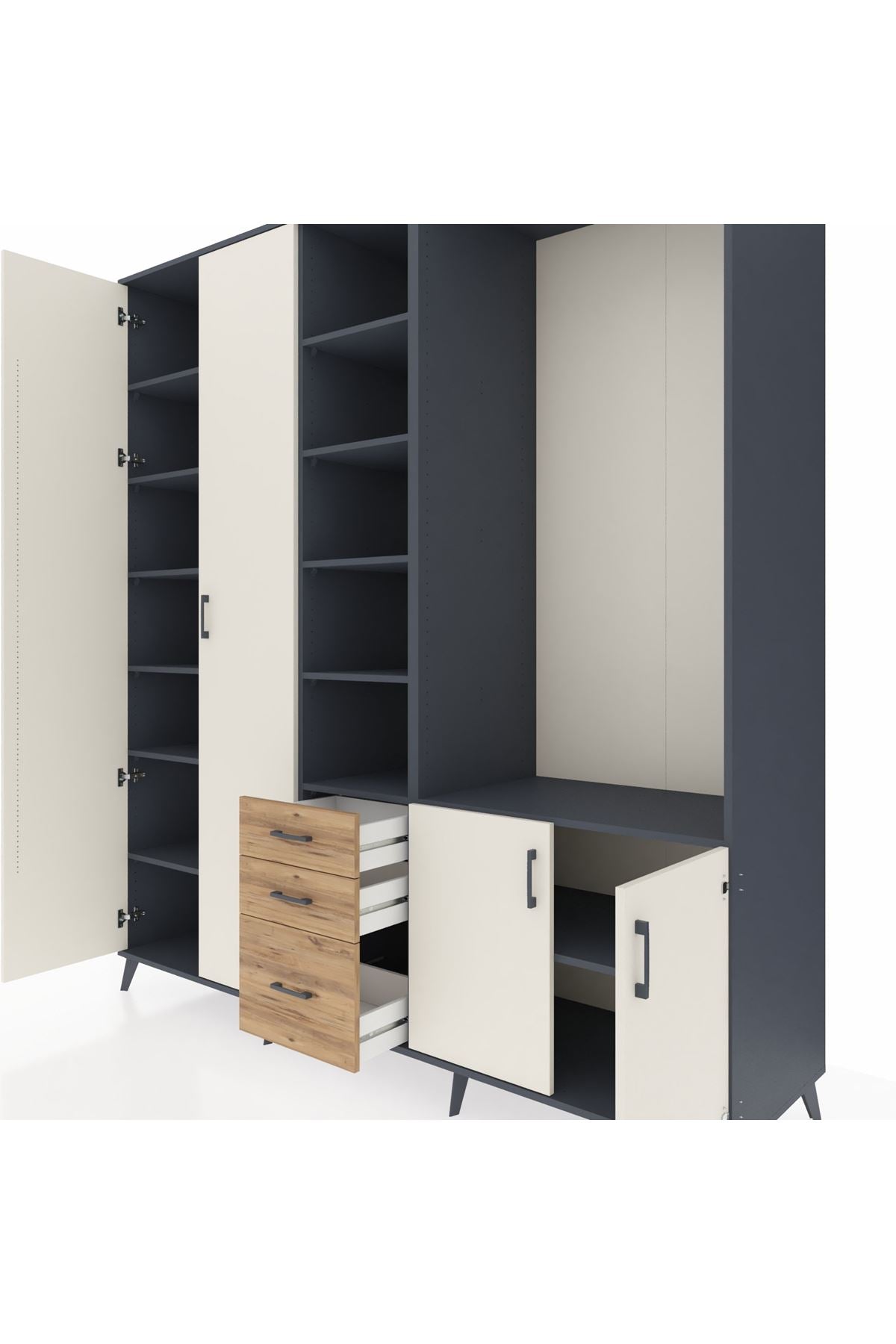 Kronos Dolap 13 Raflı 3 Çekmeceli 4 Kapaklı 220x59x243 Antrasit-Aytaşı/Çam