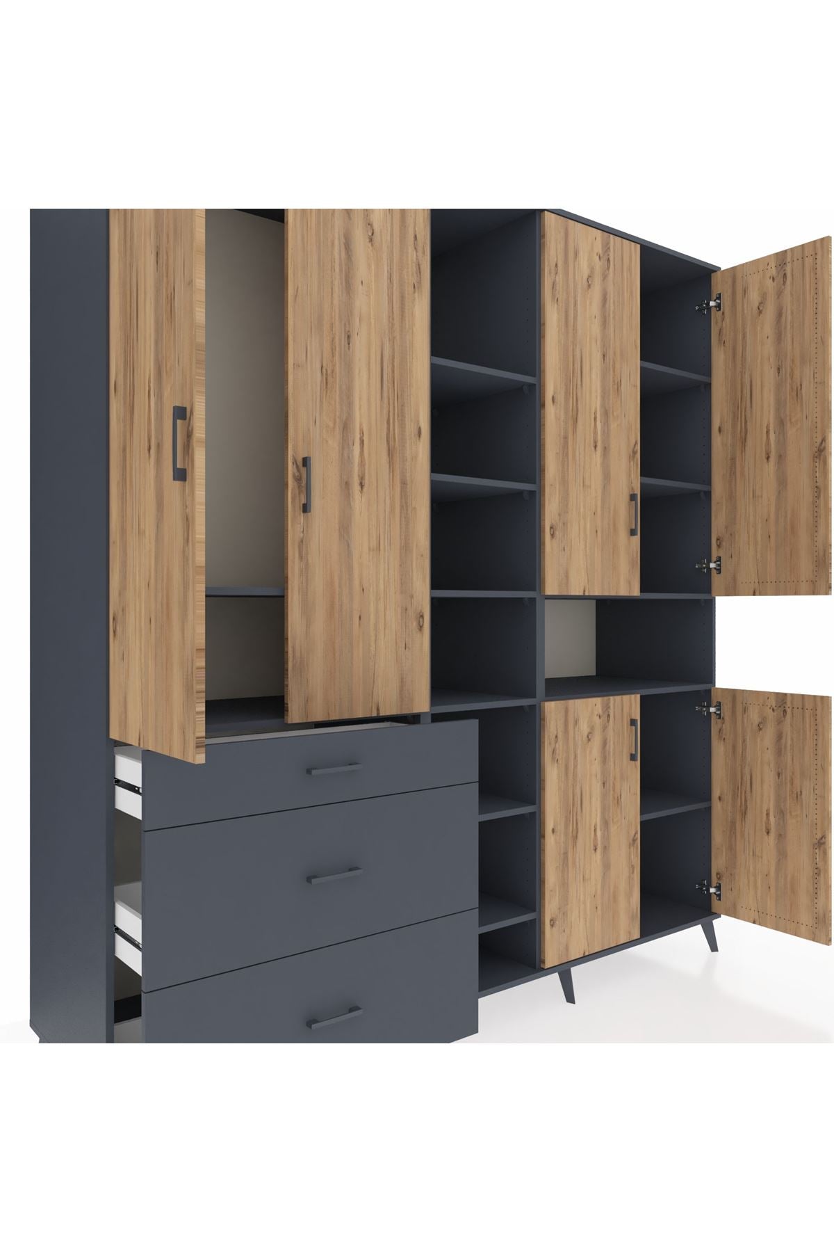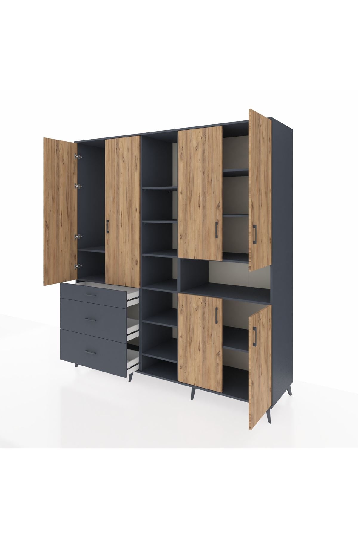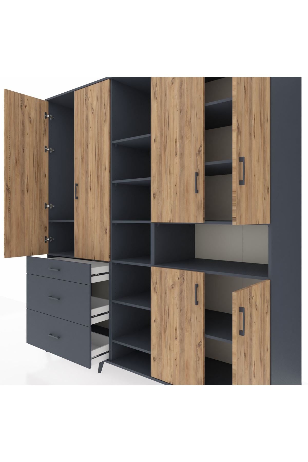 Kronos Dolap 13 Raflı 3 Çekmeceli 6 Kapaklı 220x59x243 Antrasit-Çam/Antrasit