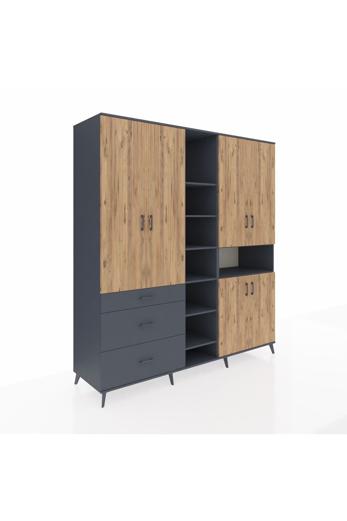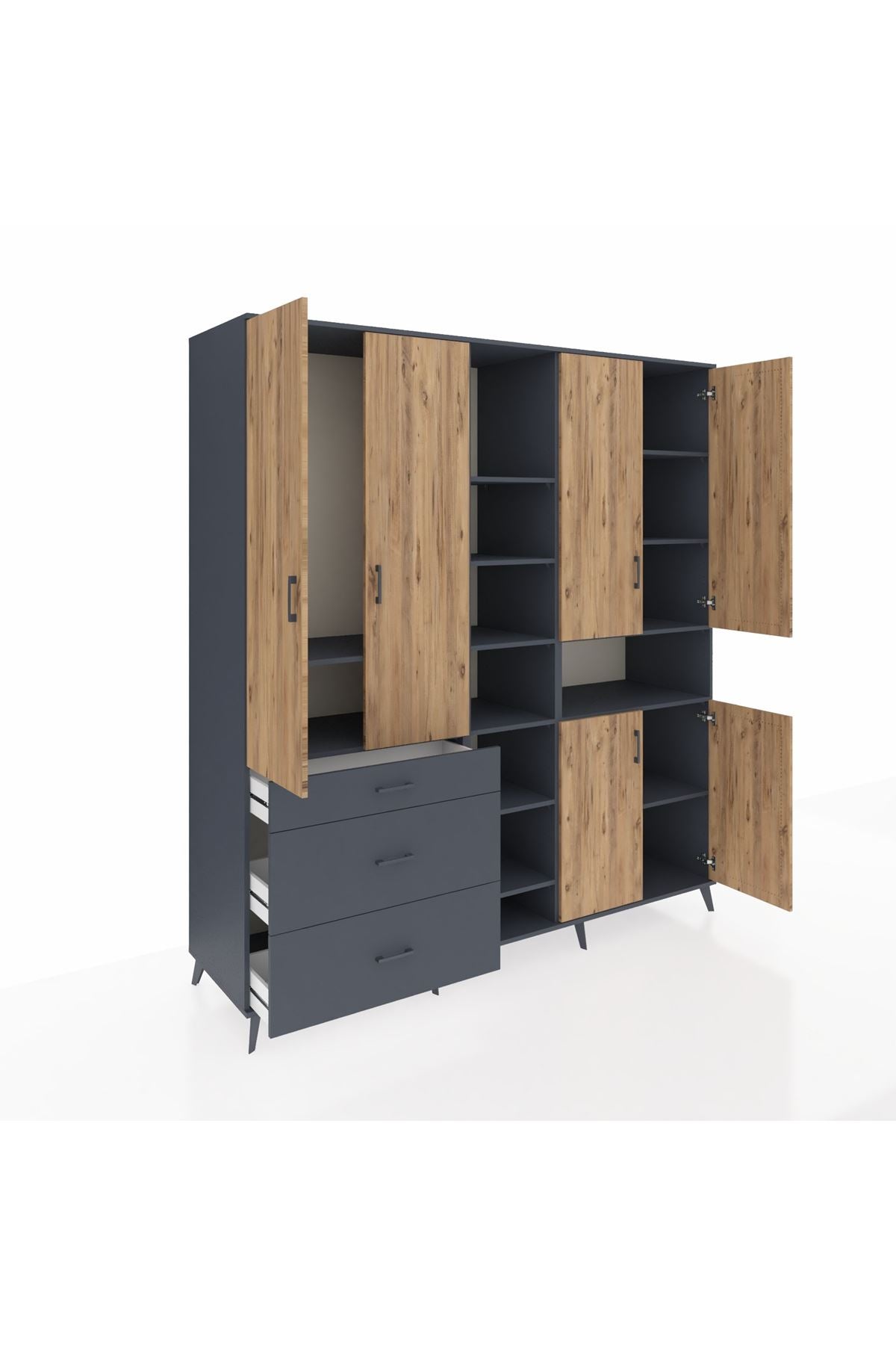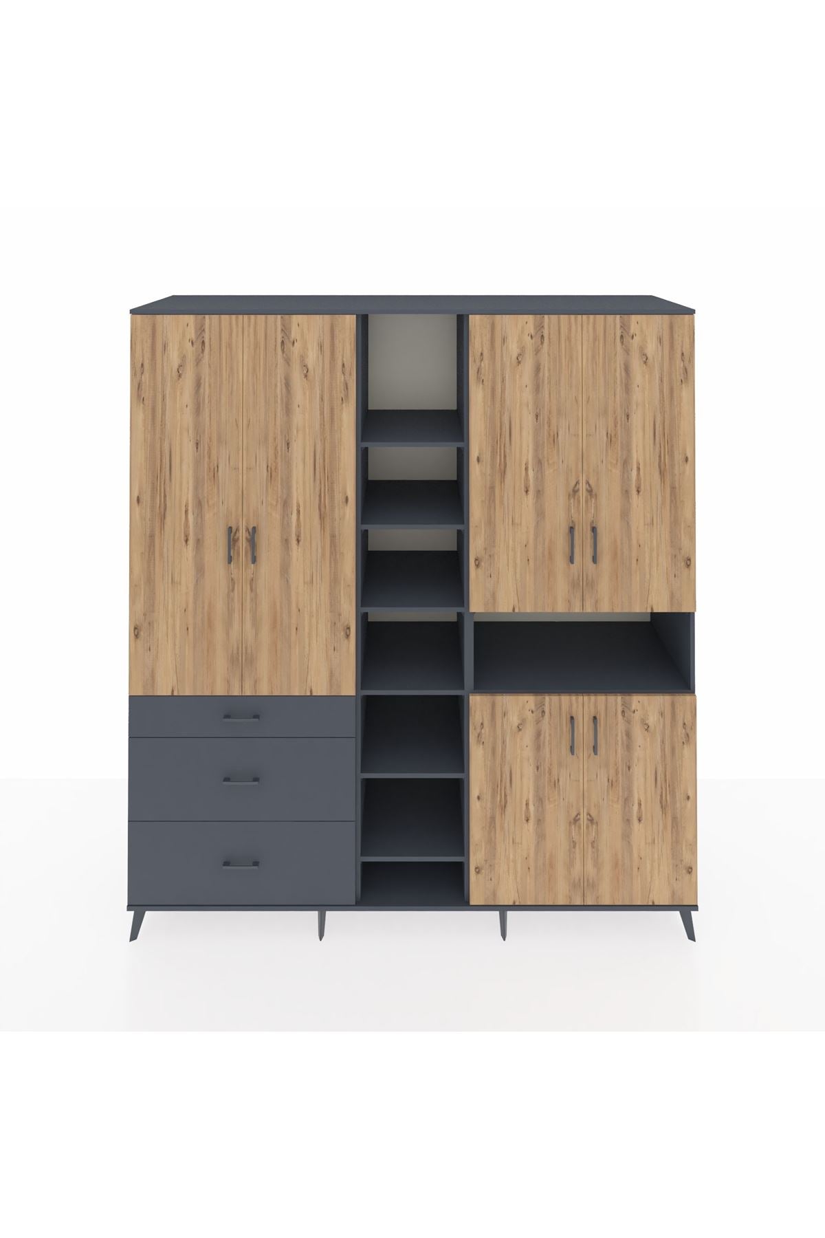 Kronos Dolap 13 Raflı 3 Çekmeceli 6 Kapaklı 220x59x243 Antrasit-Çam/Antrasit