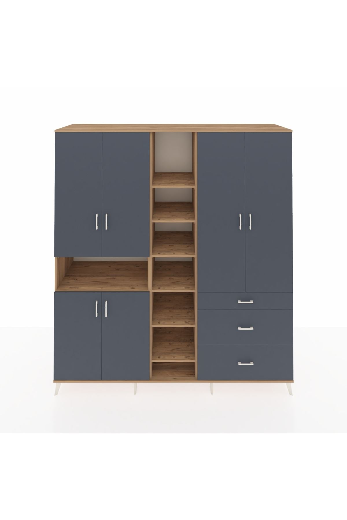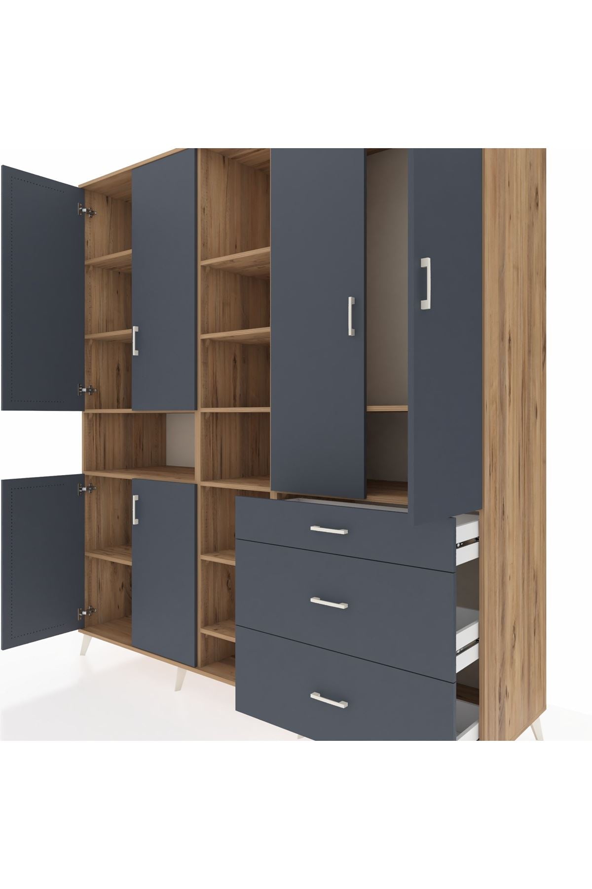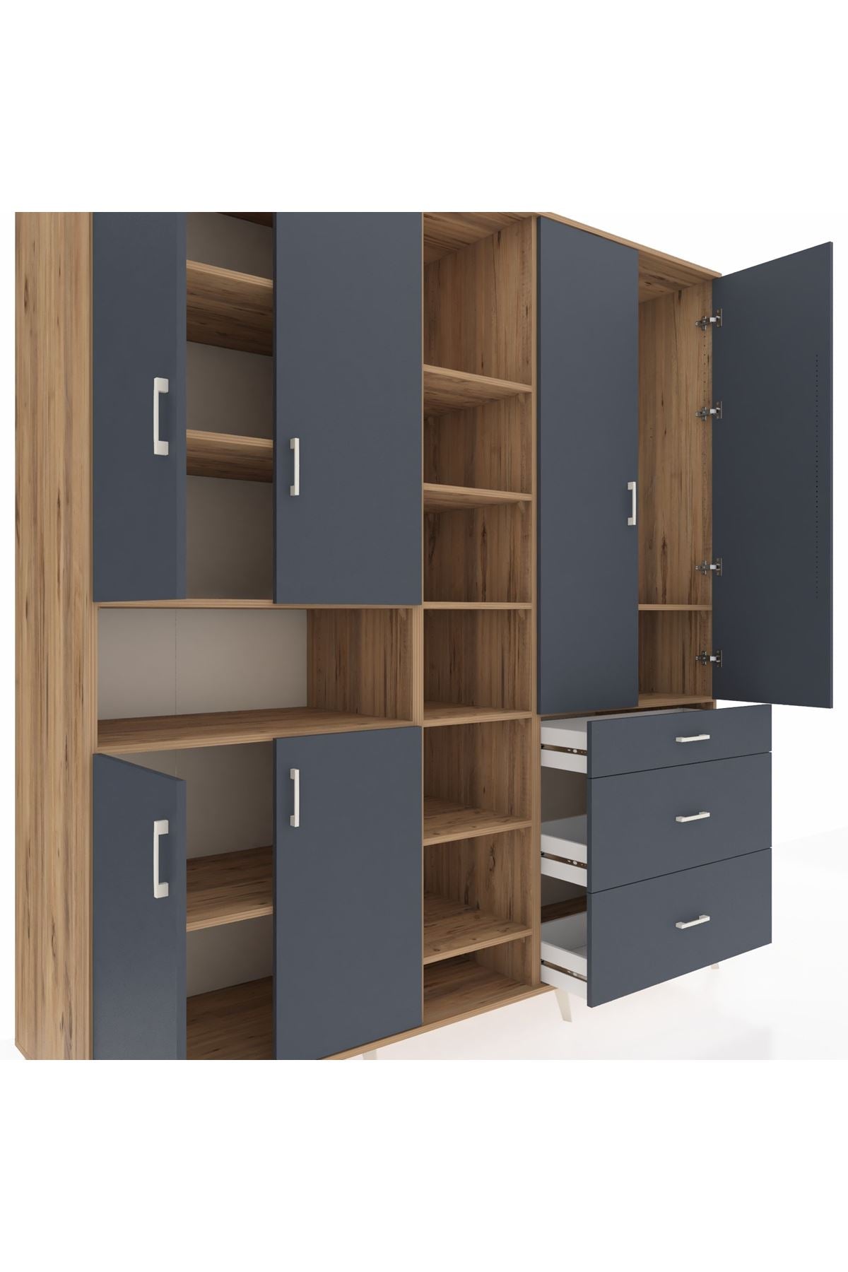Kronos Dolap 13 Raflı 3 Çekmeceli 6 Kapaklı 220x59x243 Çam-Antrasit/Antrasit