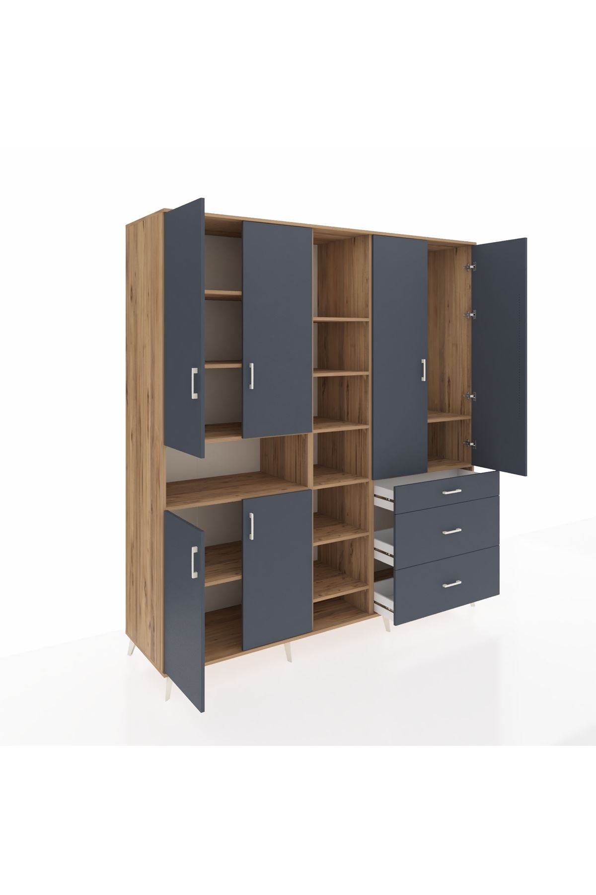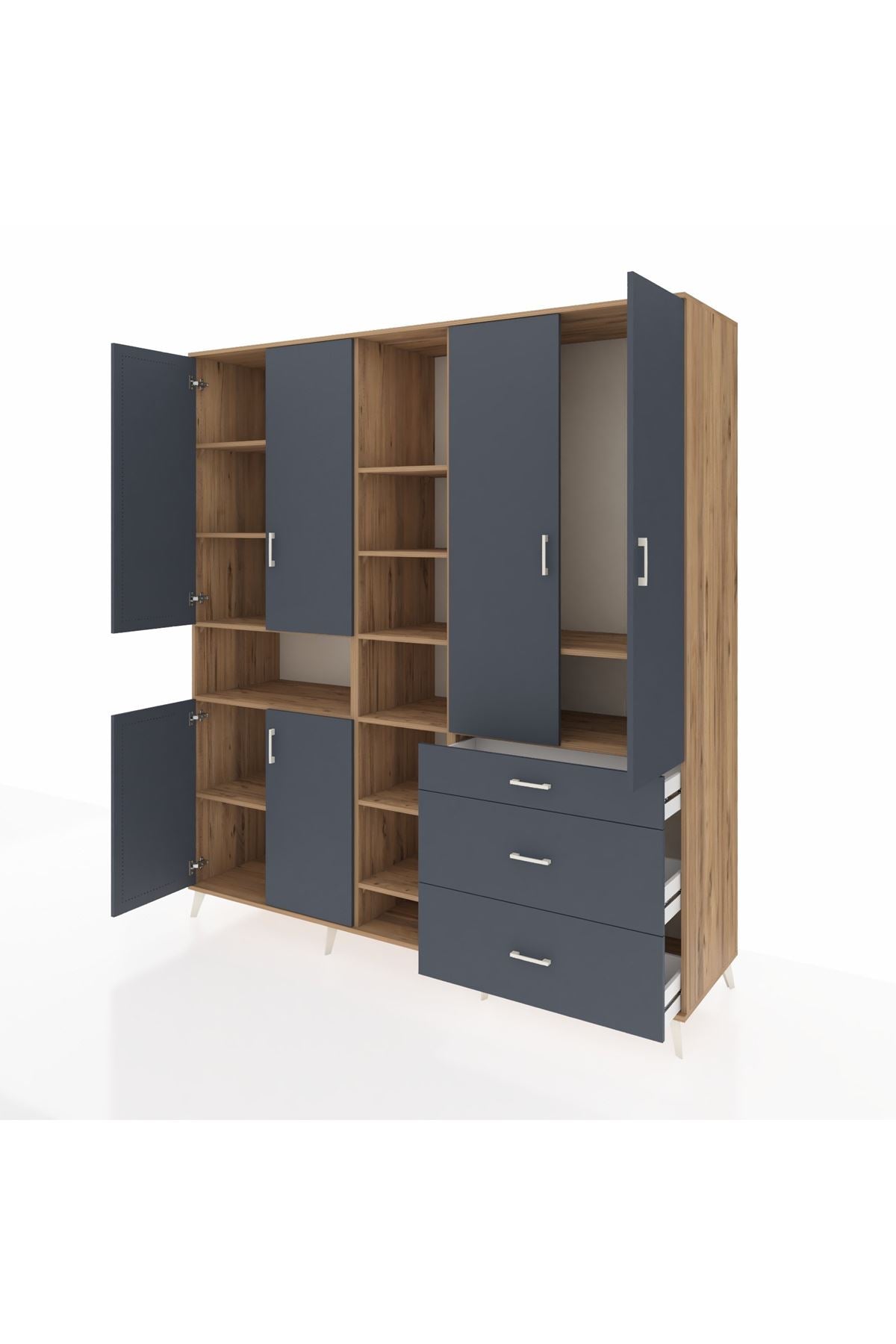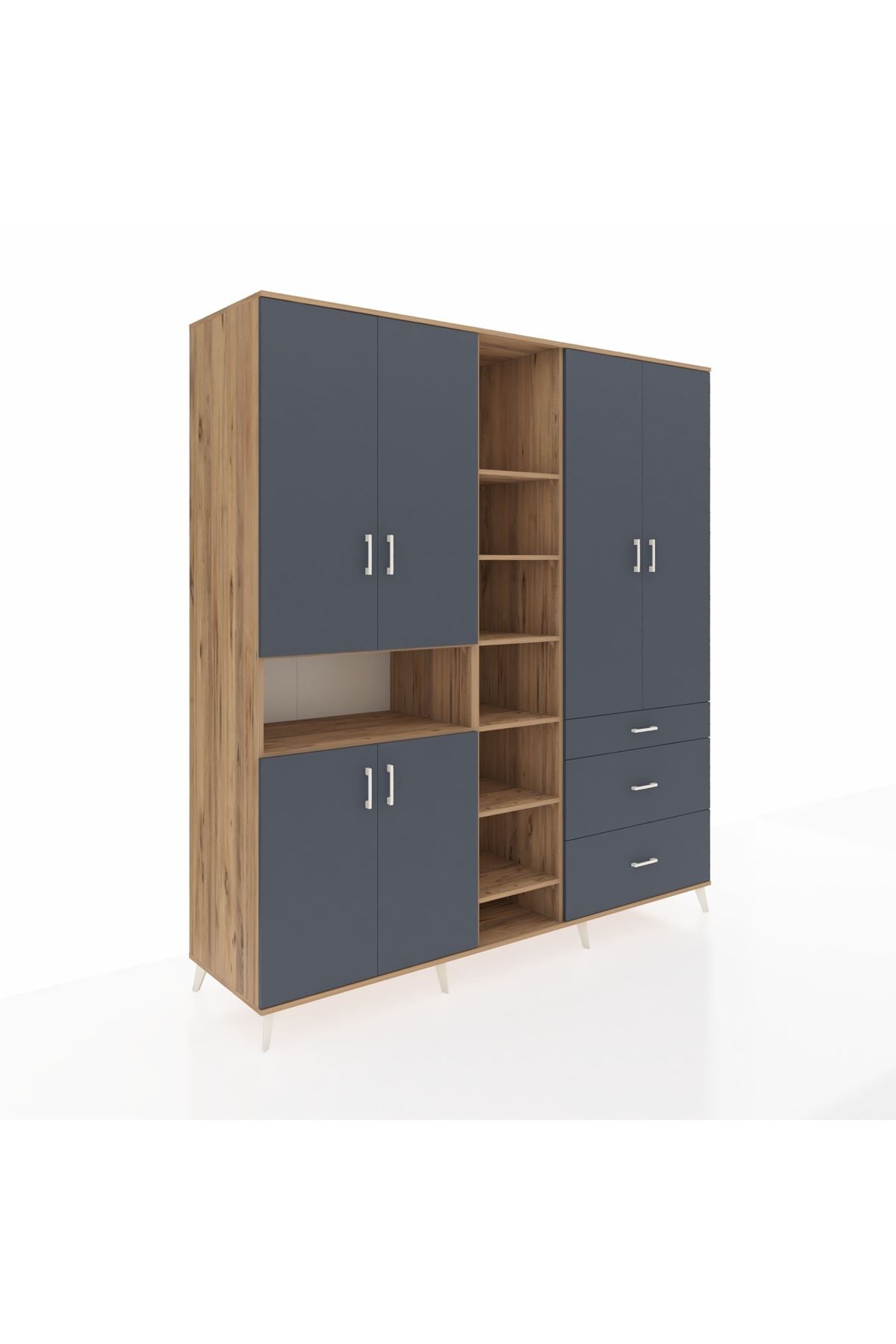Kronos Dolap 13 Raflı 3 Çekmeceli 6 Kapaklı 220x59x243 Çam-Antrasit/Antrasit