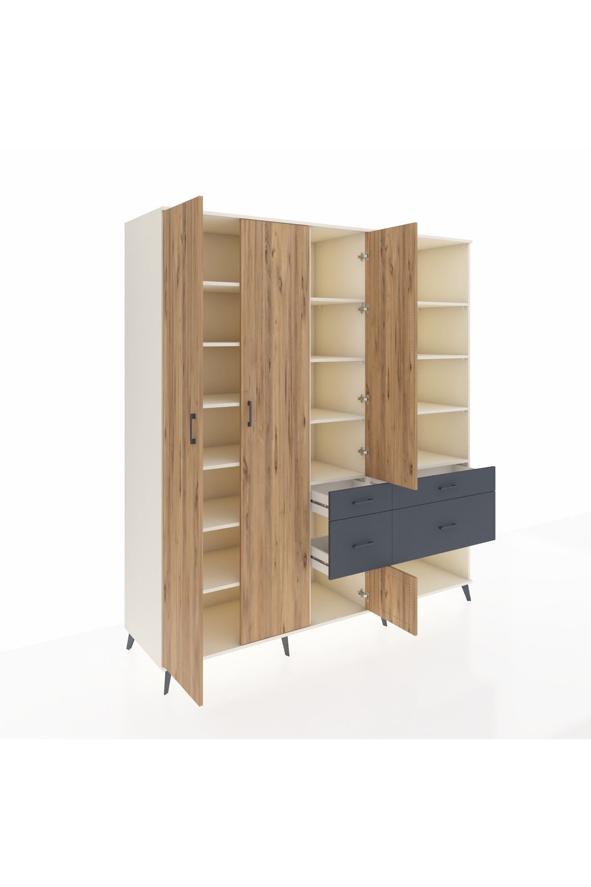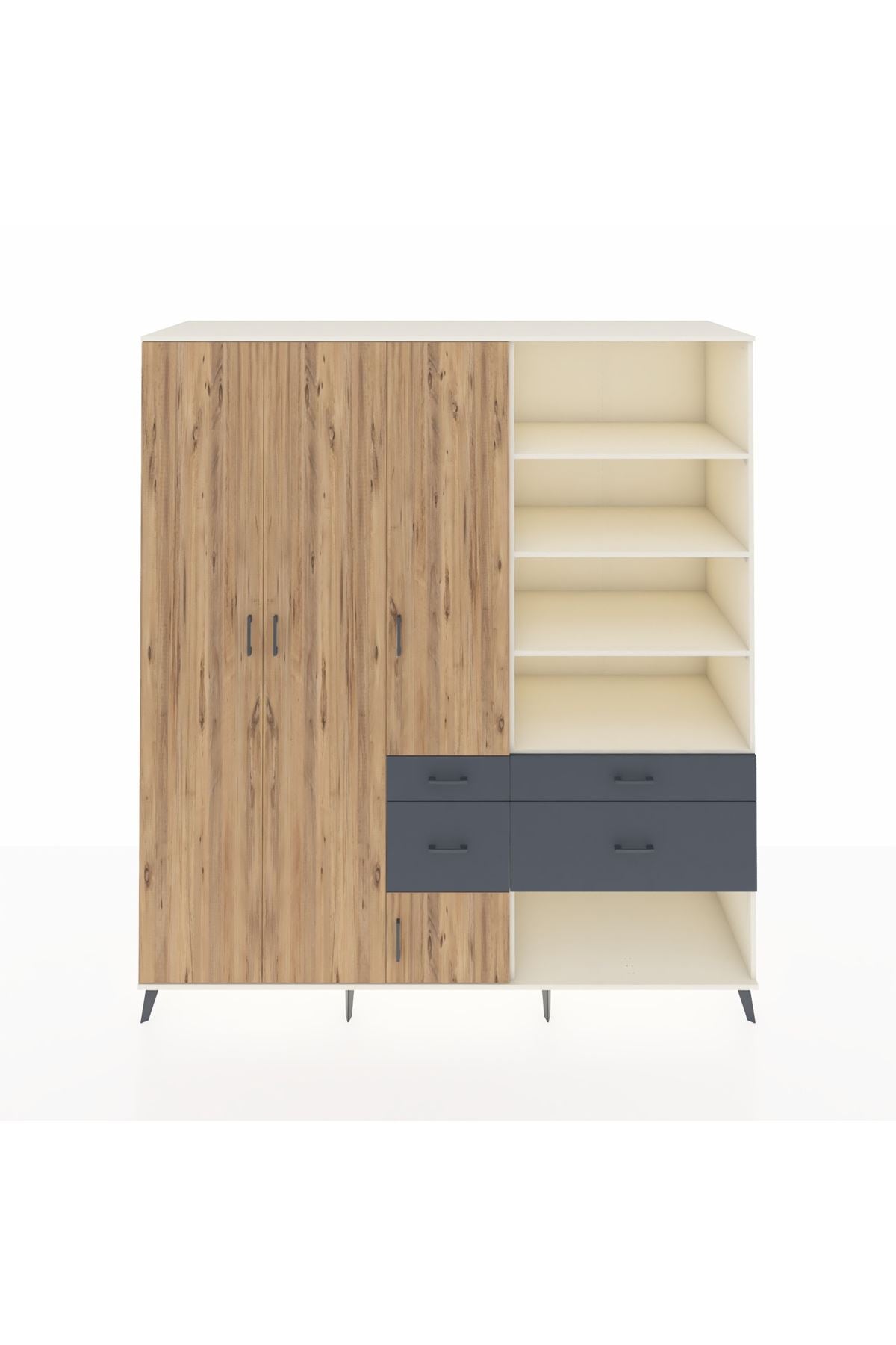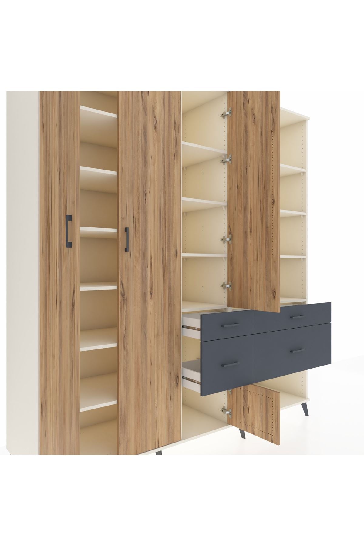 Kronos Dolap 14 Raflı 4 Çekmeceli 4 Kapaklı 220x59x243 Antrasit-Çam/Antrasit