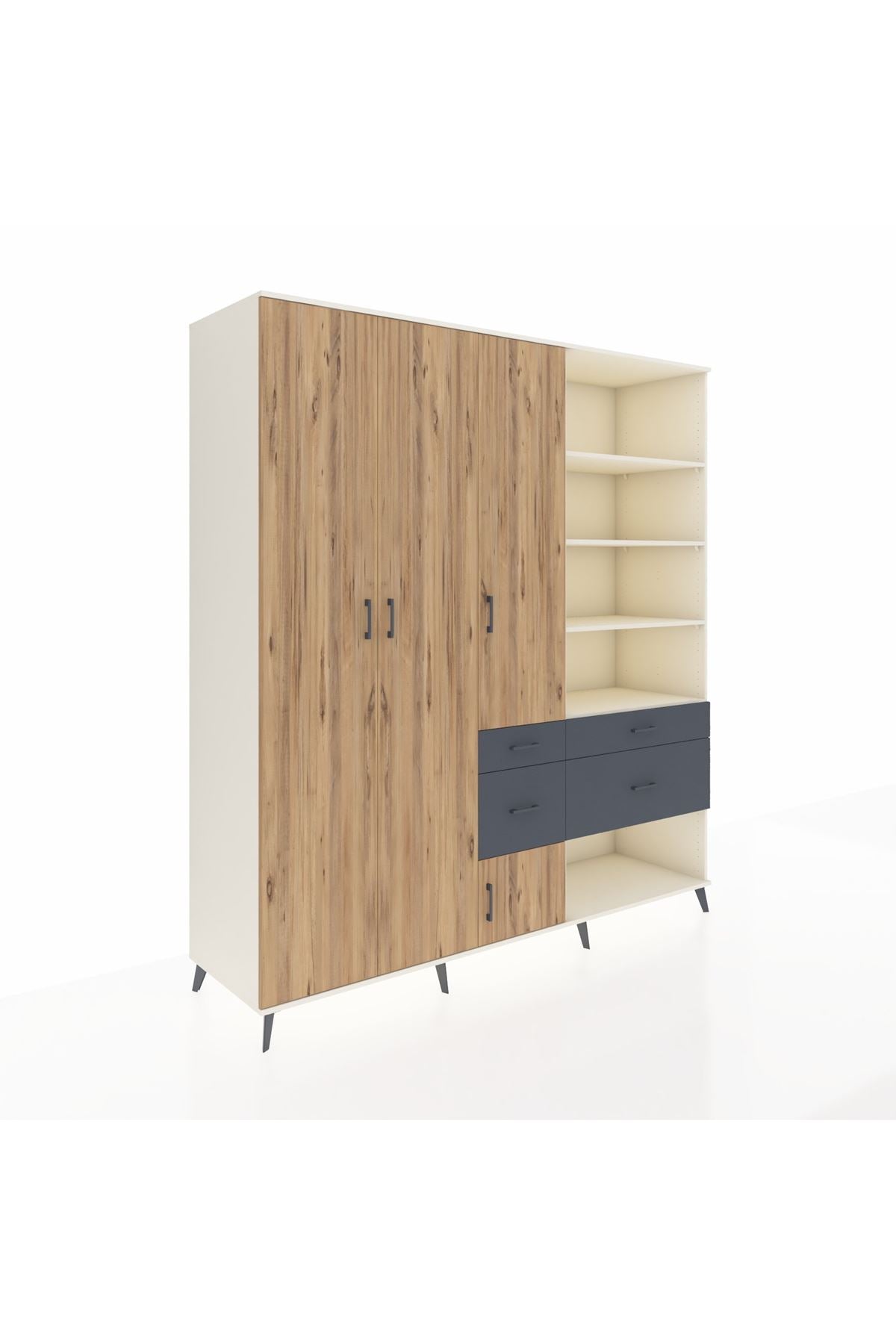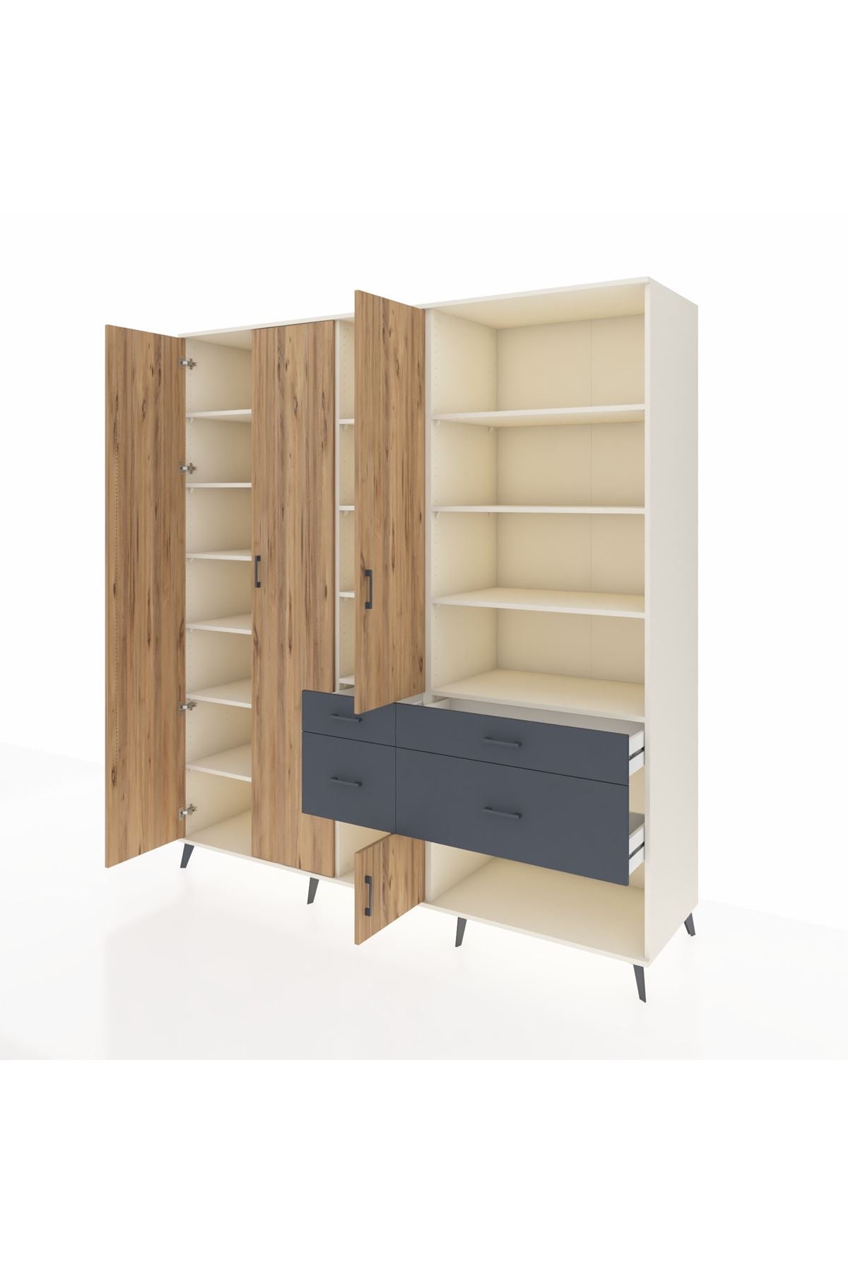 Kronos Dolap 14 Raflı 4 Çekmeceli 4 Kapaklı 220x59x243 Aytaşı-Çam/Antrasit