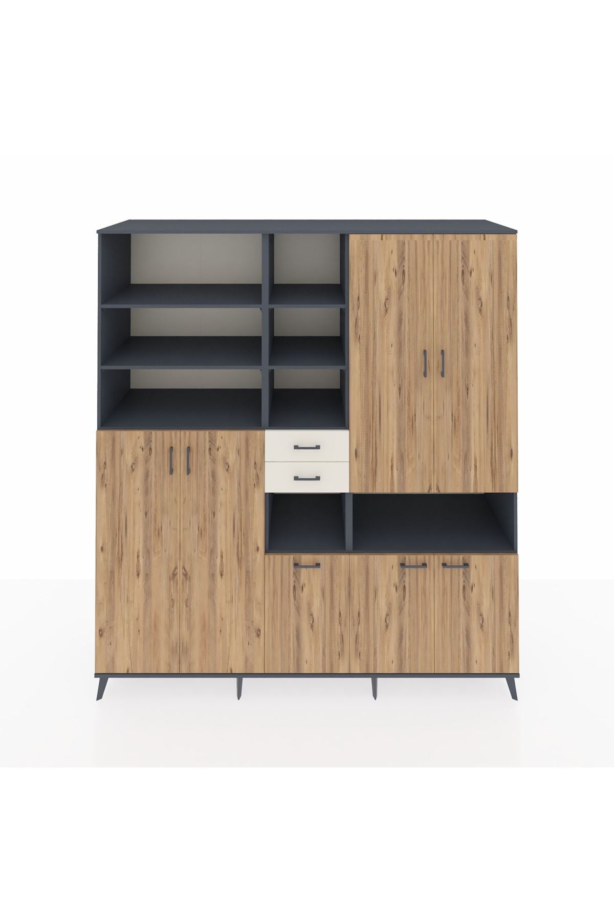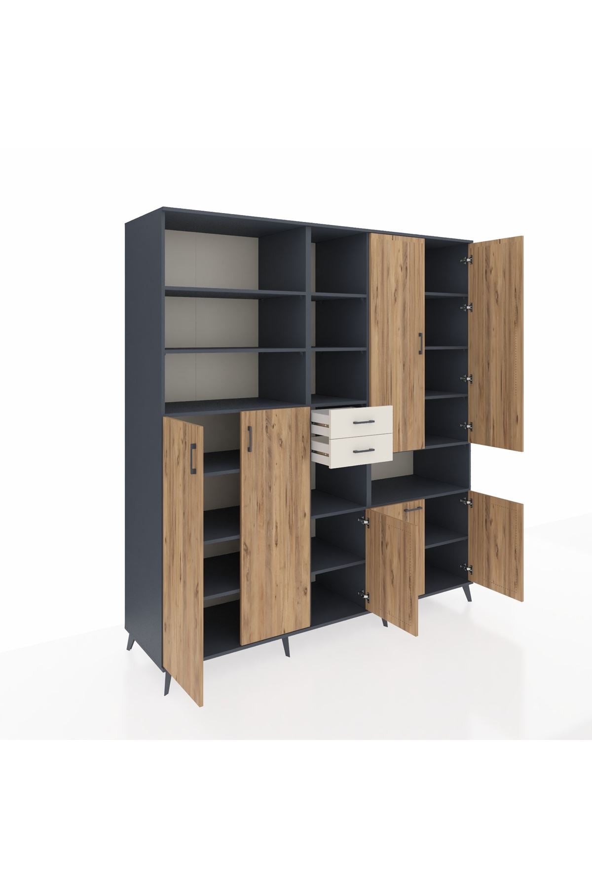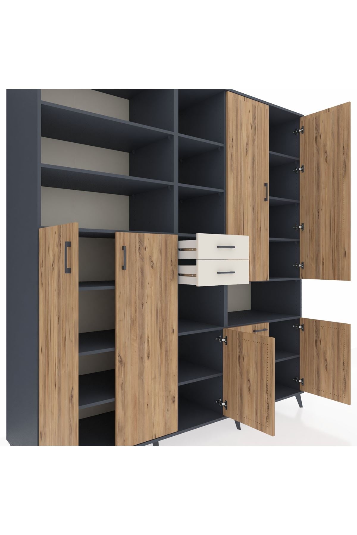 Kronos Dolap 17 Raflı 2 Çekmeceli 7 Kapaklı 220x59x243 Antrasit-Çam/Aytaşı