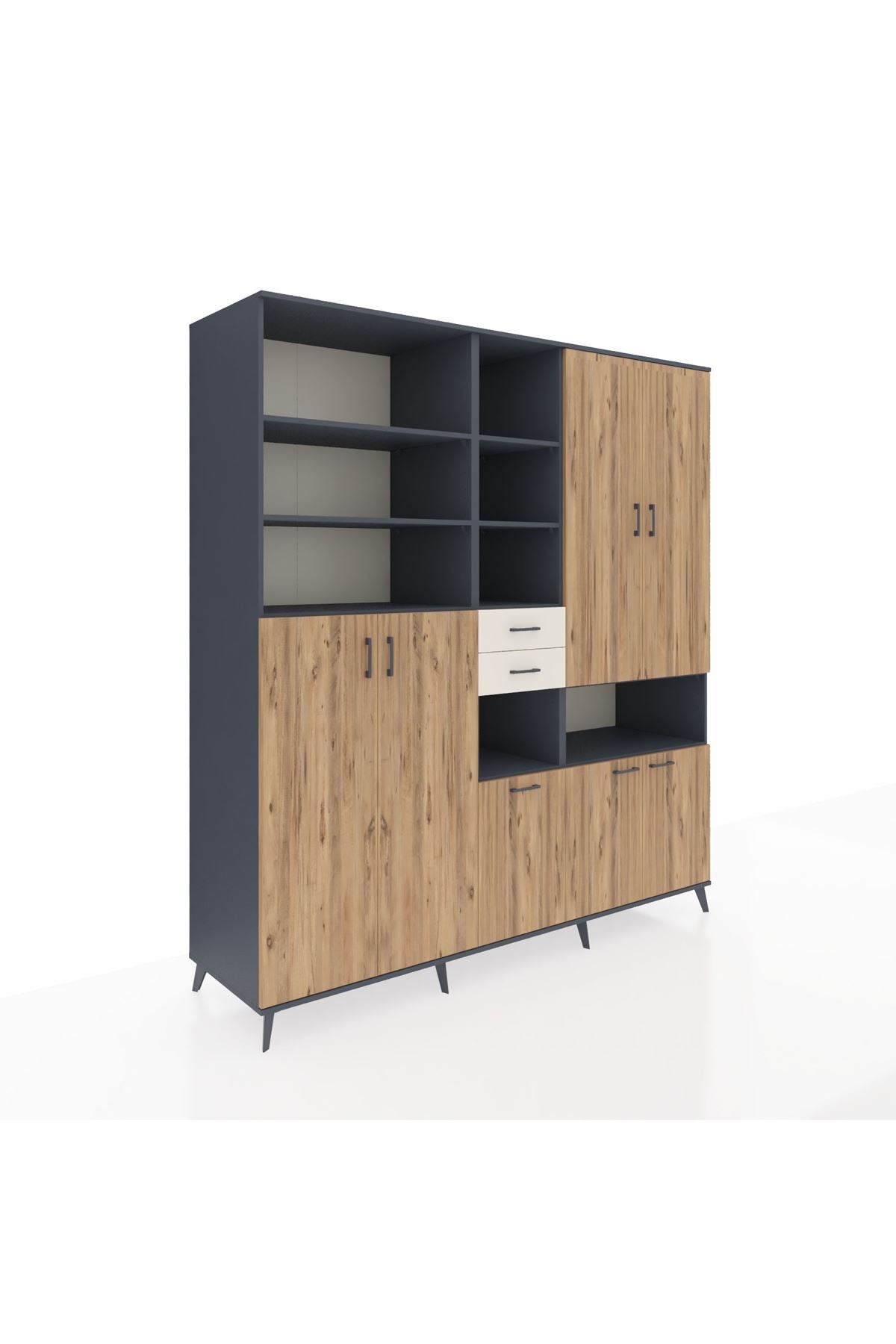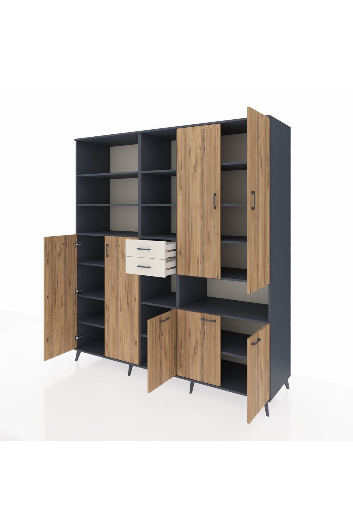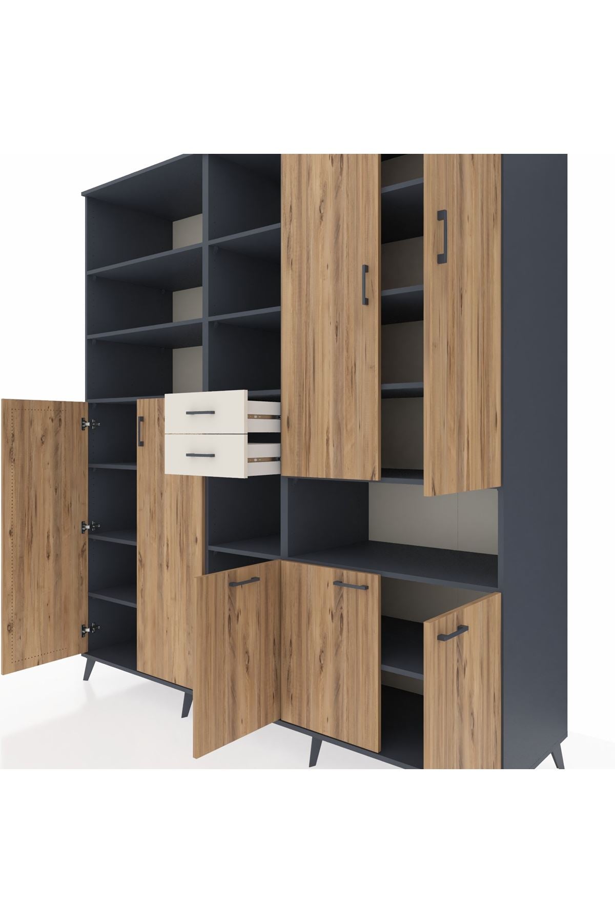 Kronos Dolap 17 Raflı 2 Çekmeceli 7 Kapaklı 220x59x243 Antrasit-Çam/Aytaşı