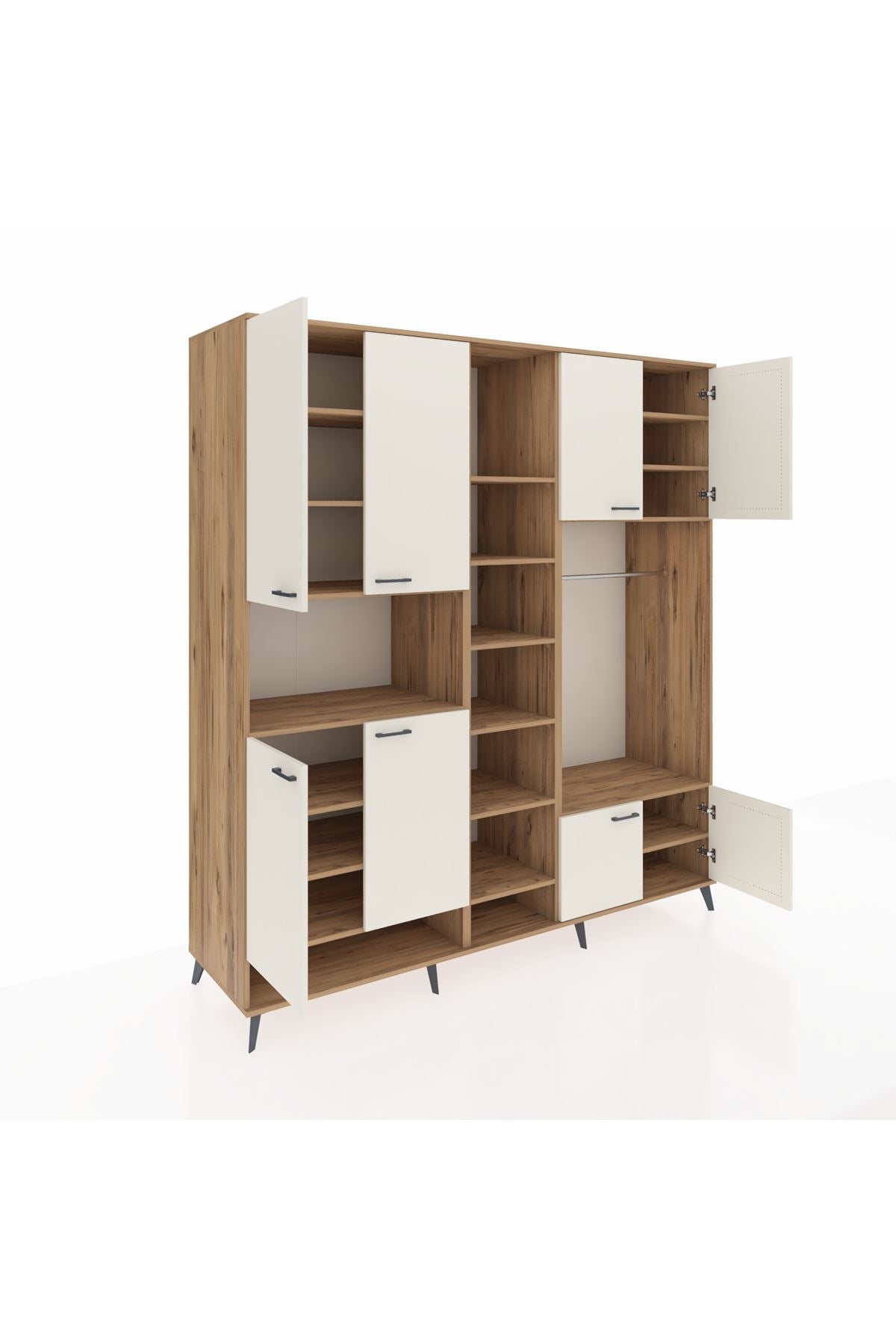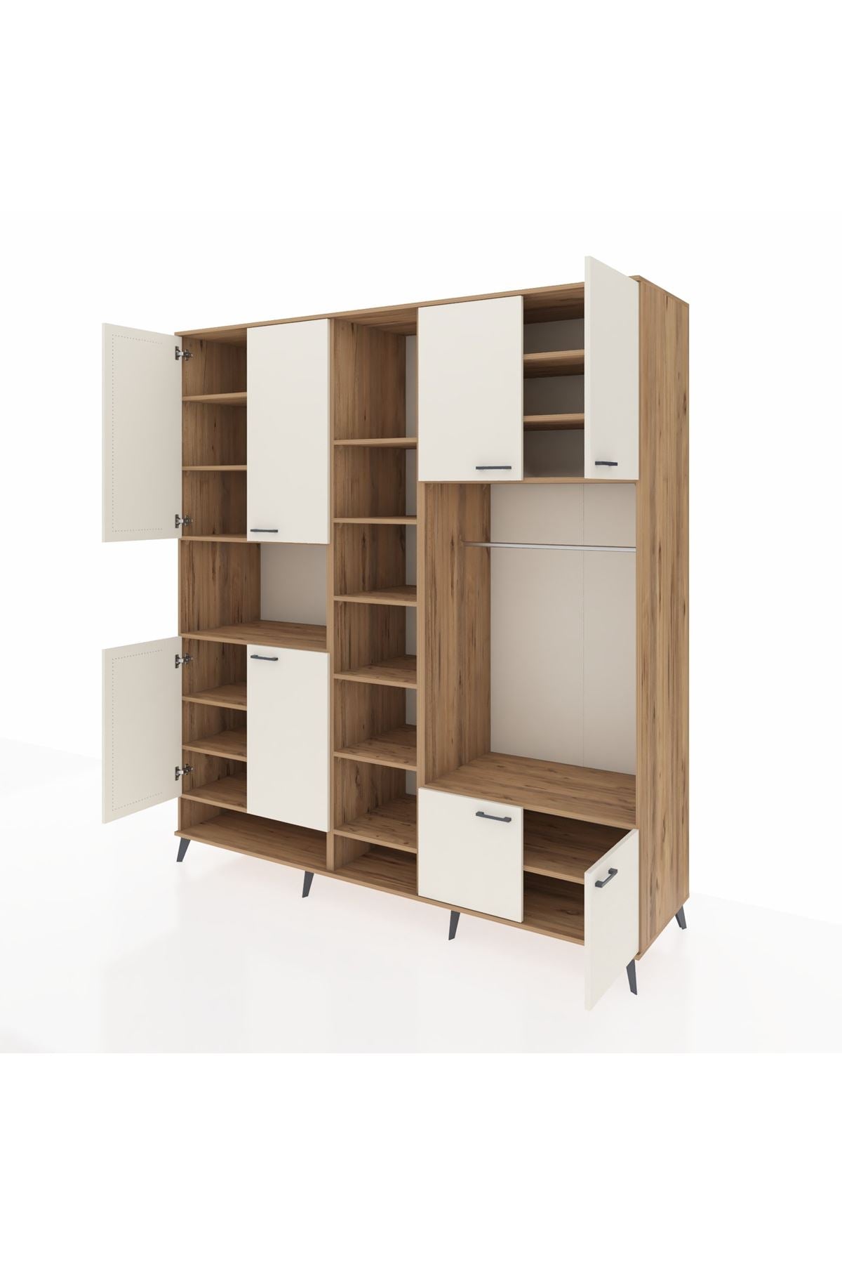 🏗️ Dolabın yapımında kullanılan metal ayaklar ve kulplar, dayanıklılığı ve şıklığı pekiştirirken, birinci sınıf Kastamonu Entegre suntalam ile sağlamlık ön planda tutuluyor. 1.2 mm kenar bandı ile yapı daha da güçlendirilmiştir.