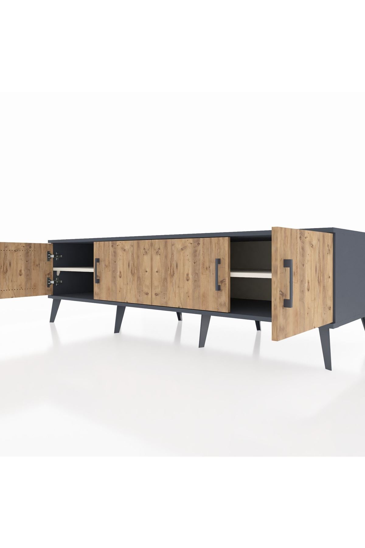 Kronos TV Ünitesi 2 Raflı 4 Kapaklı 176x59x51 Antrasit-Çam/Aytaşı