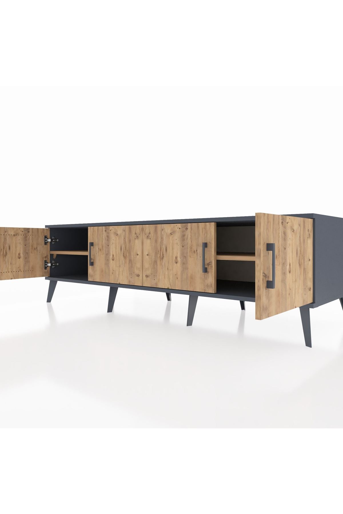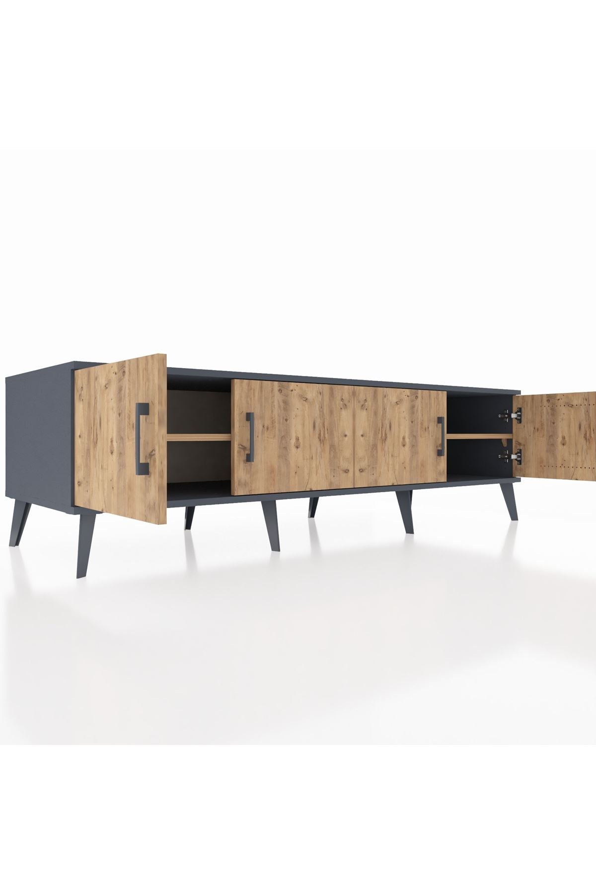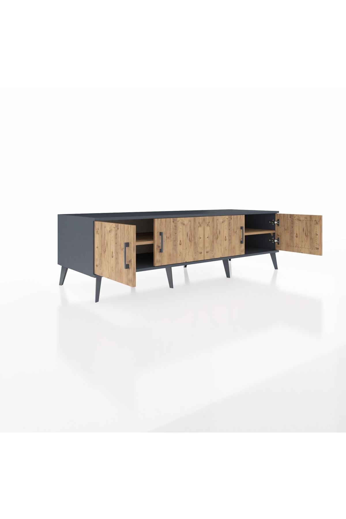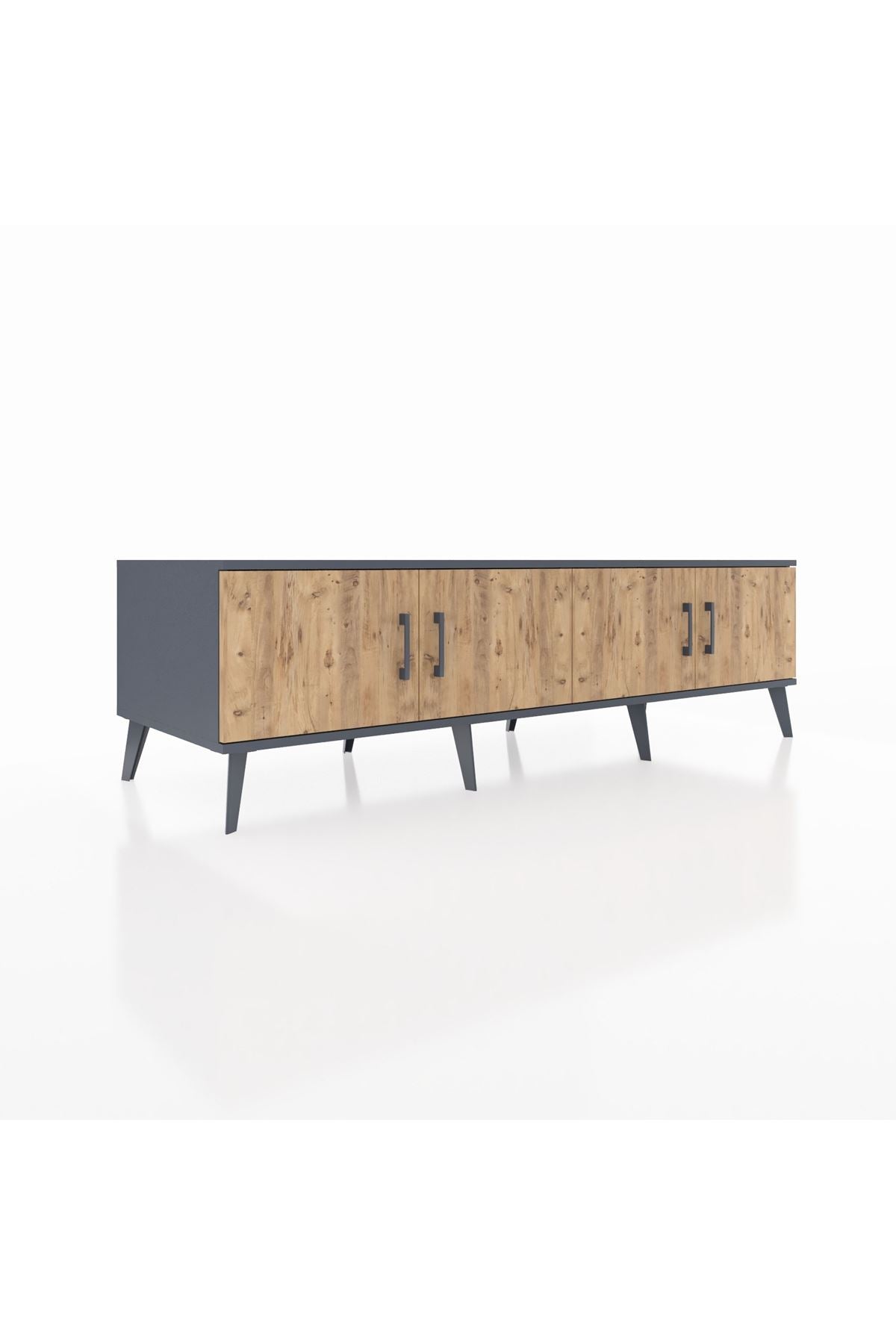 Kronos TV Ünitesi 2 Raflı 4 Kapaklı 176x59x51 Antrasit-Çam/Çam