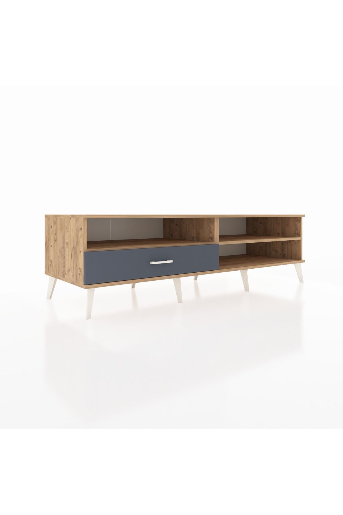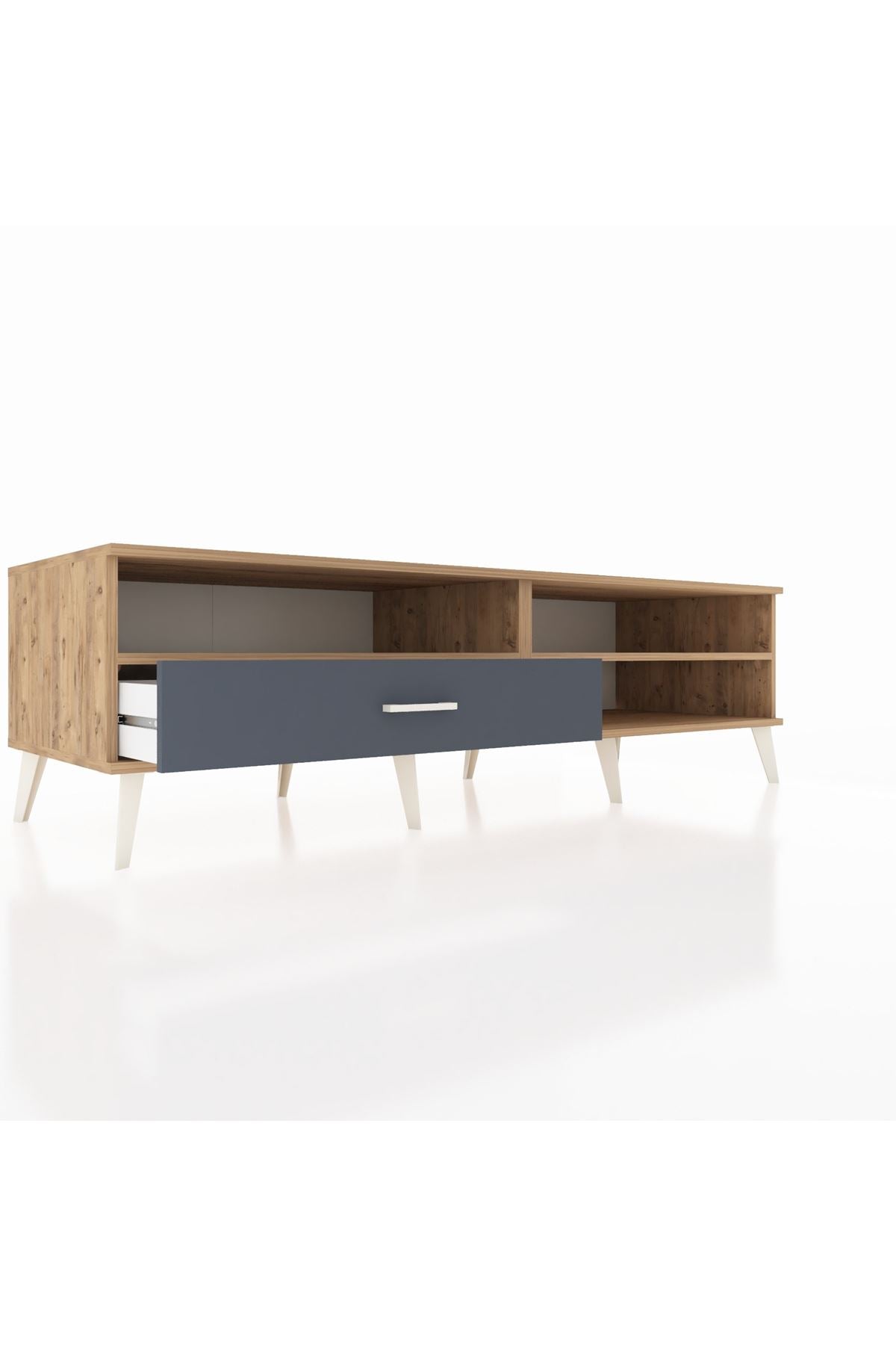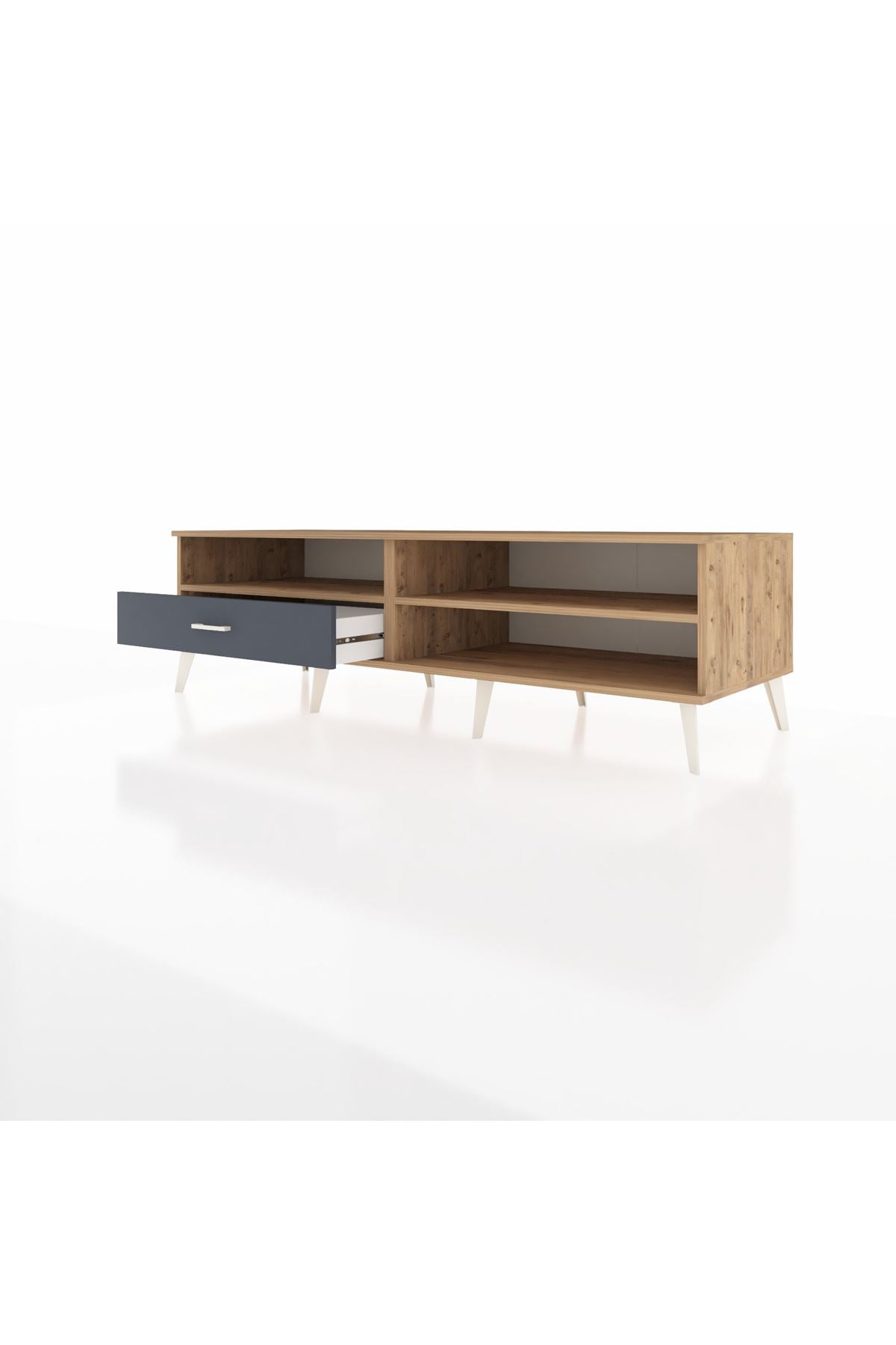 Kronos TV Ünitesi 2 Raflı Tek Çekmeceli 176x59x51 Çam-Çam/Antrasit