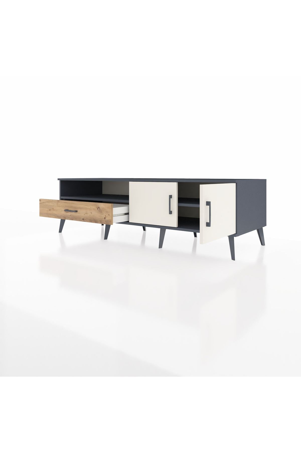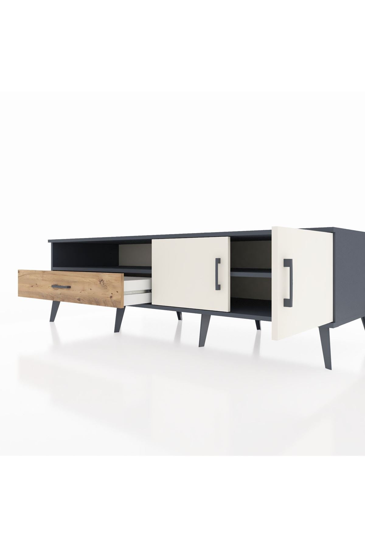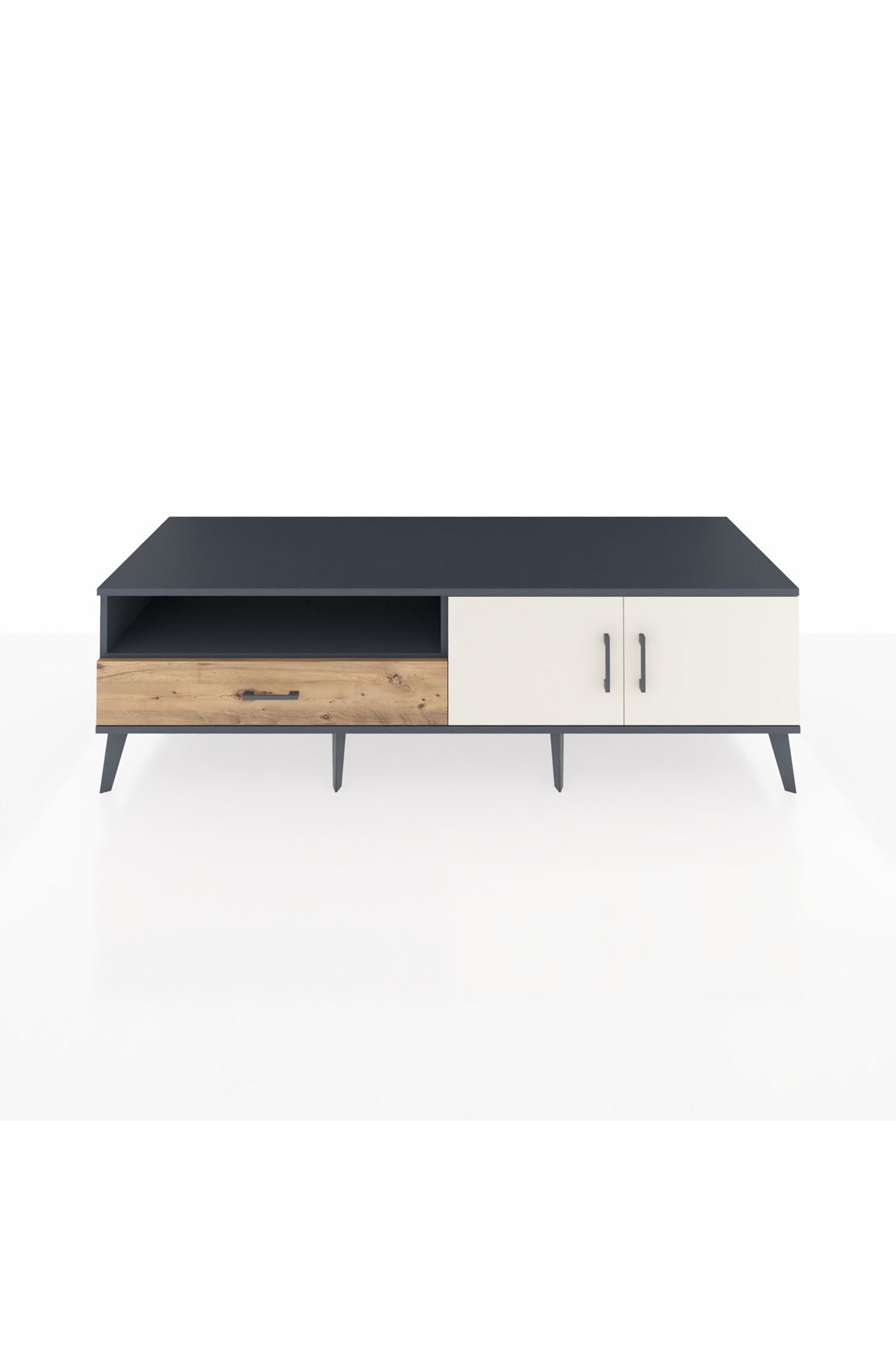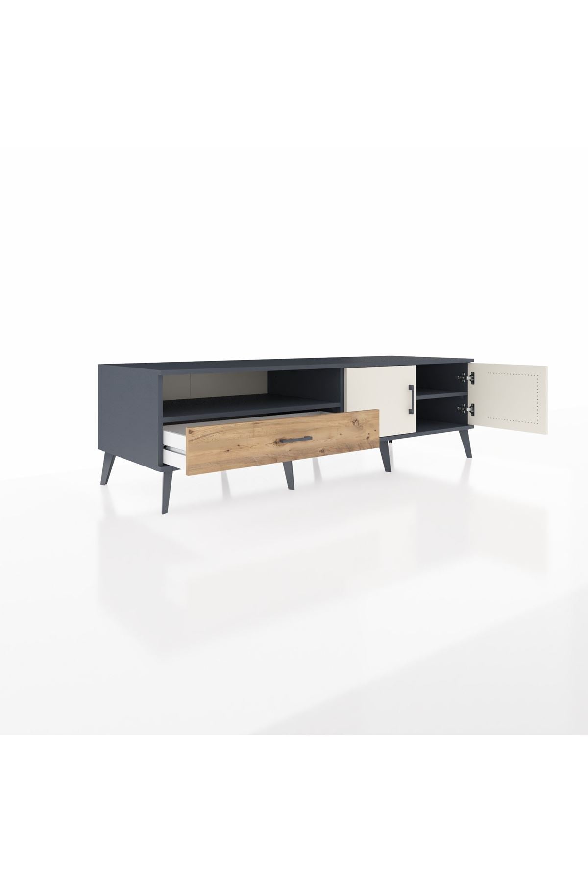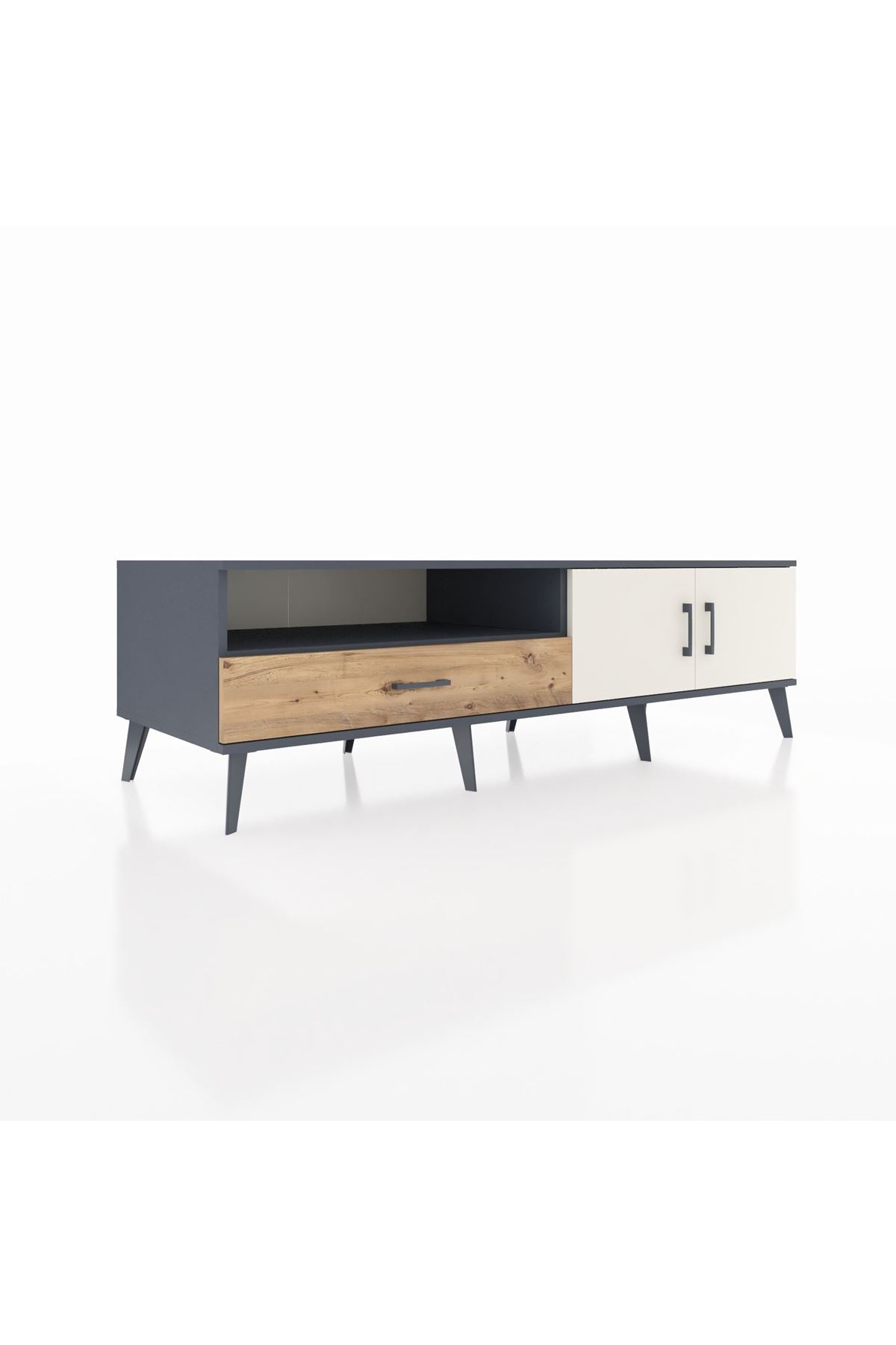 Kronos TV Ünitesi 2 Raflı Tek Çekmeceli 2 Kapaklı Antrasit-Aytaşı/Çam