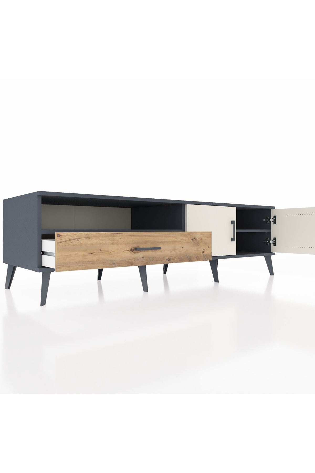 Kronos TV Ünitesi 2 Raflı Tek Çekmeceli 2 Kapaklı 176x59x51 Antrasit-Aytaşı/Çam