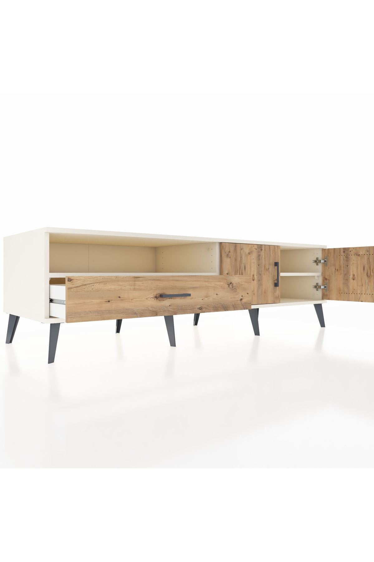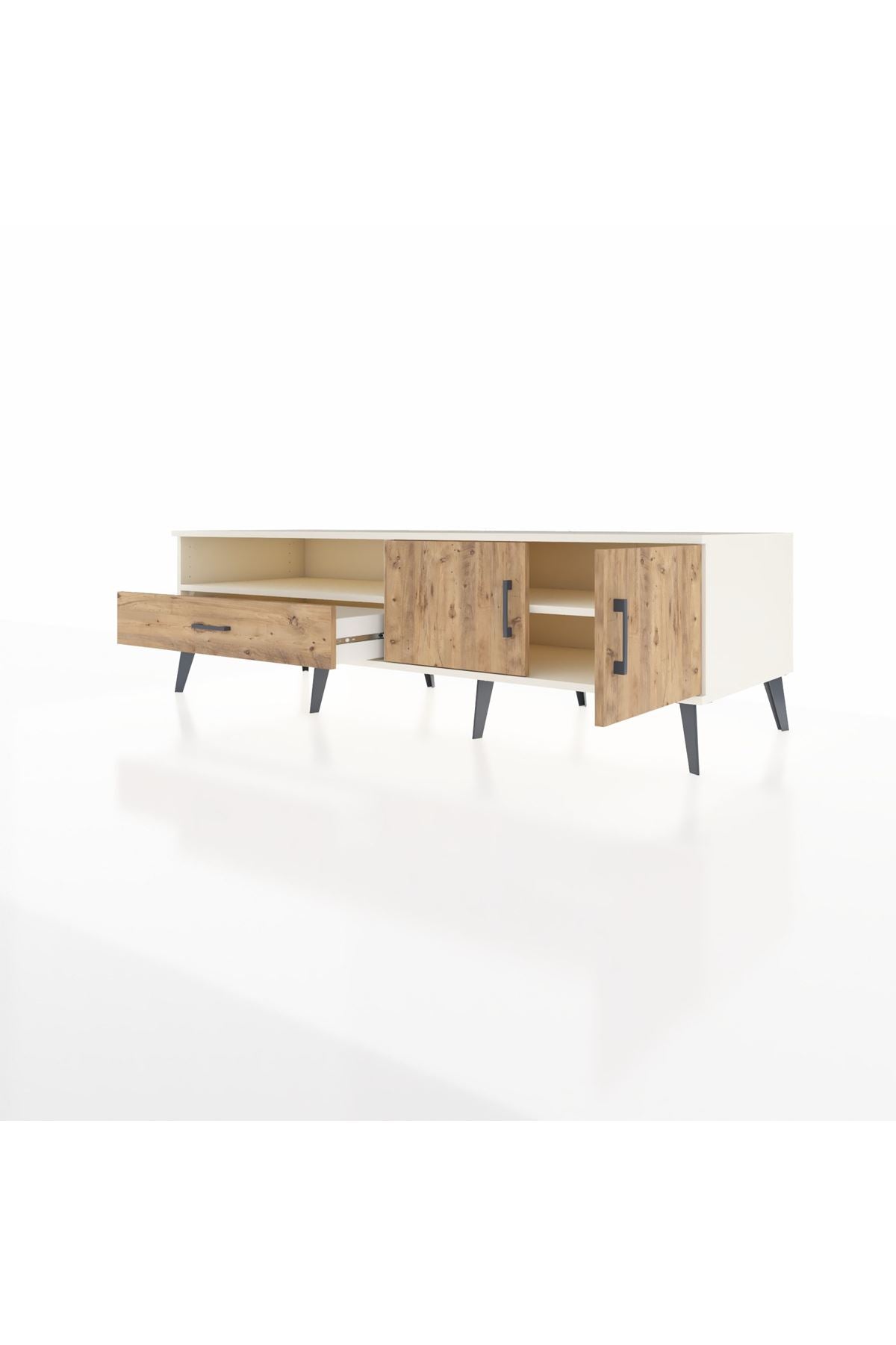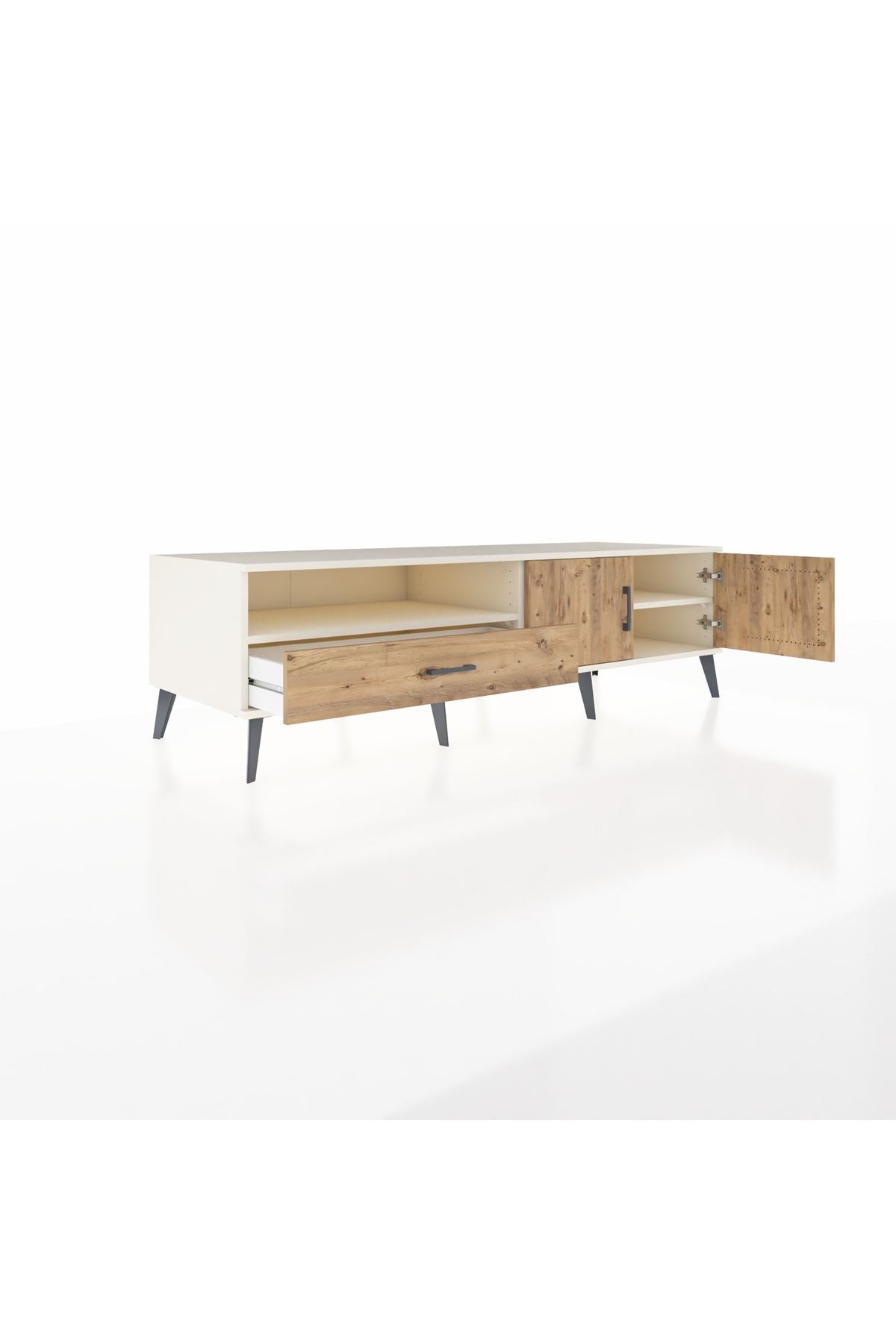 Kronos TV Ünitesi 2 Raflı Tek Çekmeceli 2 Kapaklı 176x59x51 Aytaşı-Çam/Çam