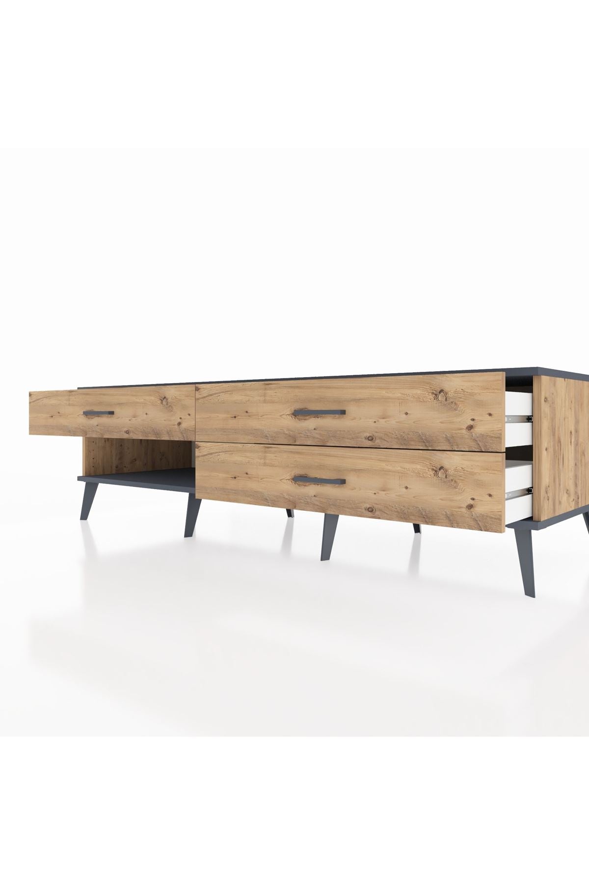 Kronos TV Ünitesi 3 Çekmeceli 176x59x51 Çam-Antrasit/Çam