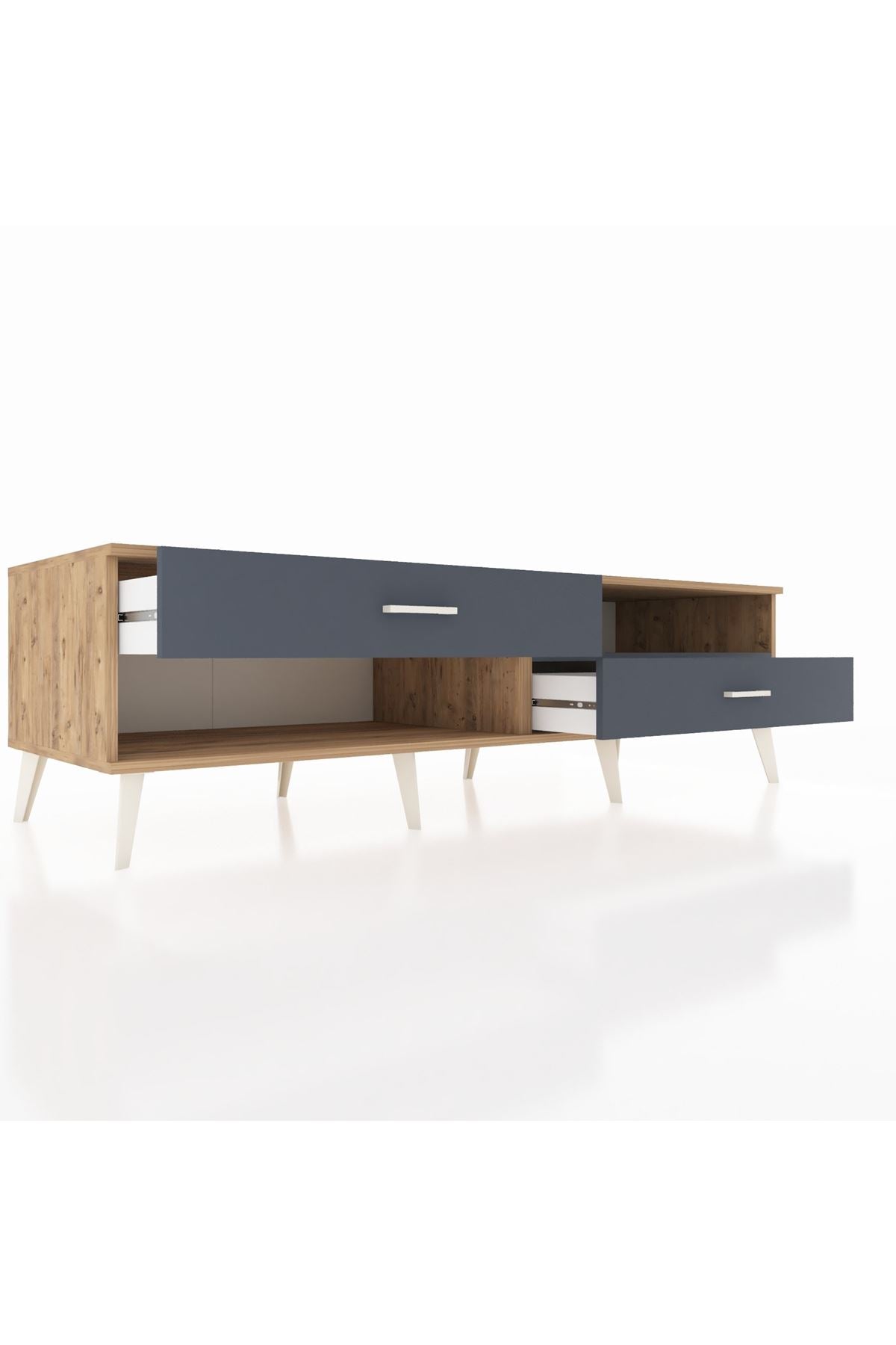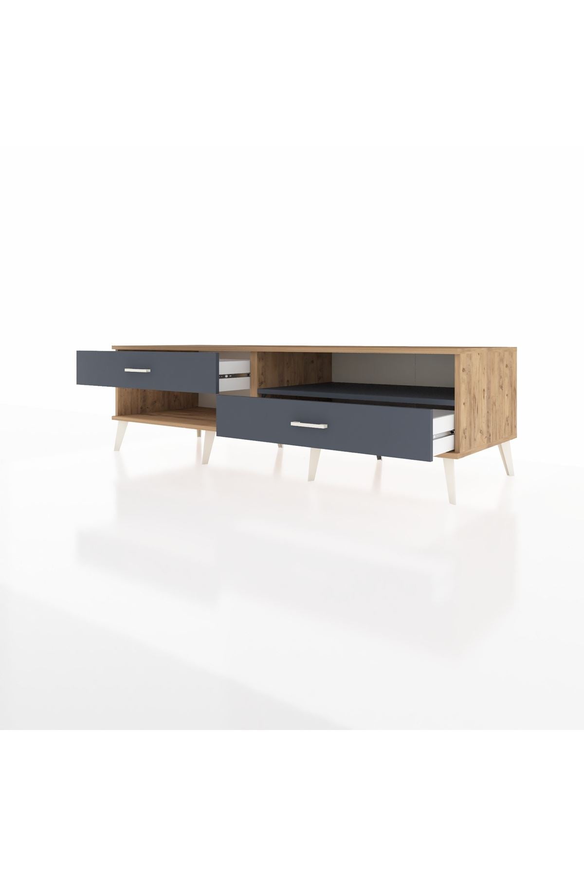 Kronos TV Ünitesi Tek Raflı 2 Çekmeceli 176x59x51 Çam-Antrasit/Antrasit