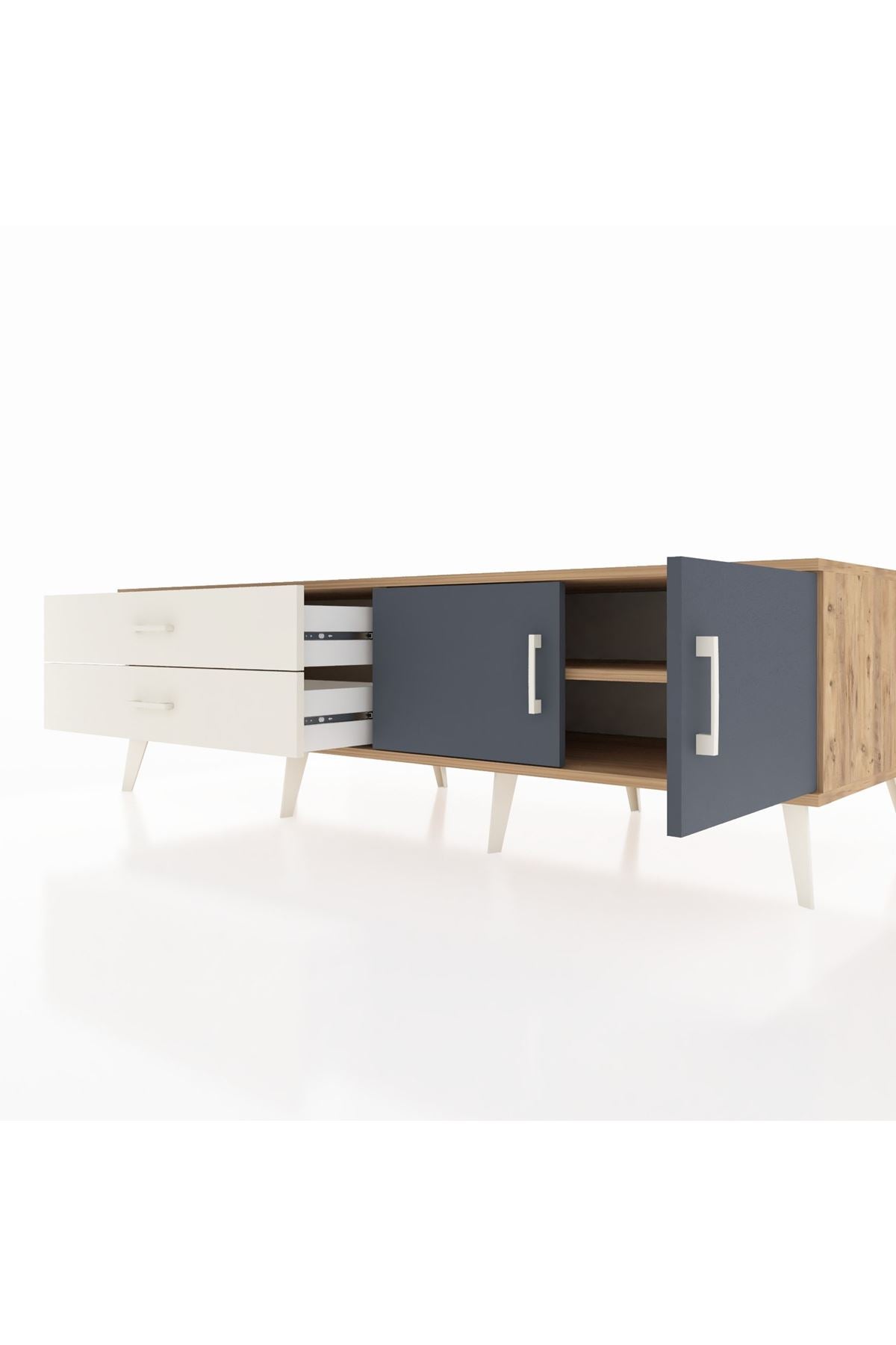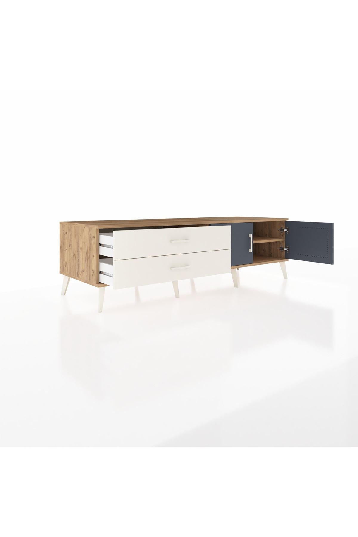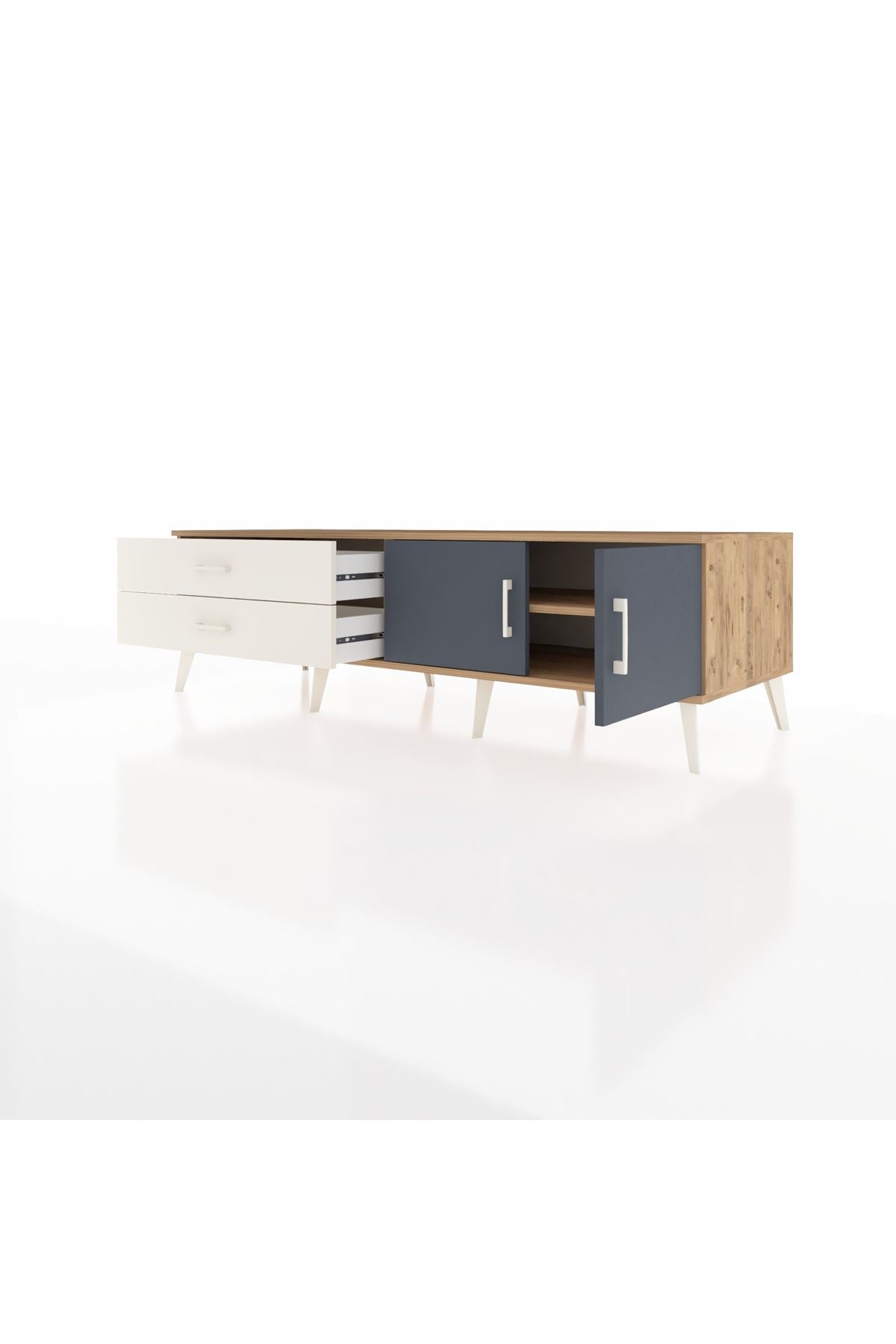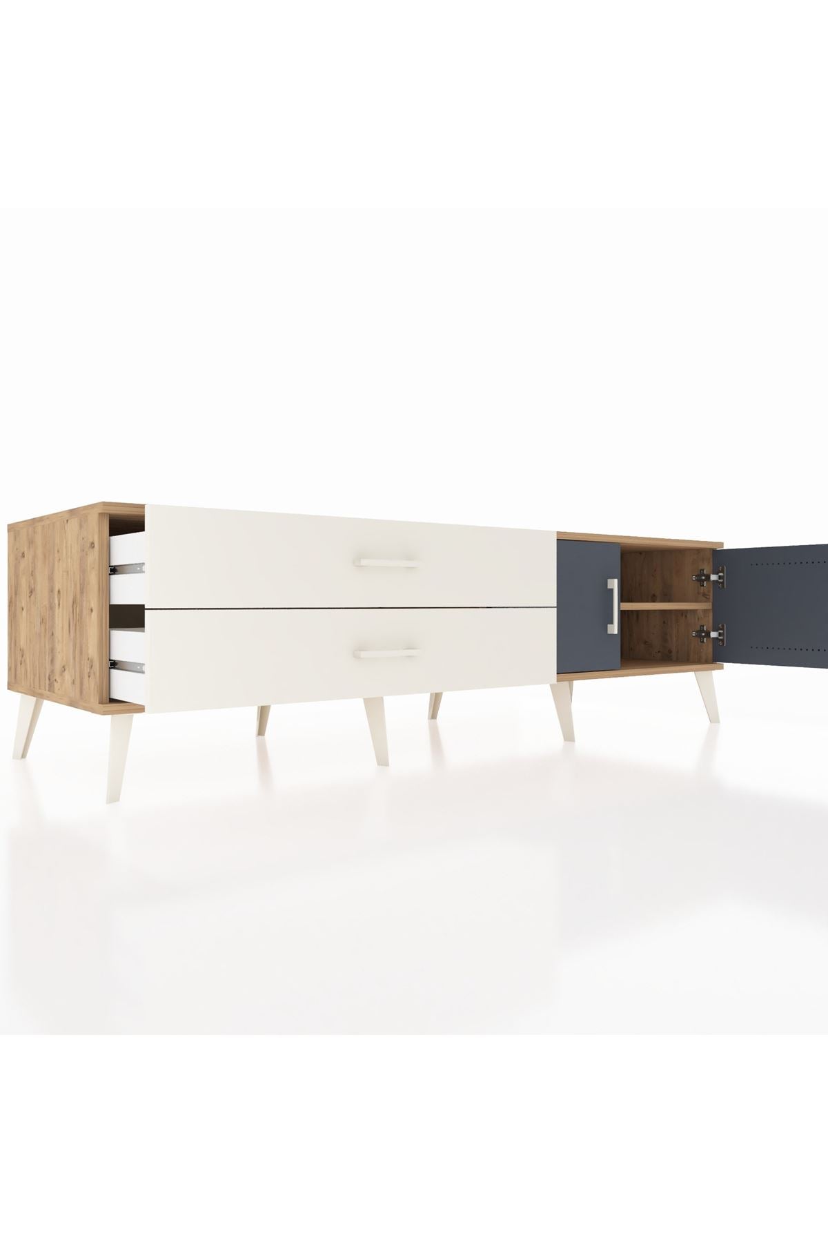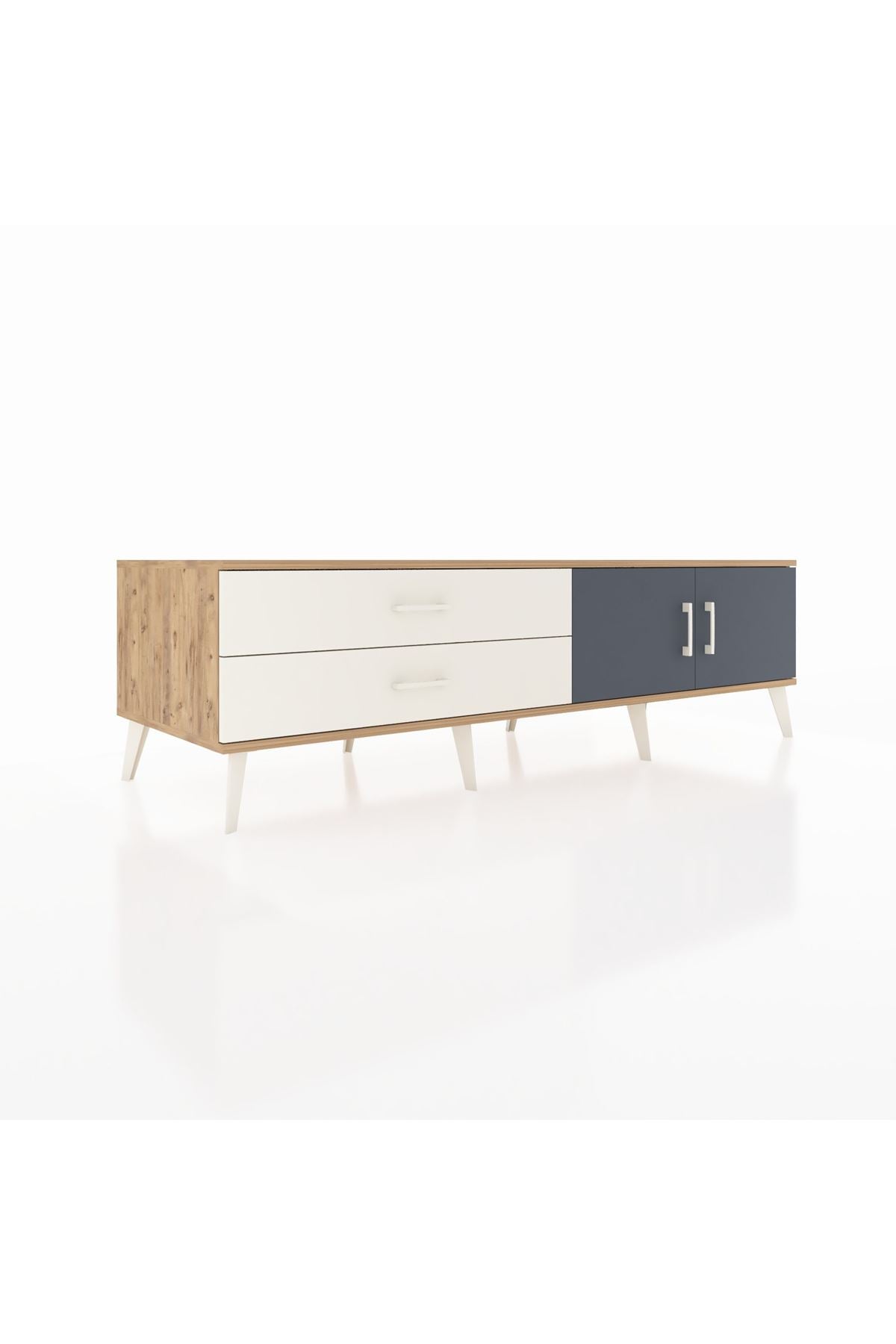 Kronos TV Ünitesi Tek Raflı 2 Çekmeceli 2 Kapaklı 176x59x51 Çam-Antrasit/Aytaşı