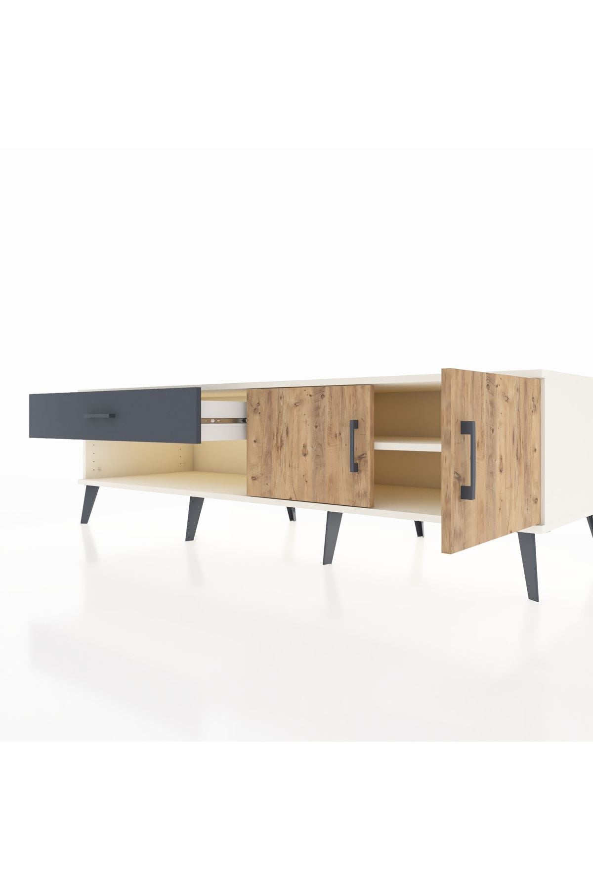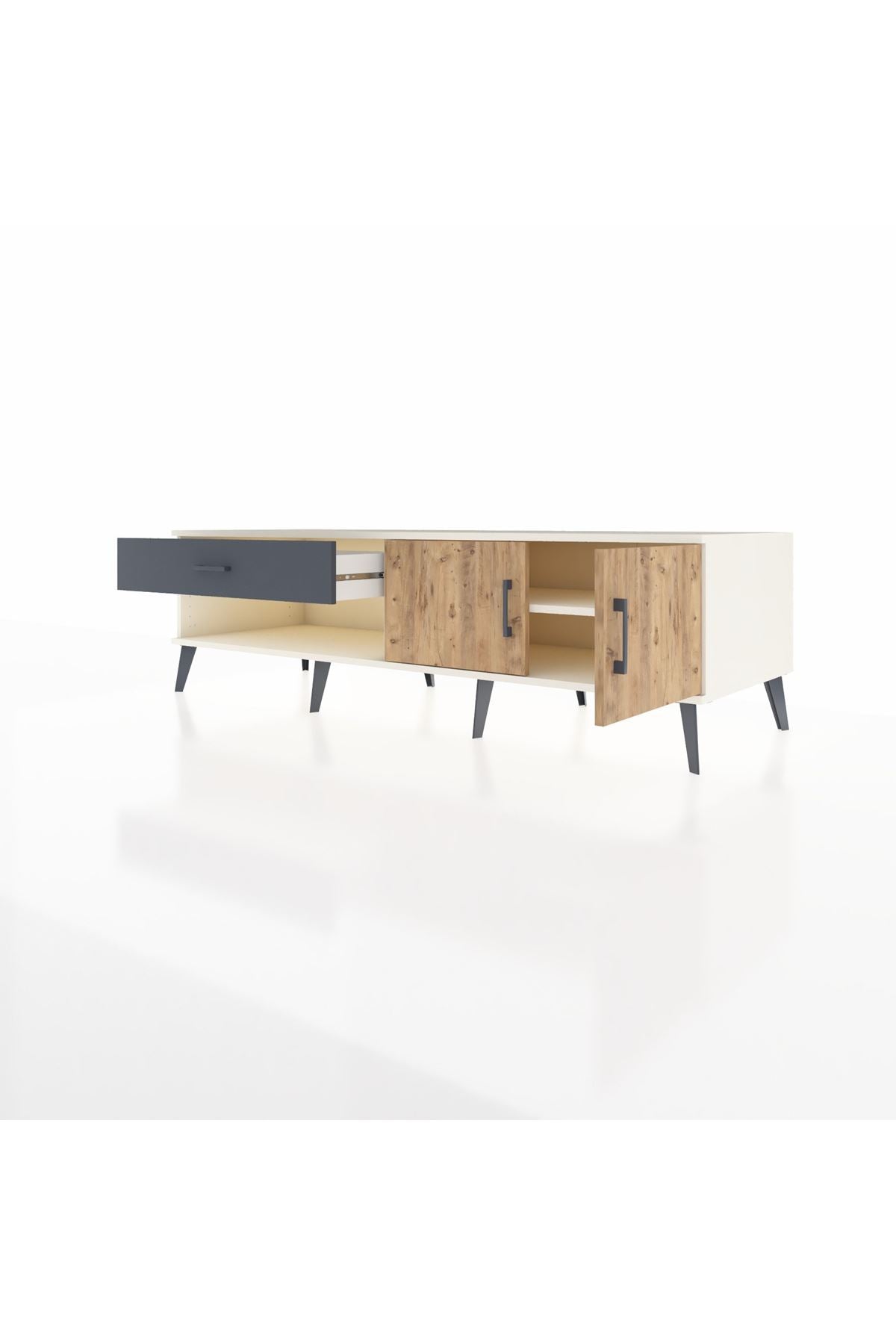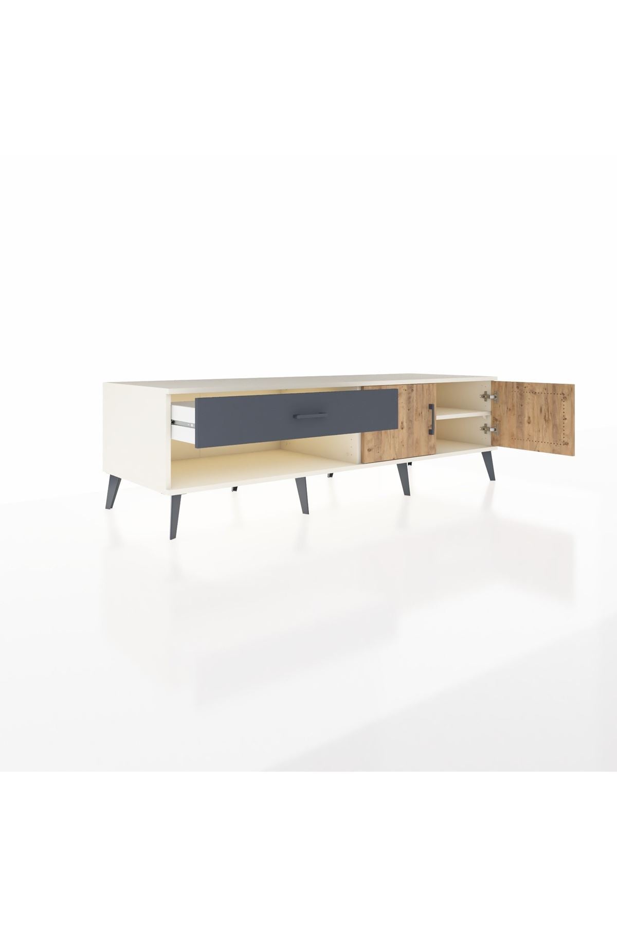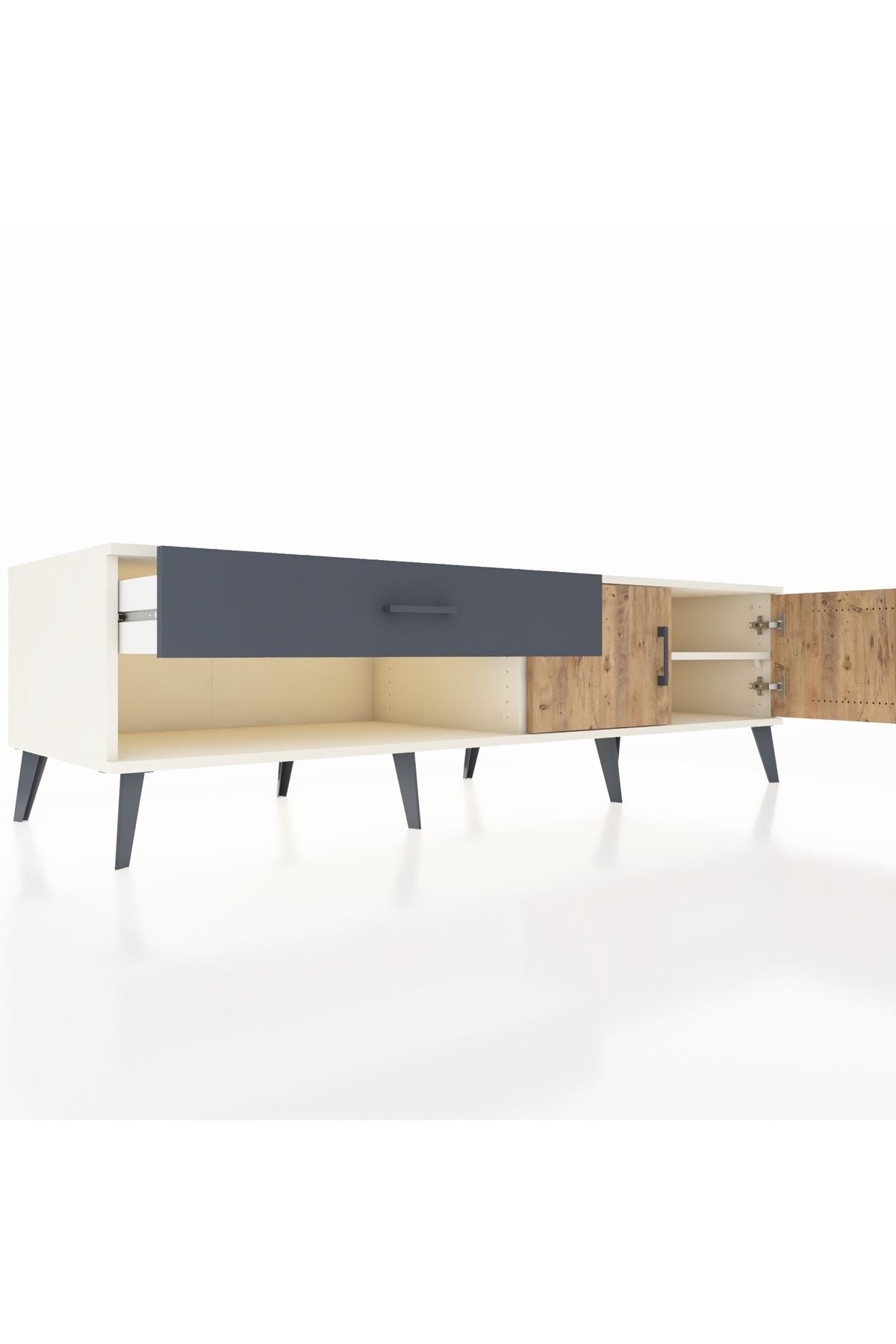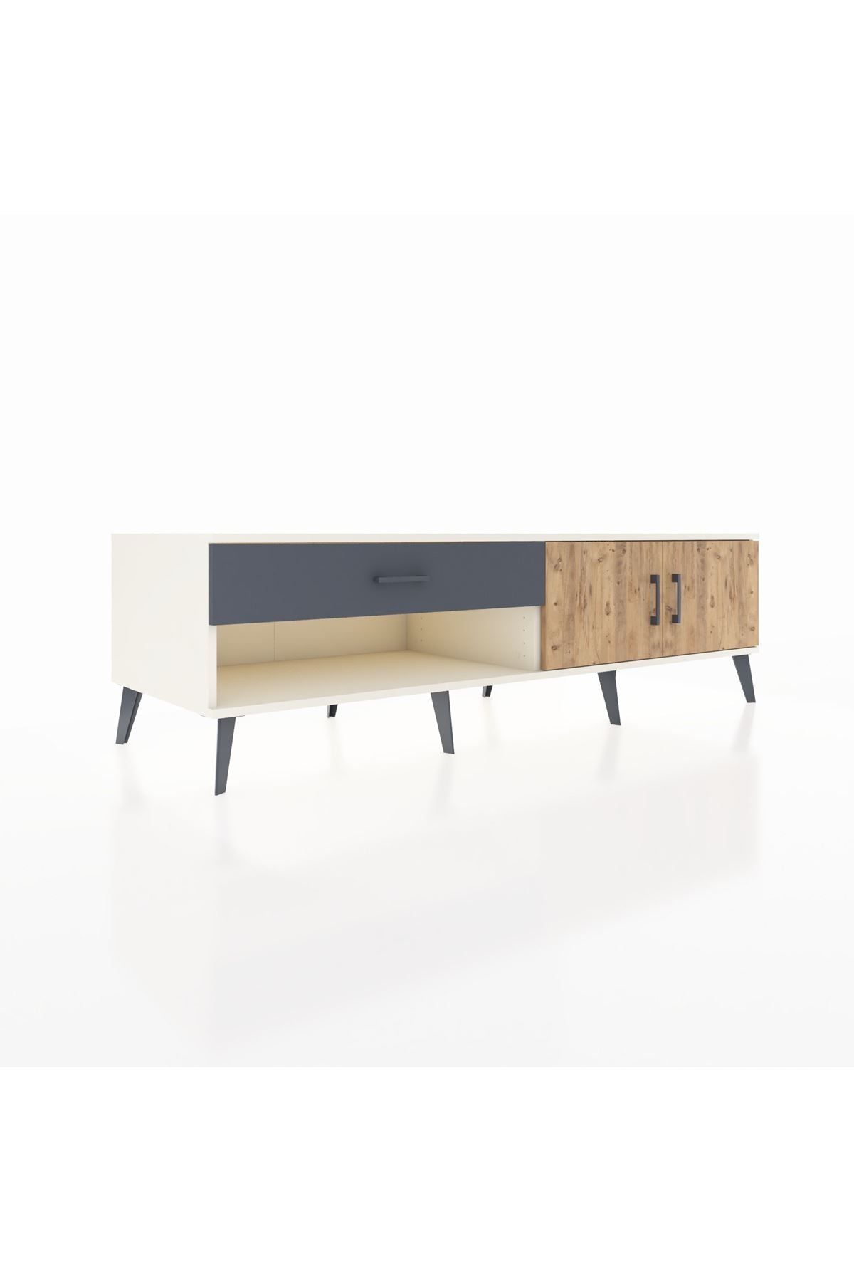 Kronos TV Ünitesi Tek Raflı Tek Çekmeceli 2 Kapaklı 176x59x51 Aytaşı-Çam/Antrasit