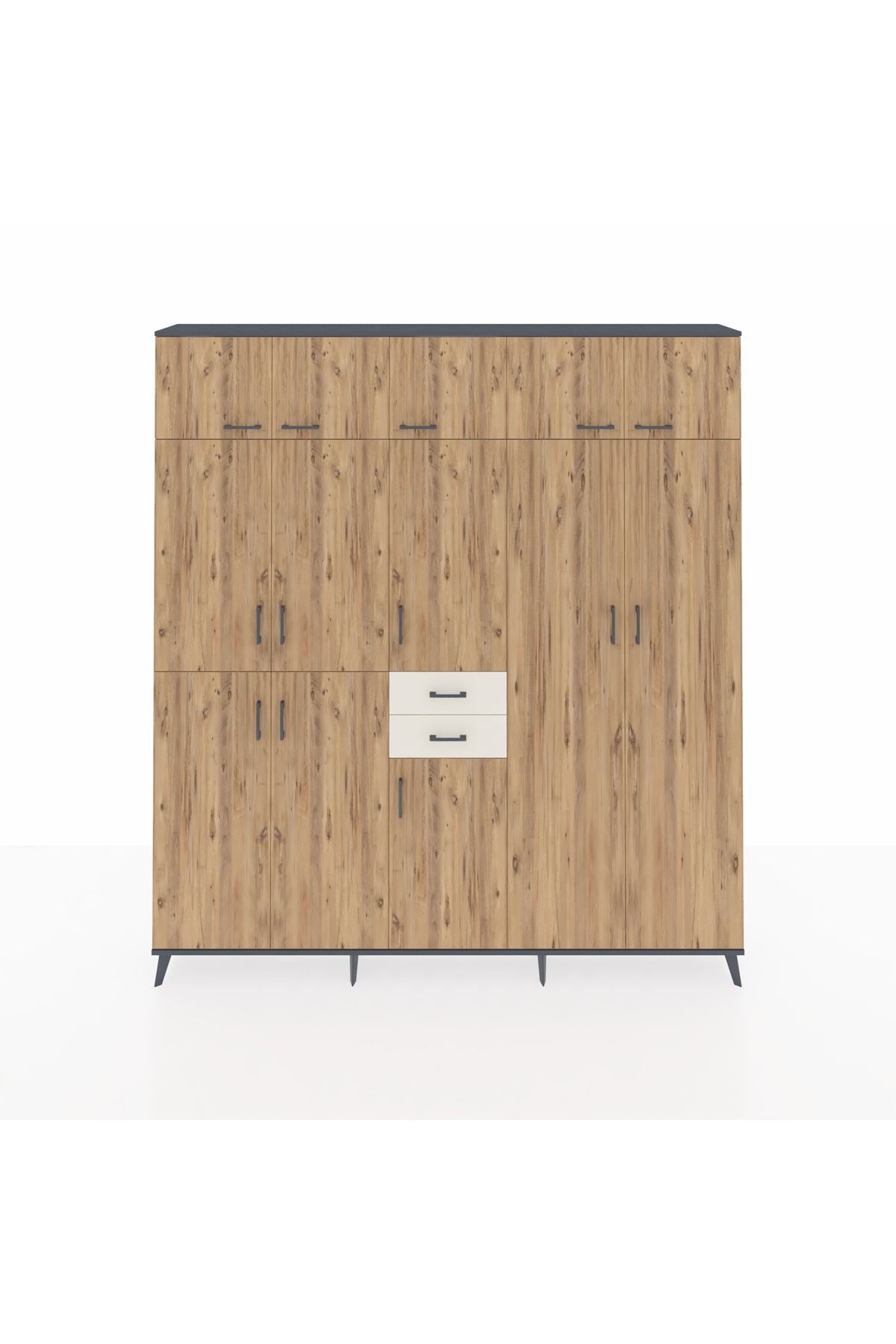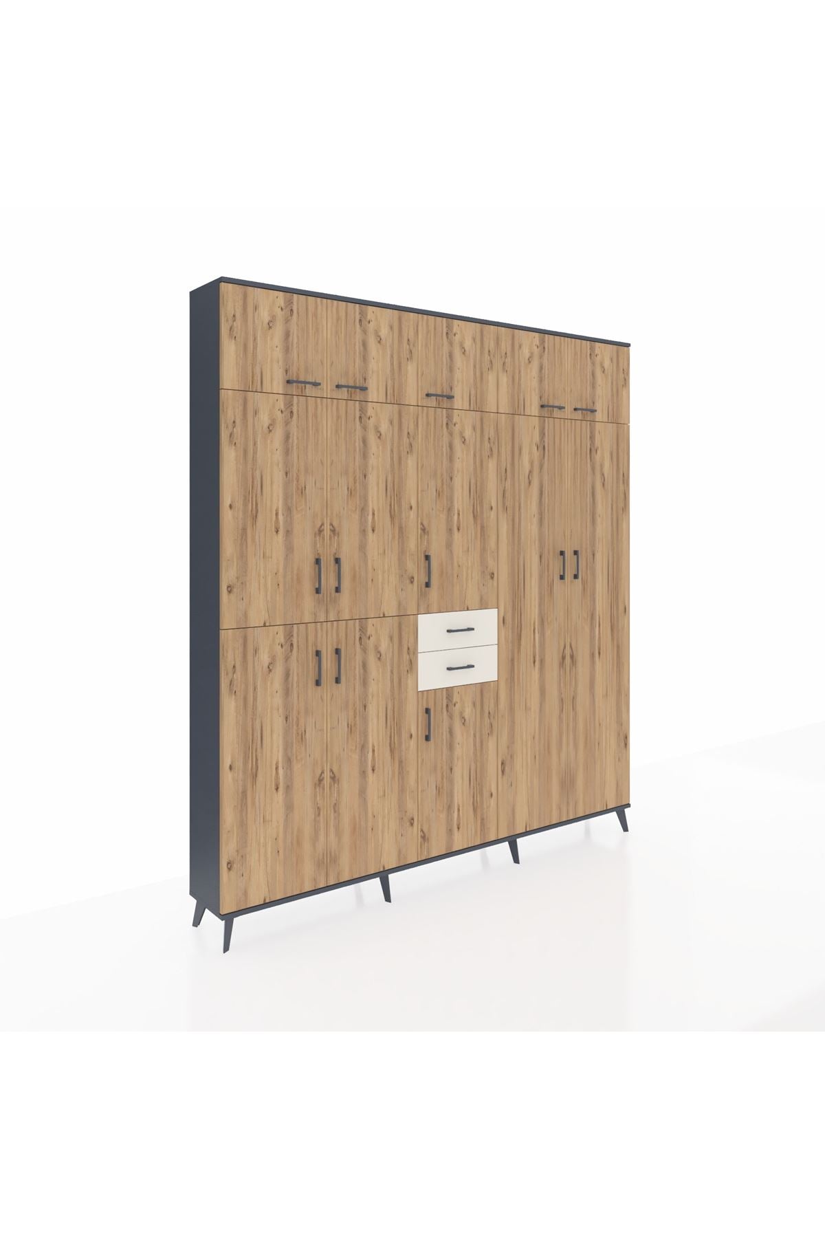 Arges Dolap 10 Raflı 2 Çekmeceli 3 Askılı 220x30x243 Antrasit-Çam/Aytaşı