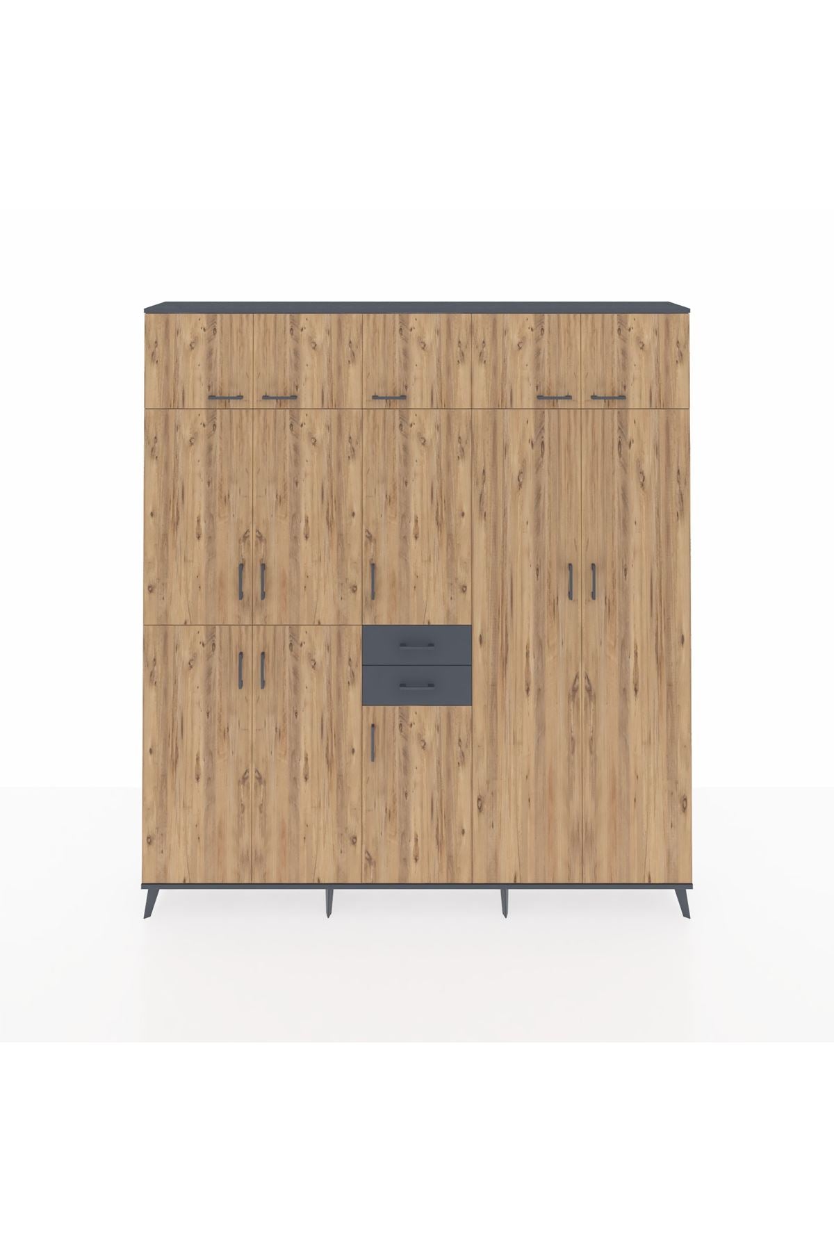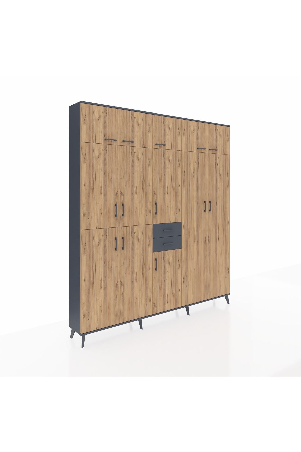 Arges Dolap 10 Raflı 2 Çekmeceli 3 Askılı 220x30x243 Antrasit-Çam/Antrasit