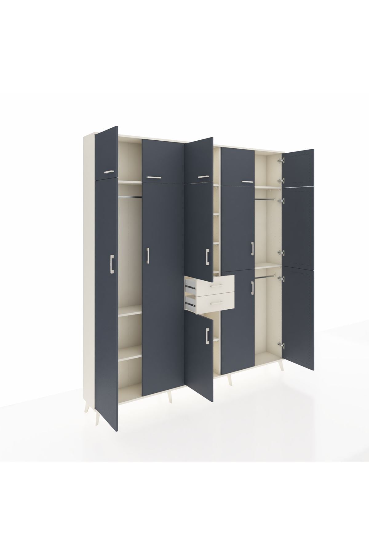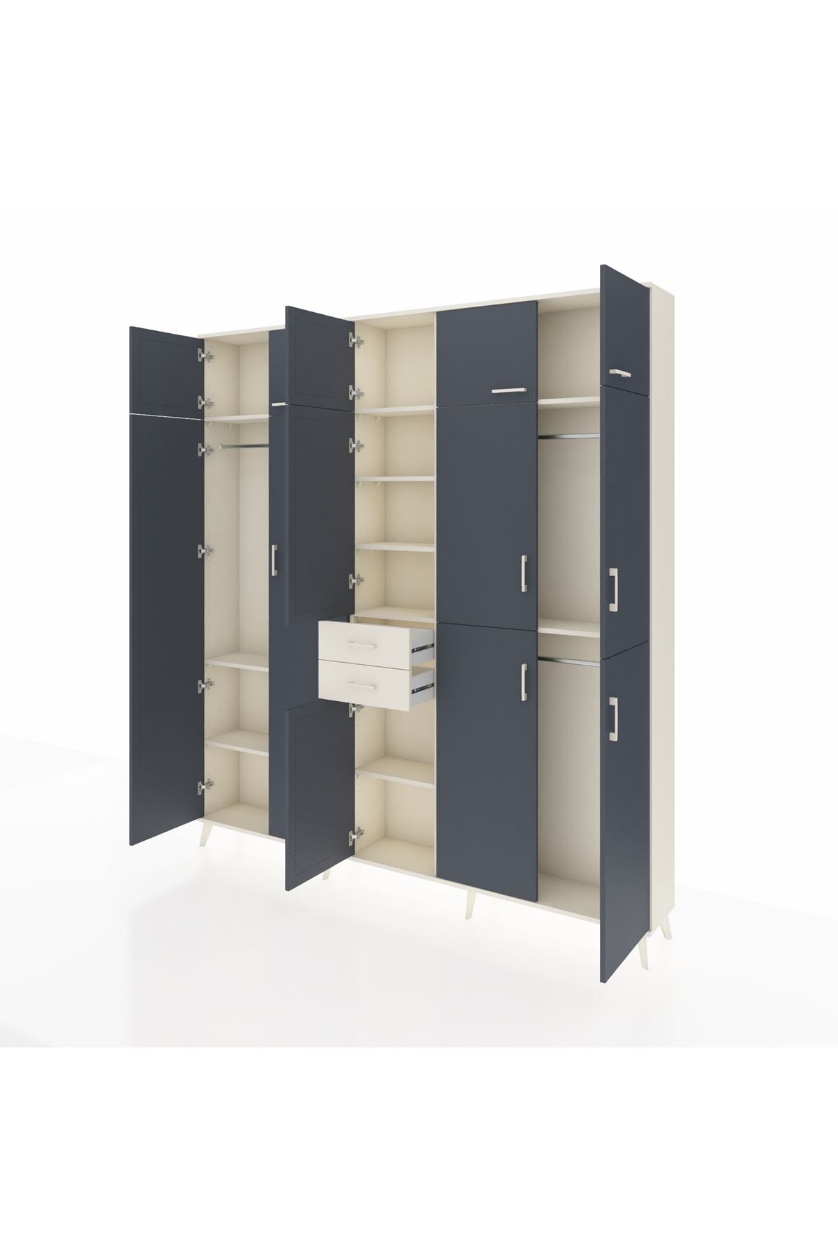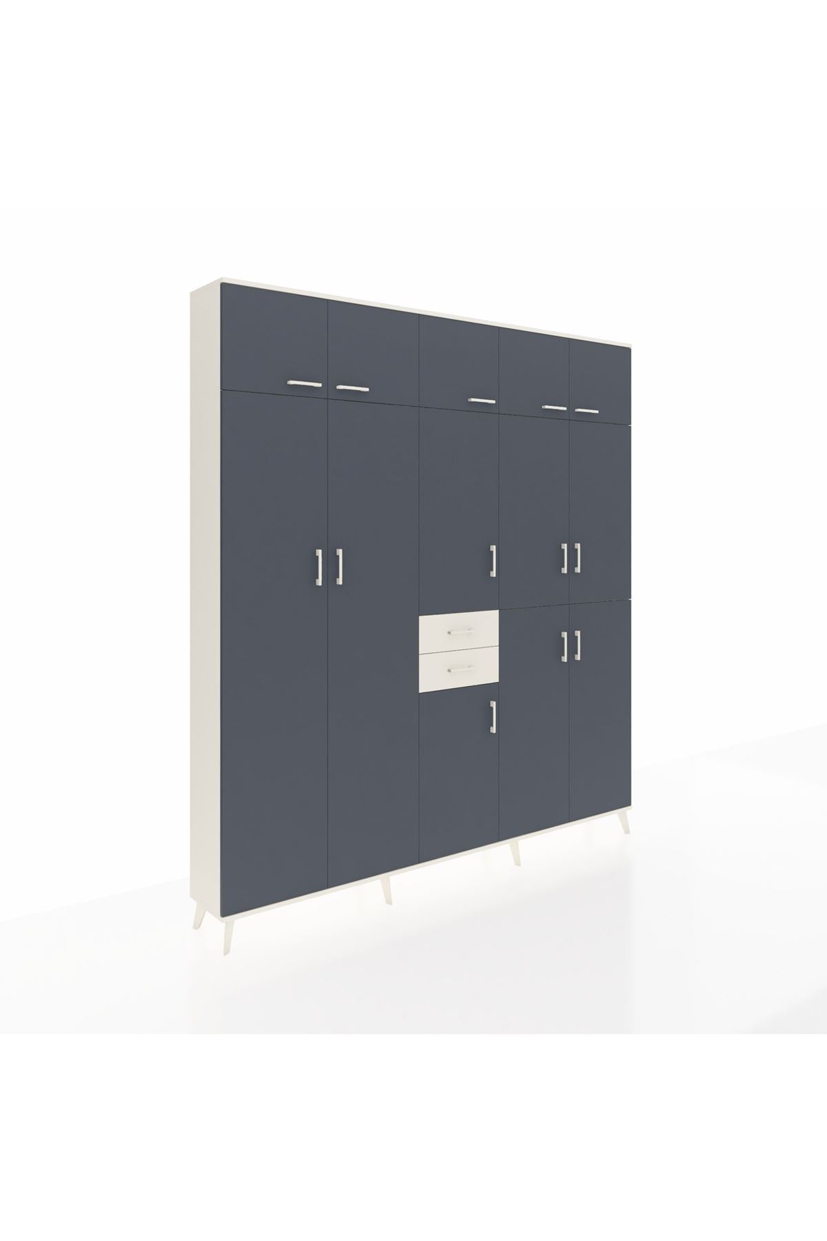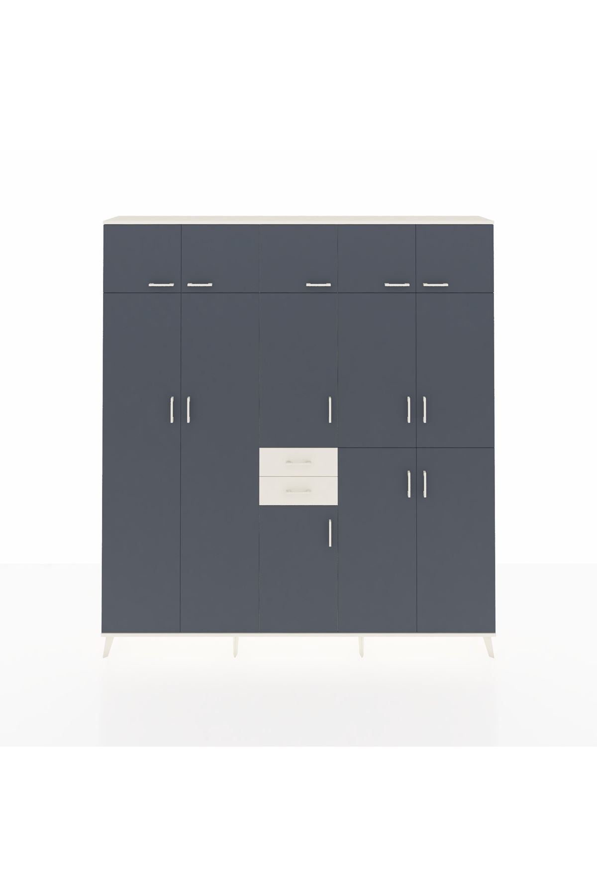 Arges Dolap 10 Raflı 2 Çekmeceli 3 Askılı 220x30x243 Aytaşı-Antrasit/Aytaşı