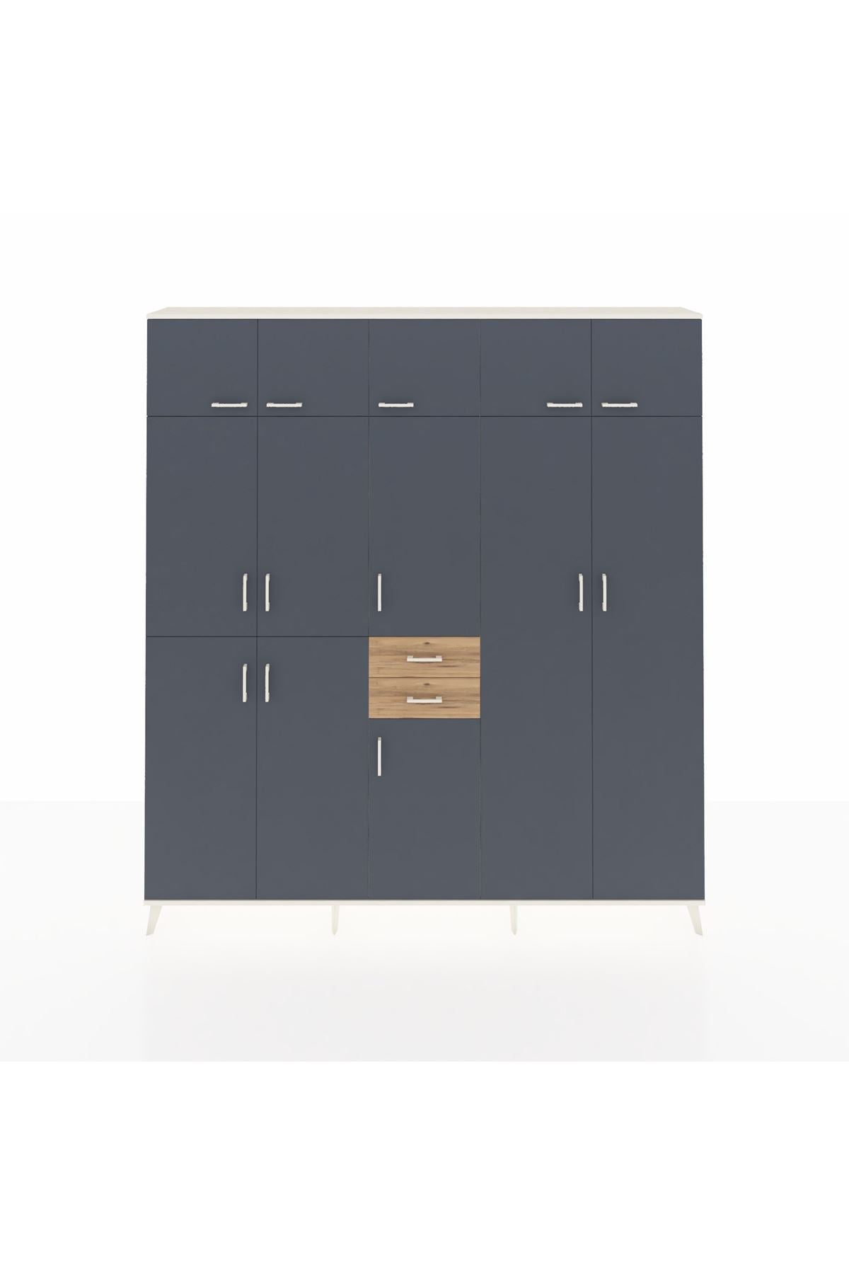 Arges Dolap 10 Raflı 2 Çekmeceli 3 Askılı 220x30x243 Aytaşı-Antrasit/Çam
