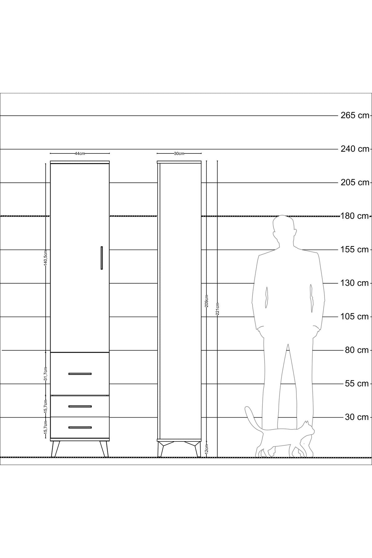 Arges Dolap 2 Raflı 3 Çekmeceli Tek Askılı 44x30x221 Çam-Aytaşı