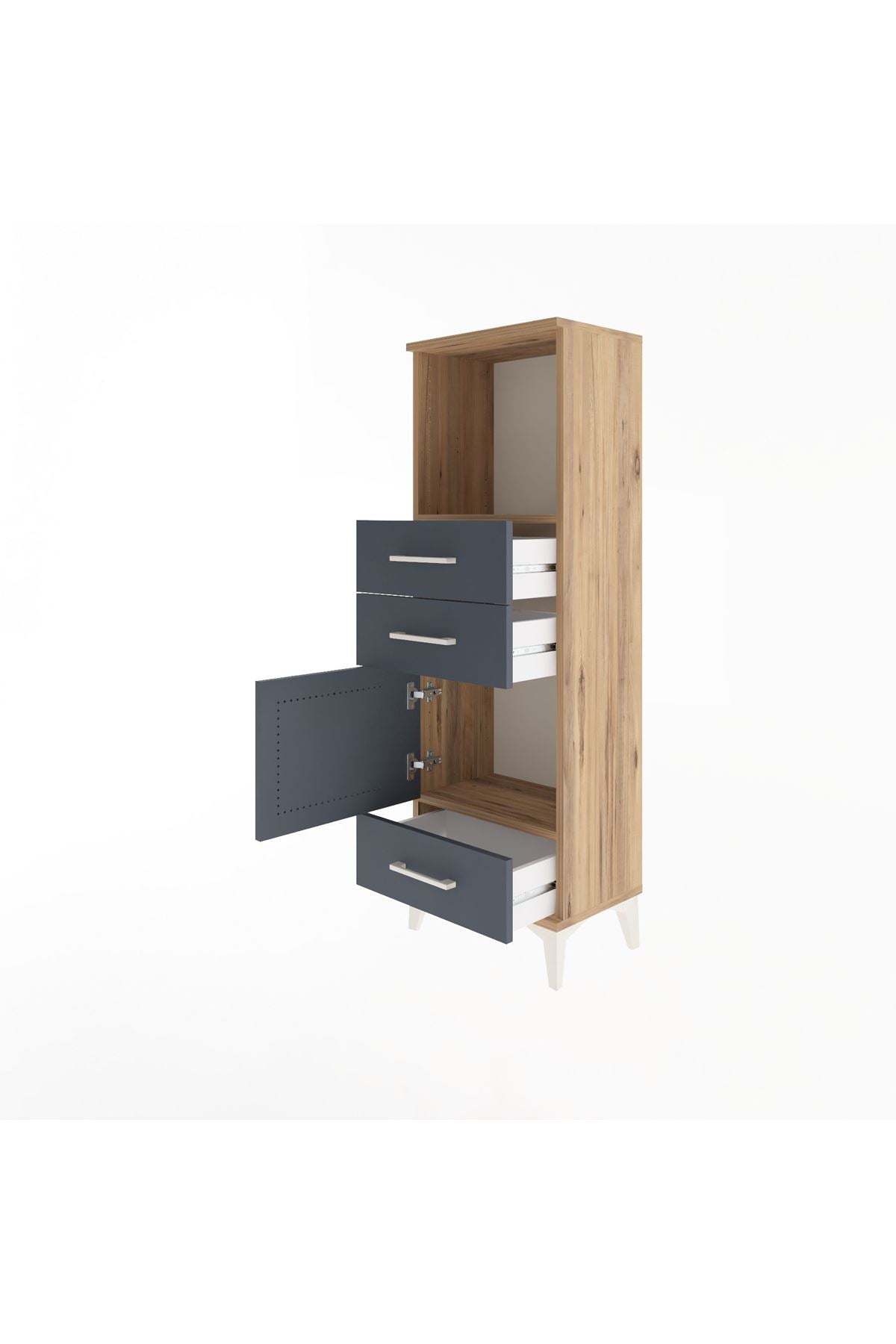 Arges Dolap 2 Raflı 3 Çekmeceli Tek Kapaklı 44x30x134 Çam-Antrasit