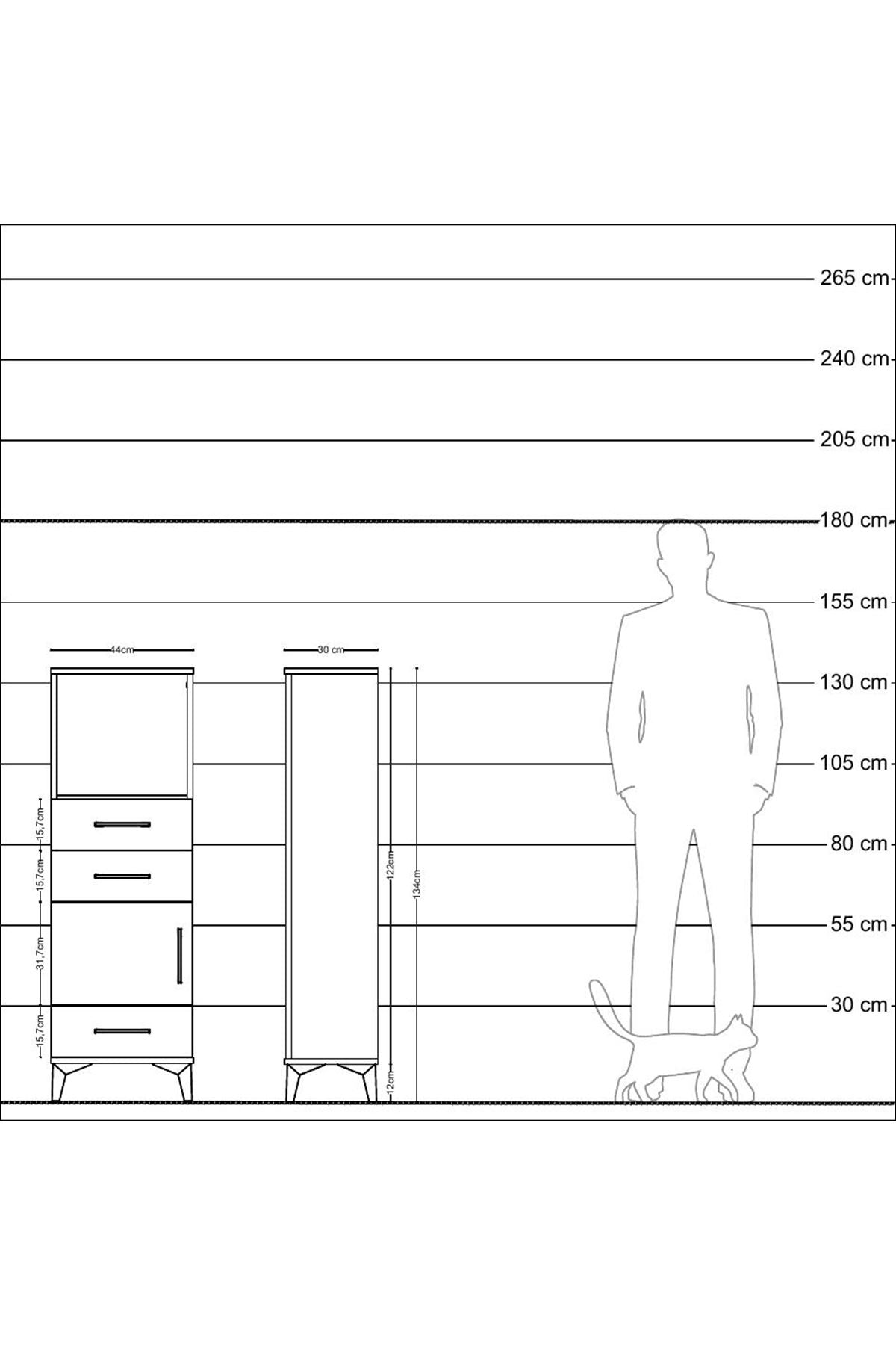 Arges Dolap 2 Raflı 3 Çekmeceli Tek Kapaklı 44x30x134 Çam-Aytaşı